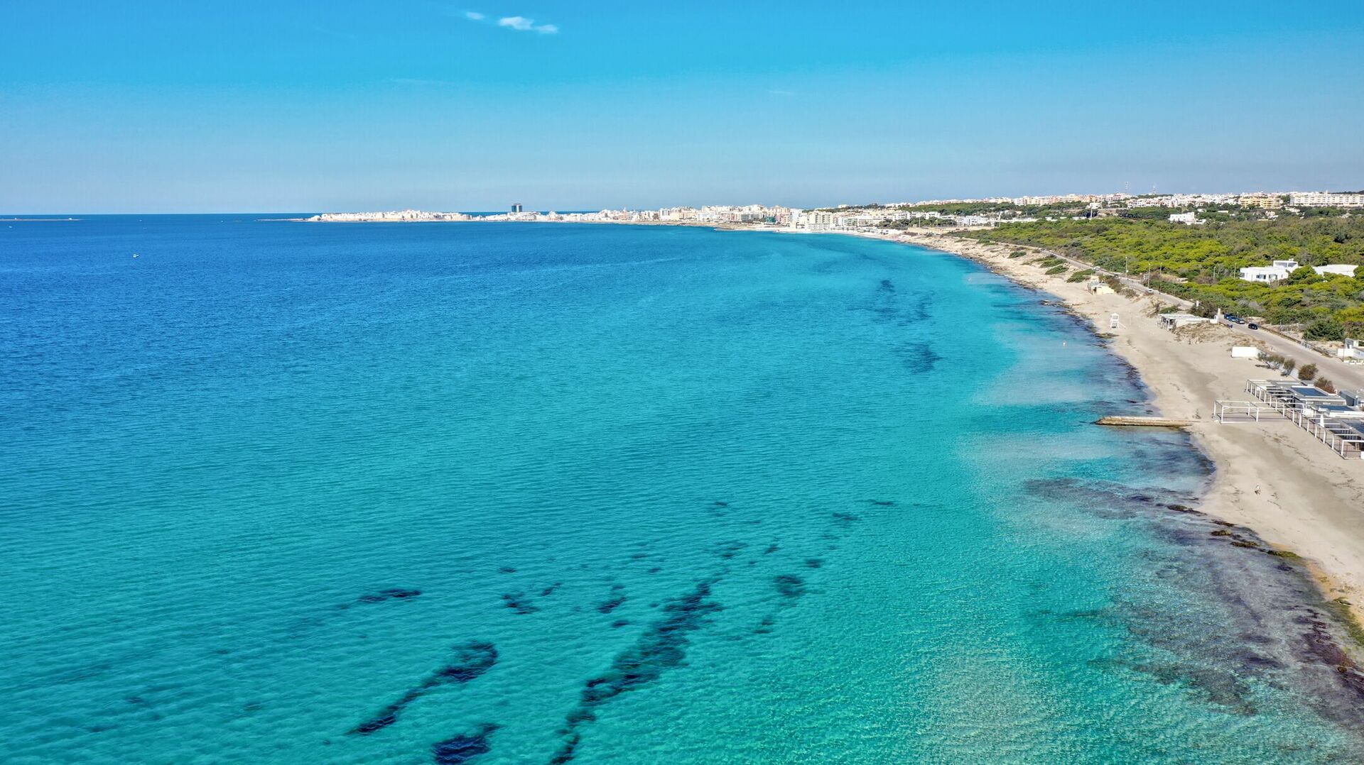 Un piccolo lembo di strada, divenuta zona a traffico limitata, separa la villa in affitto dalla spiaggia della Baia Verde di Gallipoli, dove è possibile usufruire, sia di lidi attrezzati, che della spiaggia libera.