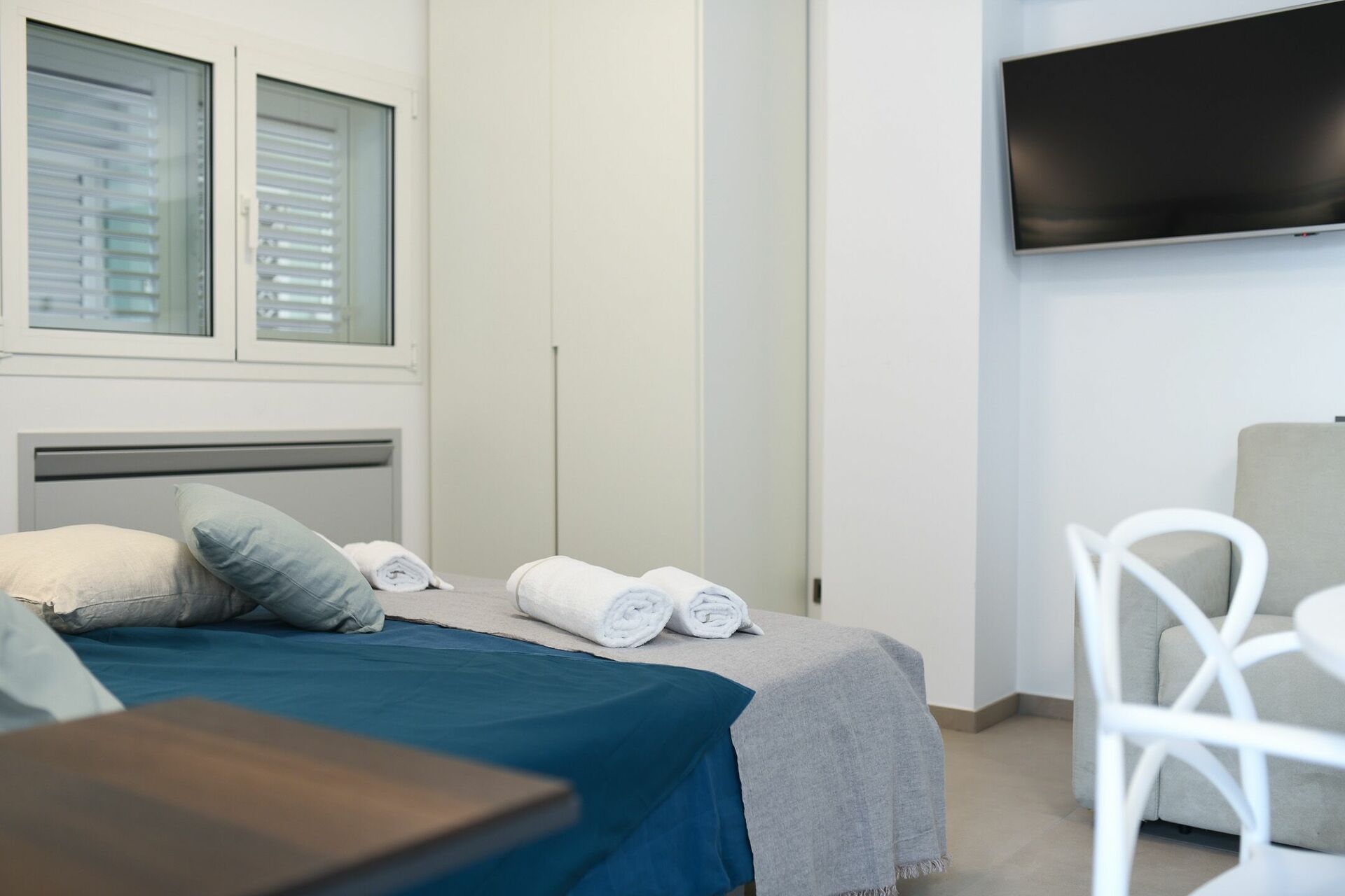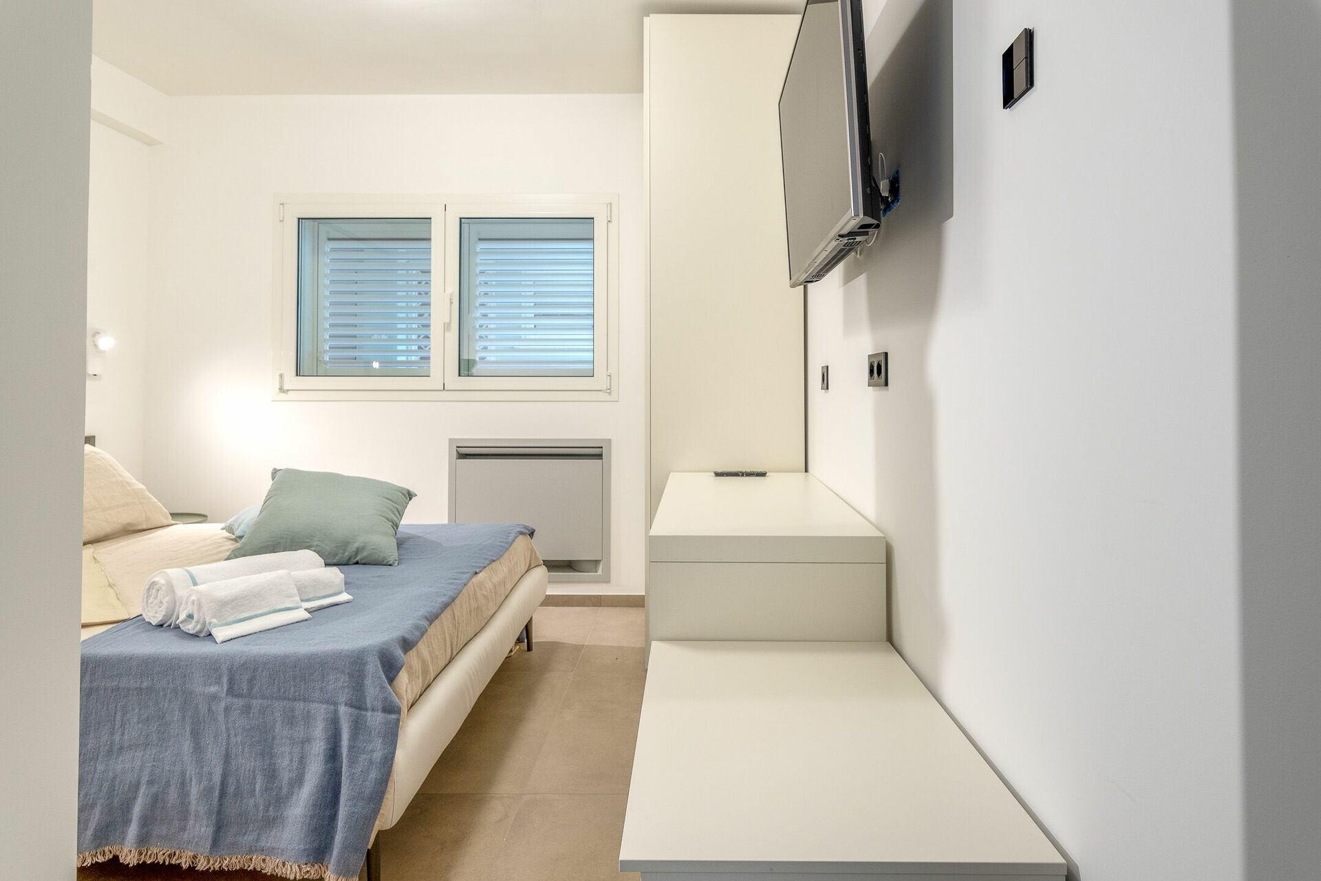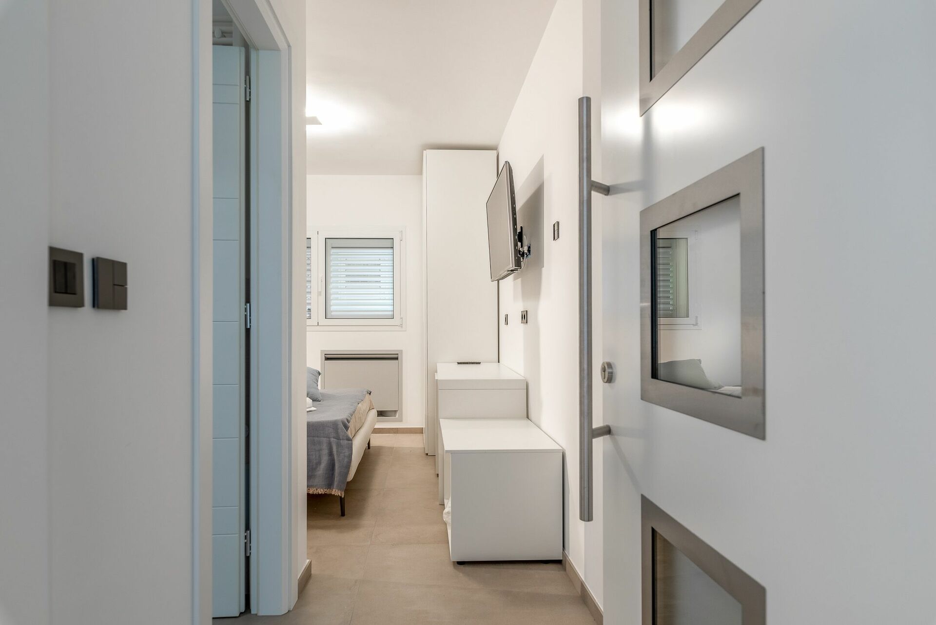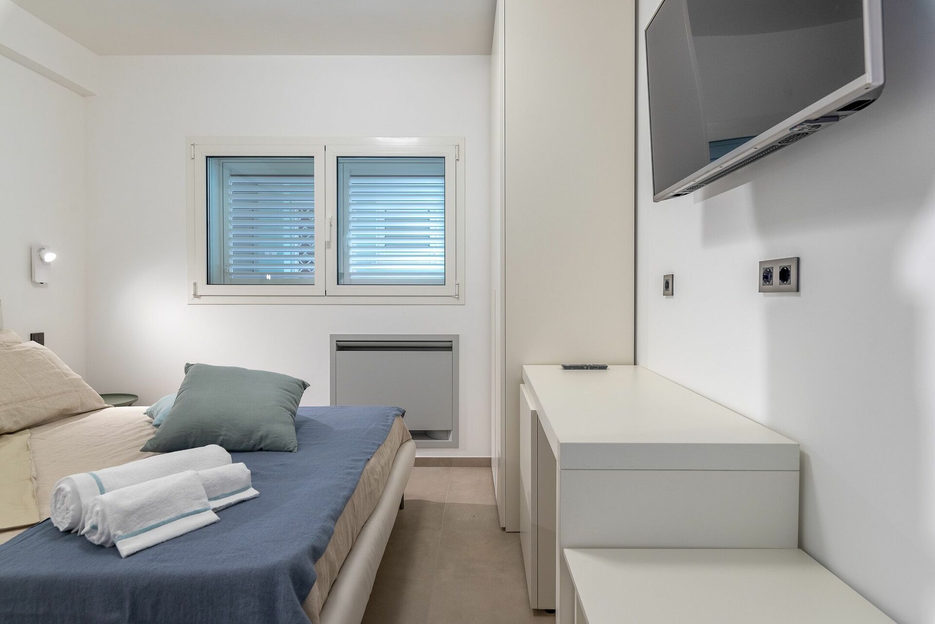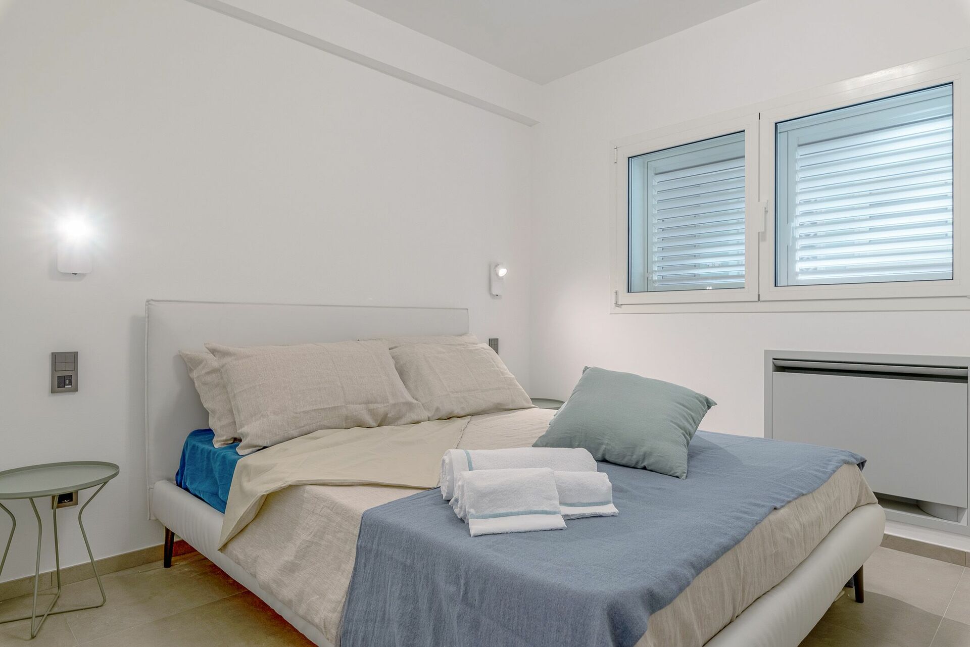 La seconda camera da letto, con balconcino e vista mare, è composto dal letto matrimoniale (king size) con i quattro cuscini e comoda testiera, oltre che di comodini con punti luce, frigo bar, armadio e Smart TV. Collegata alla camera da letto, troverai il bagno, con finestra, completo del lavandino con specchio, il WC, il bidet e l’ampia doccia.