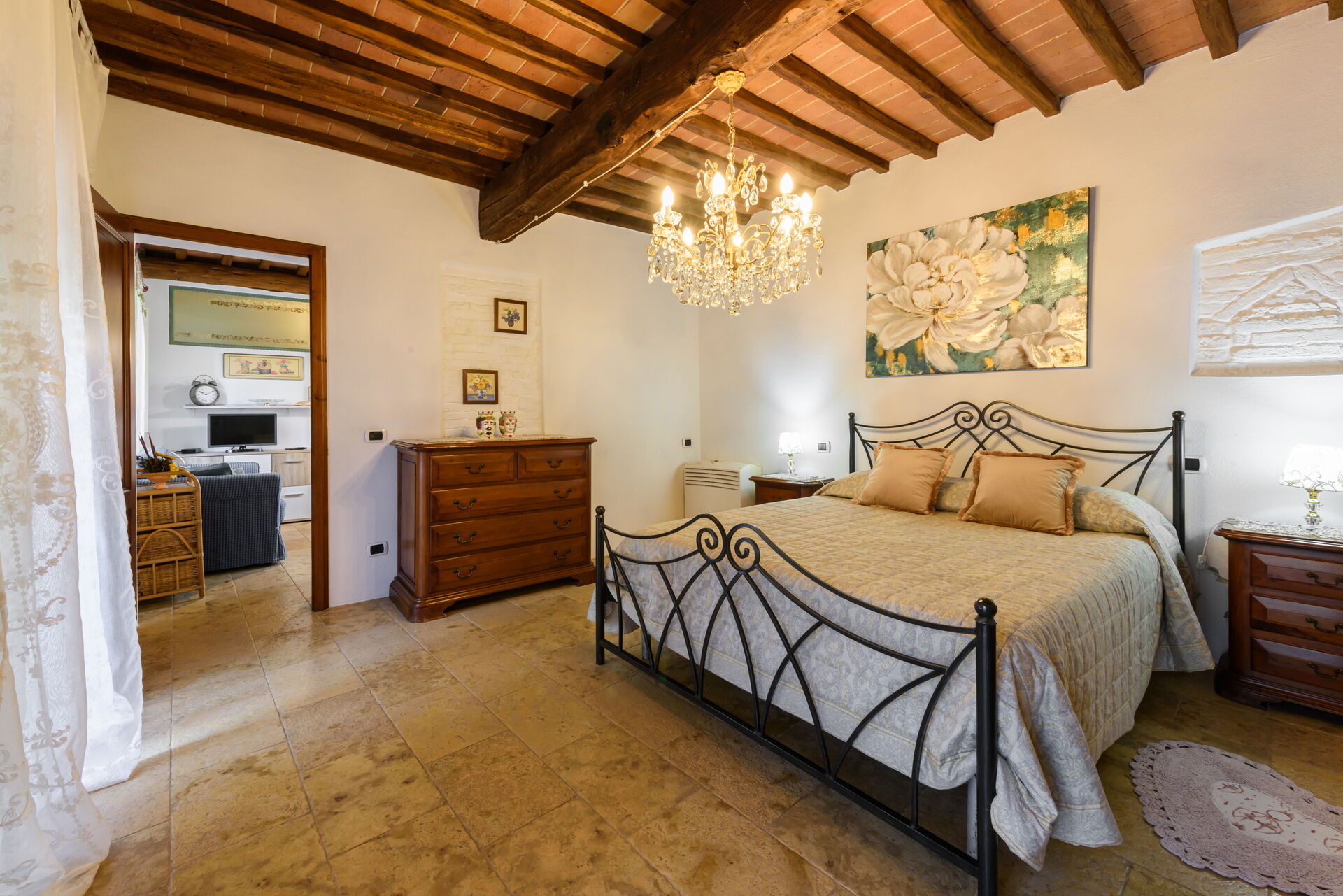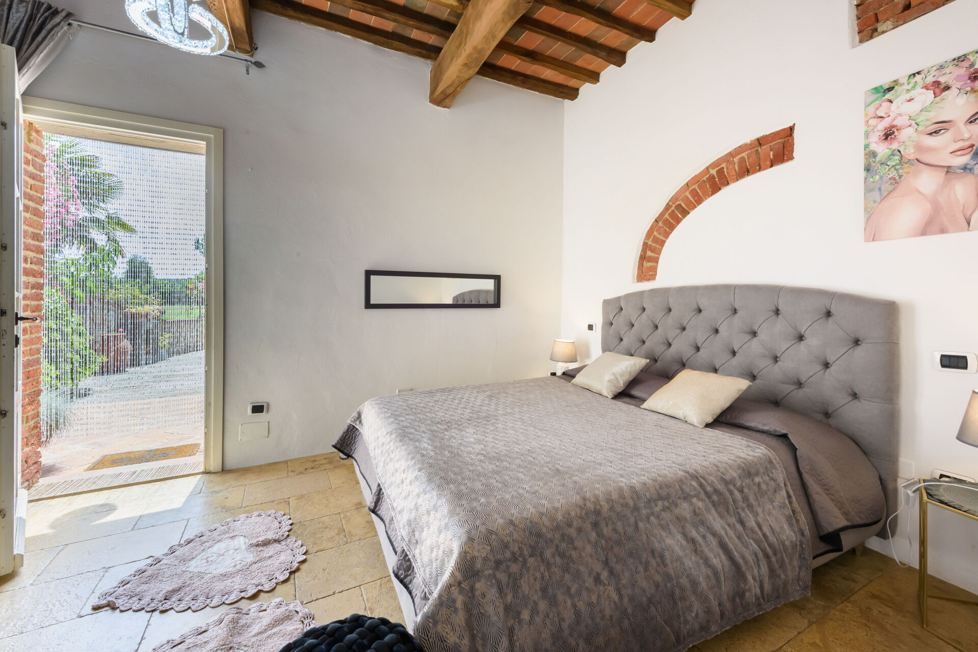 Camera da letto 1: letto matrimoniale, internet WIFI, aria condizionata, uscita sul giardino.