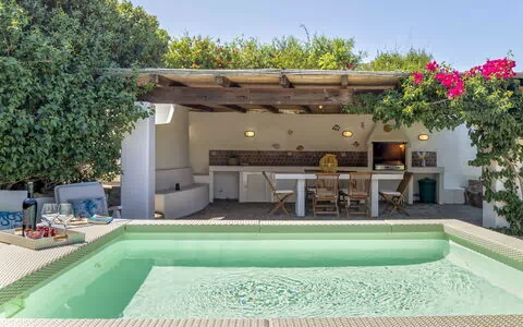 La confortevole casa "Shardana" a Santa Teresa Gallura, in Italia, offre un delizioso affitto vacanze con molte comodità per il vostro piacere. La proprietà vanta un giardino privato con prato, alberi e una piscina fuori terra (3 x 2 m, profondità 60 cm, disponibile stagionalmente dal 1° maggio al 30 settembre). Inoltre, avrete accesso a una doccia esterna, parcheggio per due auto in loco e Internet WiFi.