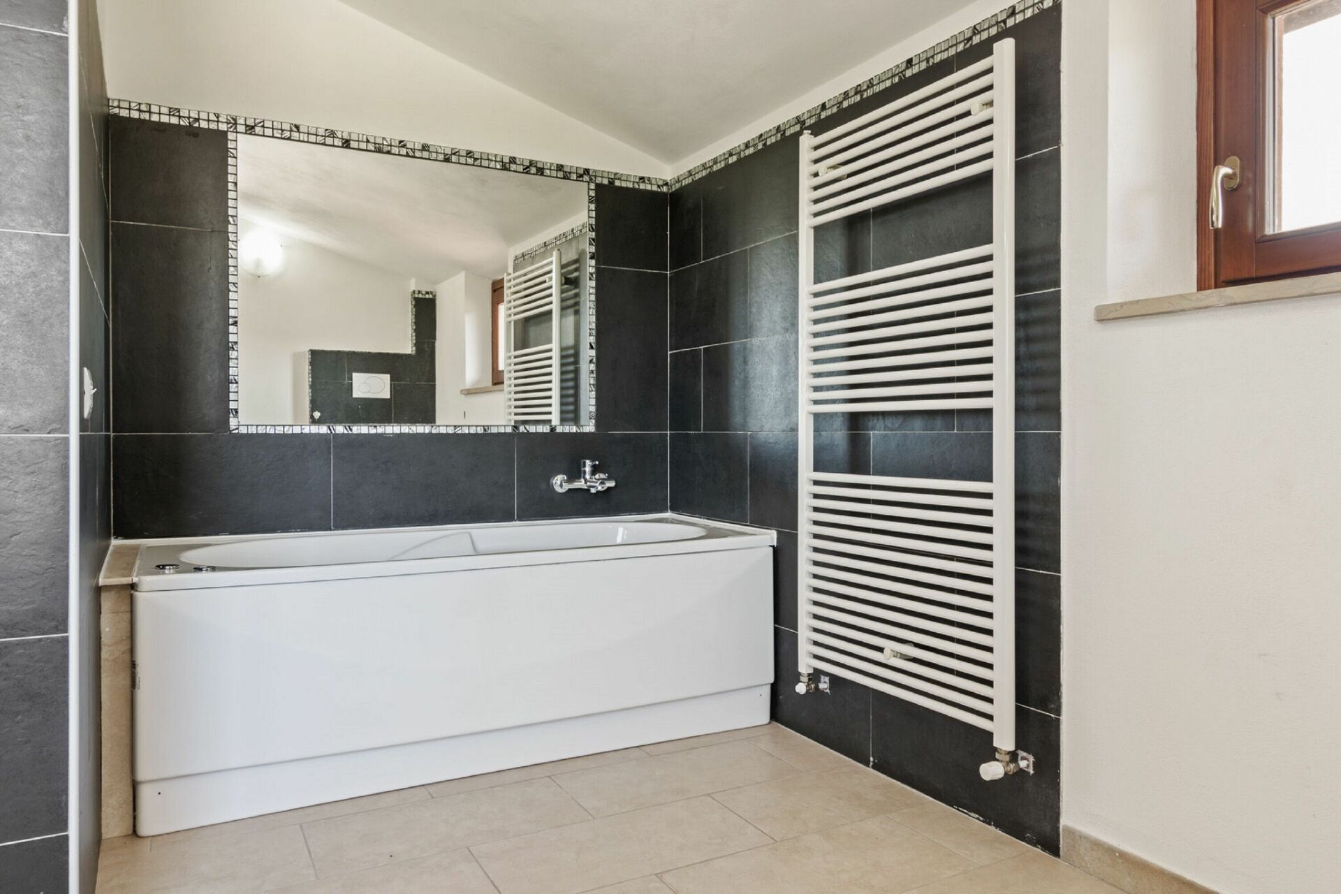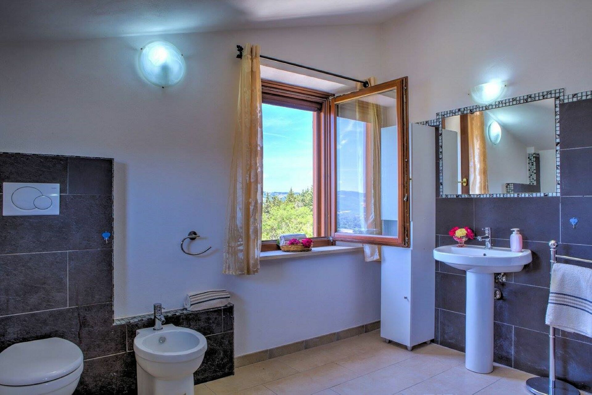 Bagno: vasca da bagno idromassaggio, lavandino, wc, bidet.