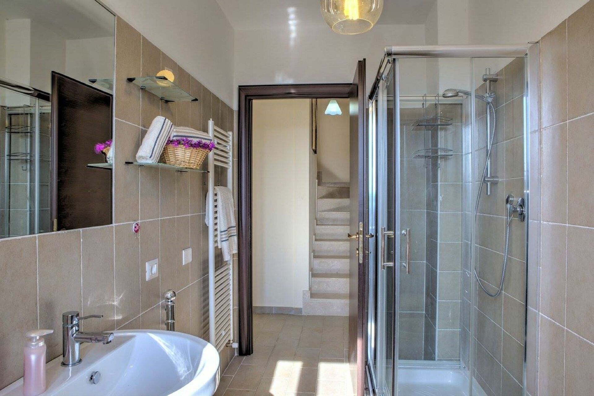 Bagno 1: lavandino, wc, bidet, doccia.