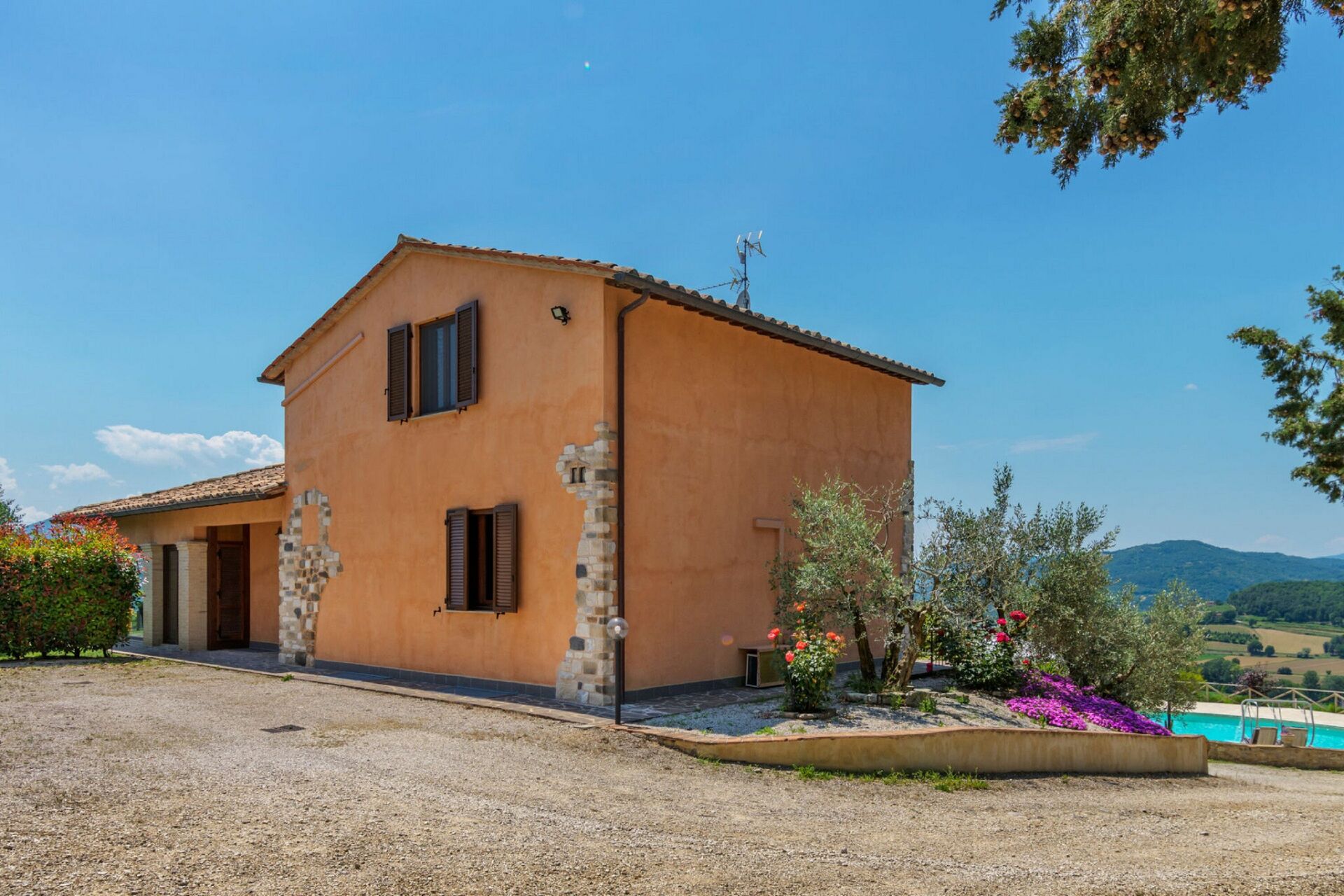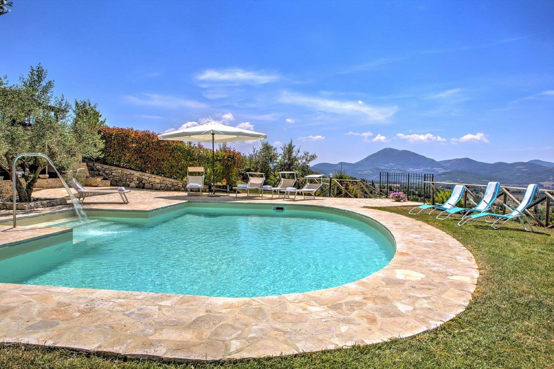 Una volta arrivato a Villa Montone troverai una splendida casa vacanze, pulita e tenuta in ottime condizioni, perfetta per una piacevole vacanza in Umbria. Dopo una frenetica giornata ricca di visite ai musei locali, concediti del tempo con famiglia e amici a bordo piscina per gustarti una bibita rinfrescante o un buon calice di vino - non c'è niente di meglio per rilassarti alla fine della giornata. All'aperto avrai a tua disposizione anche un barbecue e una vasca idromassaggio. C'è una cucina con macchinetta per il caffè, microonde, tostapane e frigorifero, così come un numero sufficiente di stoviglie e posate per un massimo di 12 persone. Se preferisci mangiare all'aperto, c'è a tua disposizione un giardino completamente accessoriato dove potrai goderti il bel tempo durante i tuoi pasti.