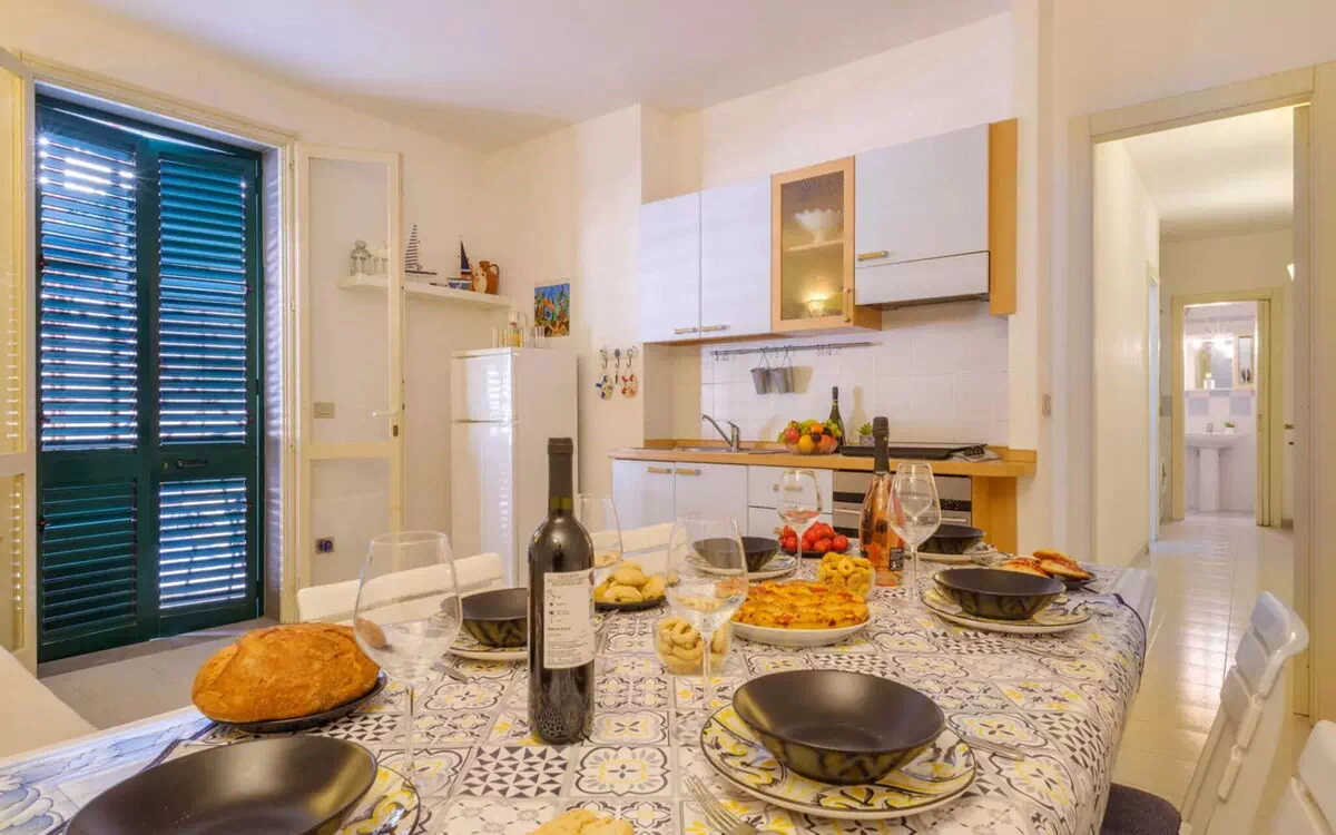 Una volta arrivato troverai una elegante casa vacanze pulita e in ottime condizioni, ideale per una piacevole vacanza in Puglia. Per il tuo divertimento troverai un giardino privato dove potrai riposarti mentre ti godi una bibita gelata dopo una giornata frenetica ricca di giri turistici.Uno dei fattori che rende il soggiorno in una casa vacanze più piacevole di quello in più camere d'albergo, è la possibilità di rilassarsi tutti insieme dopo una lunga giornata di visite turistiche; un'occasione per godersi un pasto insieme a famiglia e amici con del buon vino locale per concludere al meglio la giornata. Condividere un pasto in compagnia di famiglia e amici è un grande aspetto della cultura italiana. Approfitta della cucina ben accessoriata per preparare pasti utilizzando prodotti locali freschi e genuini mentre ti trovi in vacanza. La cucina è provvista di macchinetta del caffè, fornelli e frigorifero, così come un numero sufficiente di stoviglie e posate per un massimo di sei persone.