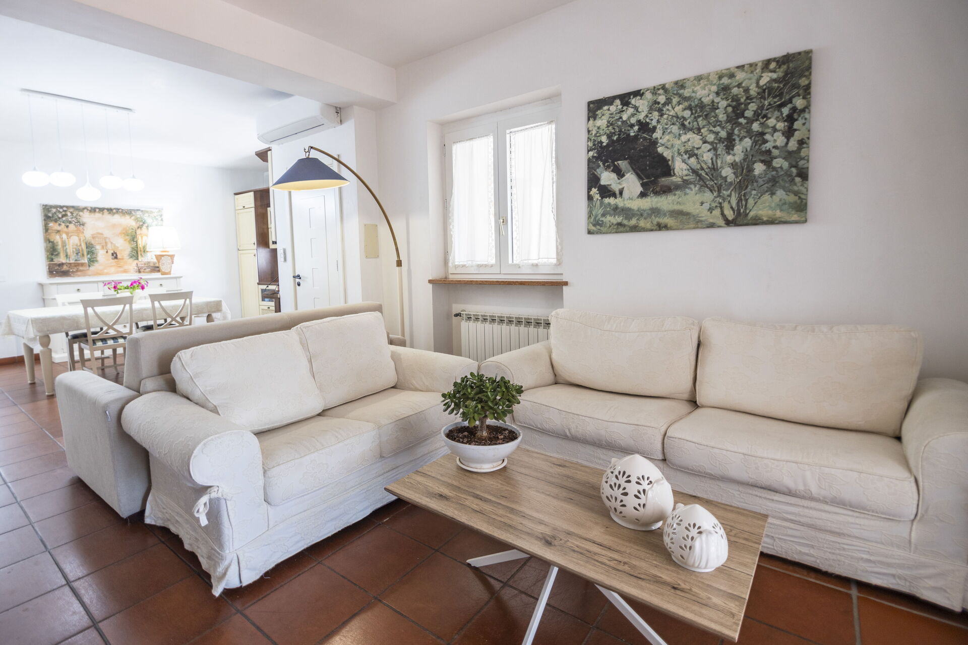 Soggiorno: televisione, uscita sul giardino.