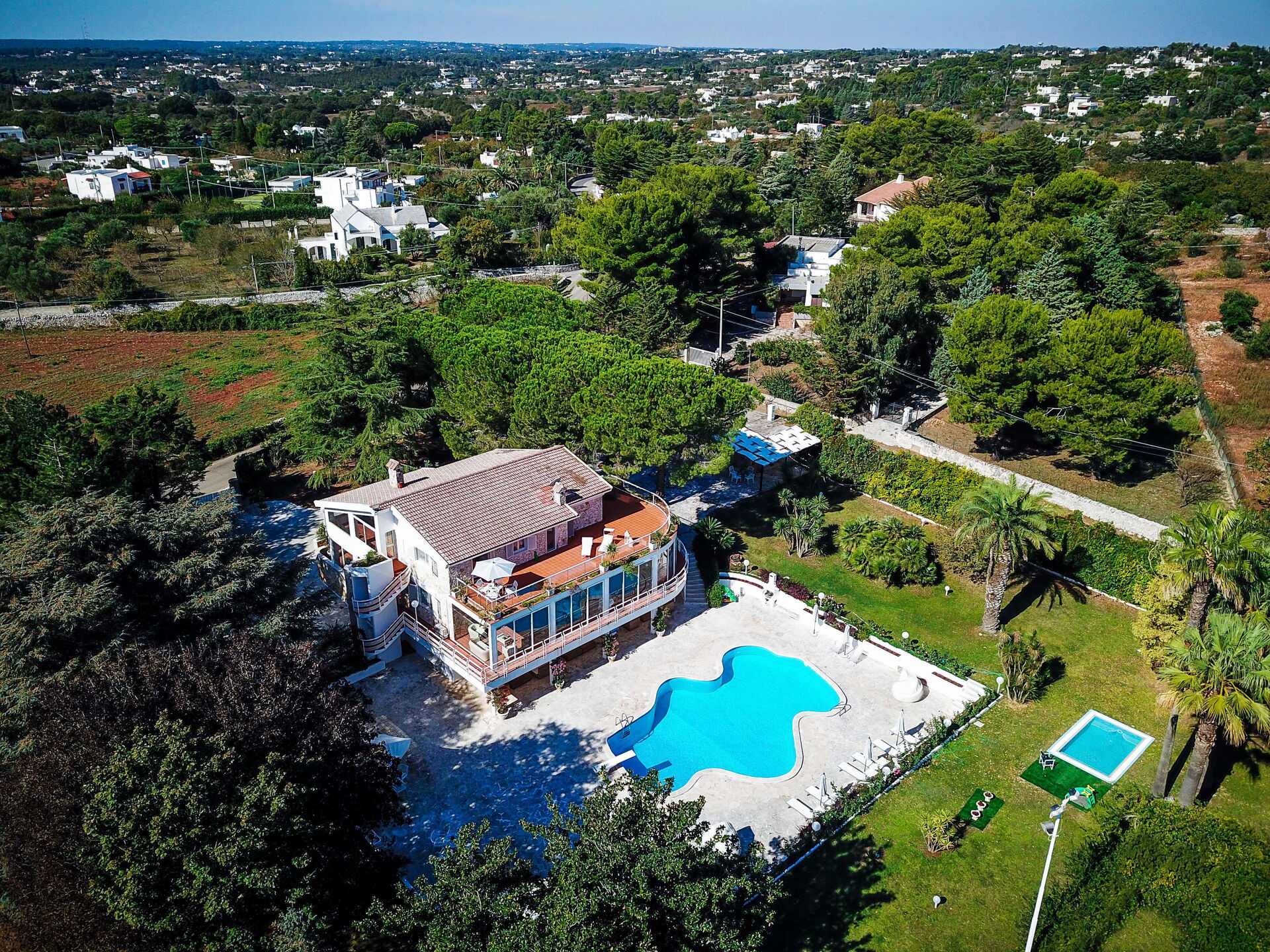 La proprietà è posizionata a soli 5 km di distanza da Martina Franca (Italia), nell'area turistica "Salento" e solo a 19 km di distanza da Alberobello. Villa Sole Martina Franca è una incantevole casa vacanze (410 mq) con internet Wi-Fi, piscina privata e aria condizionata. La proprietà può accogliere comodamente fino a 15 ospiti in sette camere da letto con quattro bagni. Se hai sempre desiderato visitare la bellissima costa italiana, la casa vacanze si trova ad una breve distanza dal mare (20 km).