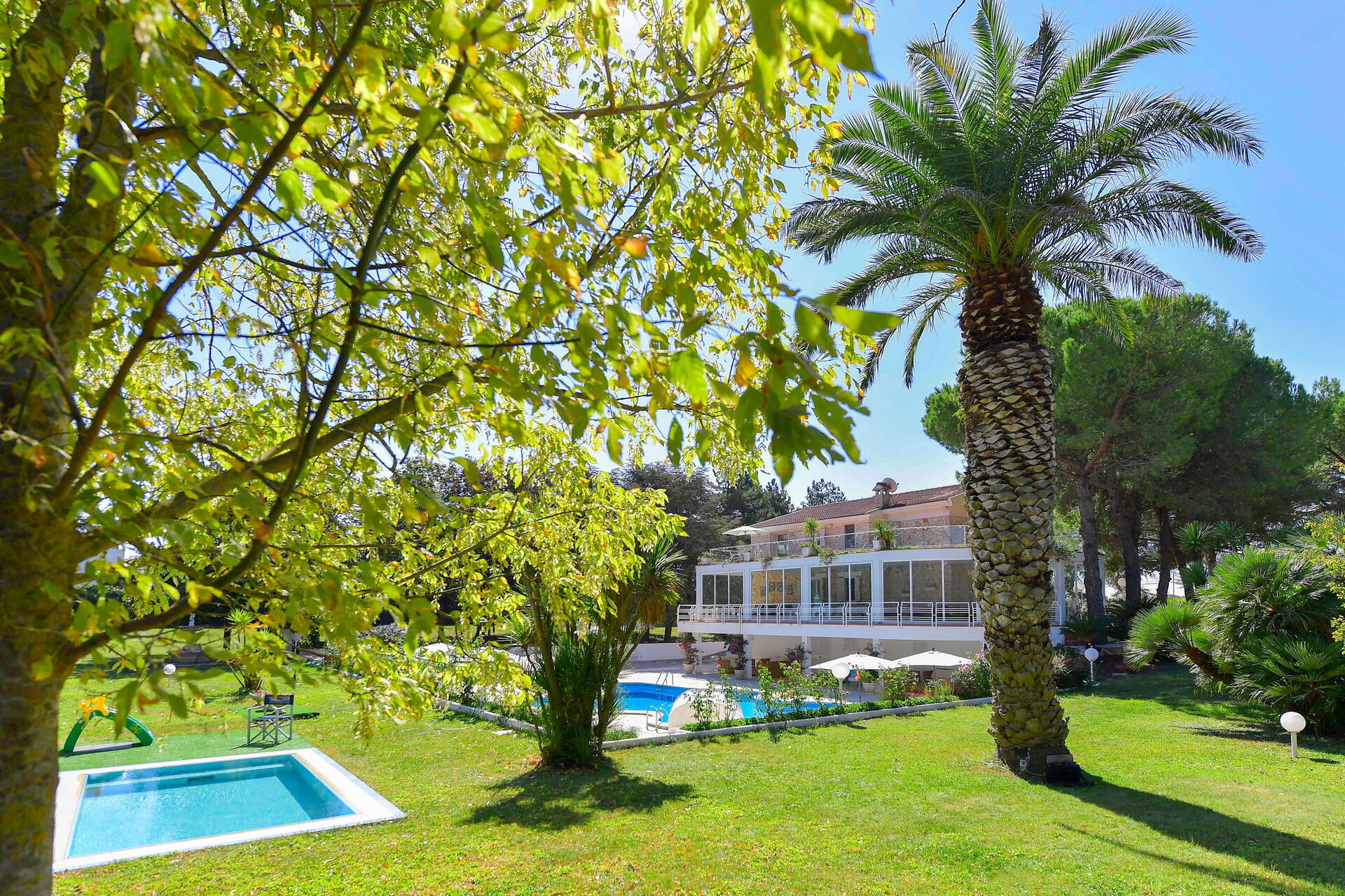 Giardino: piscina (privato/a, larghezza: 2m, lunghezza: 4m, profondità: 1m, profondità max.: 1m, profondità min.: 1m, esterno/a, riscaldato/a), piscina (privato/a, larghezza: 3m, lunghezza: 12m, profondità max.: 2.8m, profondità min.: 1.3m, esterno/a), doccia, internet WIFI, barbeque, possibilità di mangiare all'aperto, arredamento da giardino, 20 sdraio, proprietà recintata, campo da calcetto.