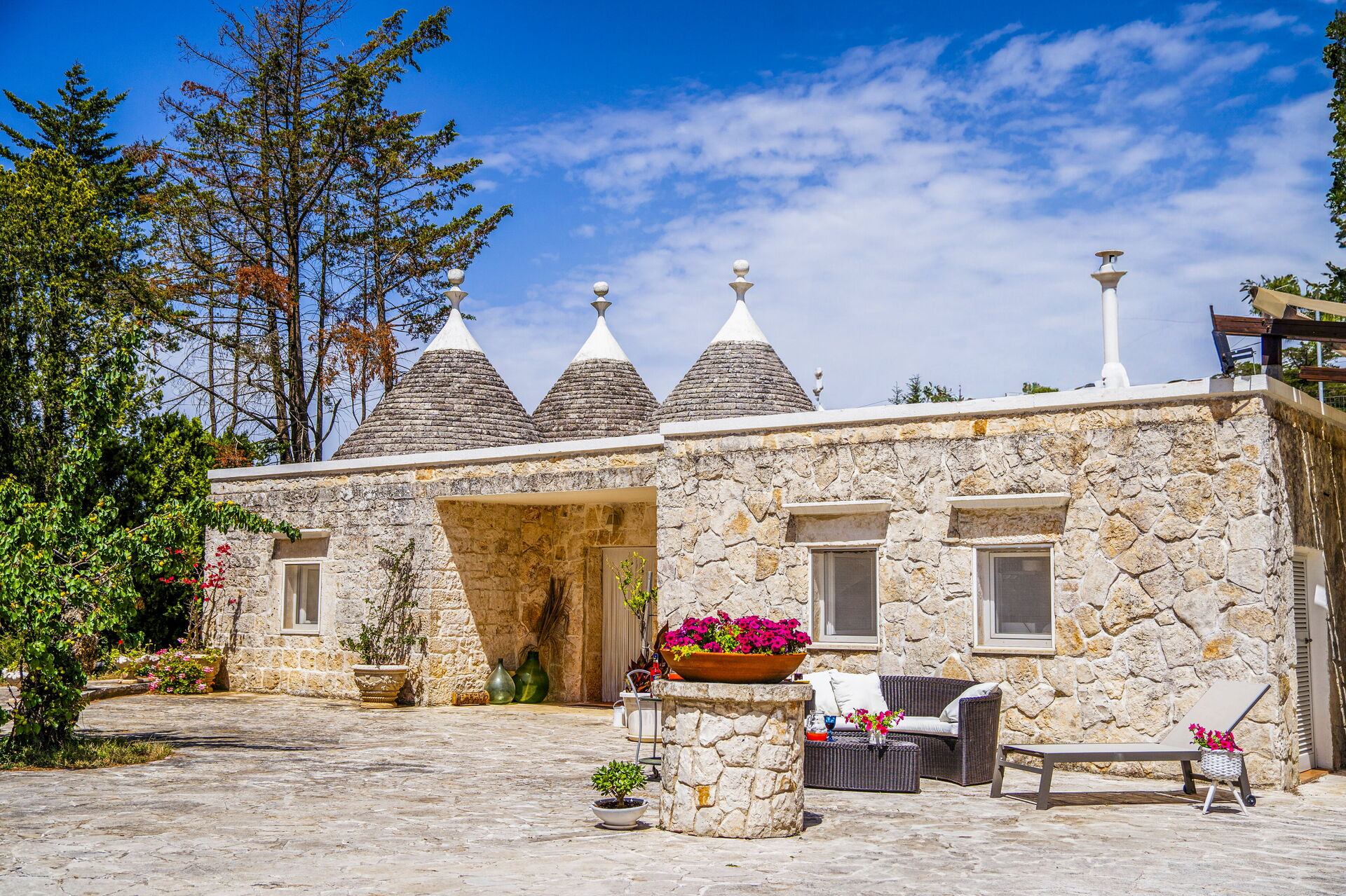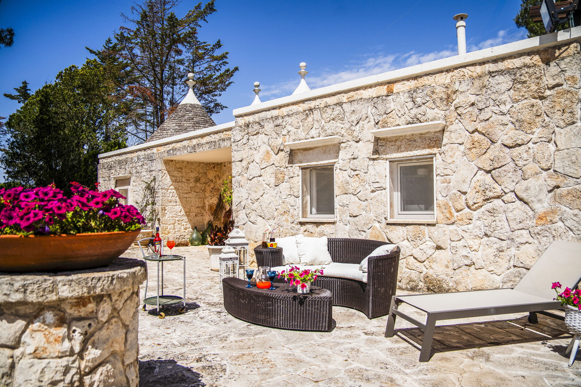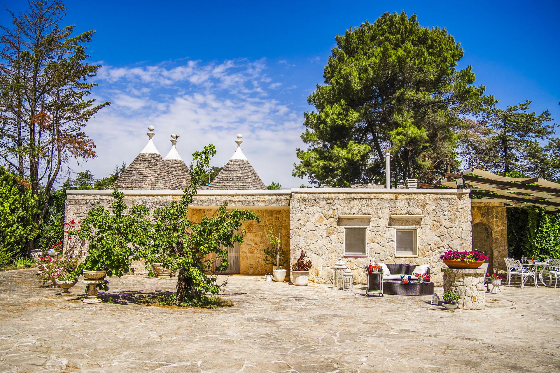 La proprietà è composta da due appartamenti non comunicanti nell'edificio principale e da un Trullo separato.