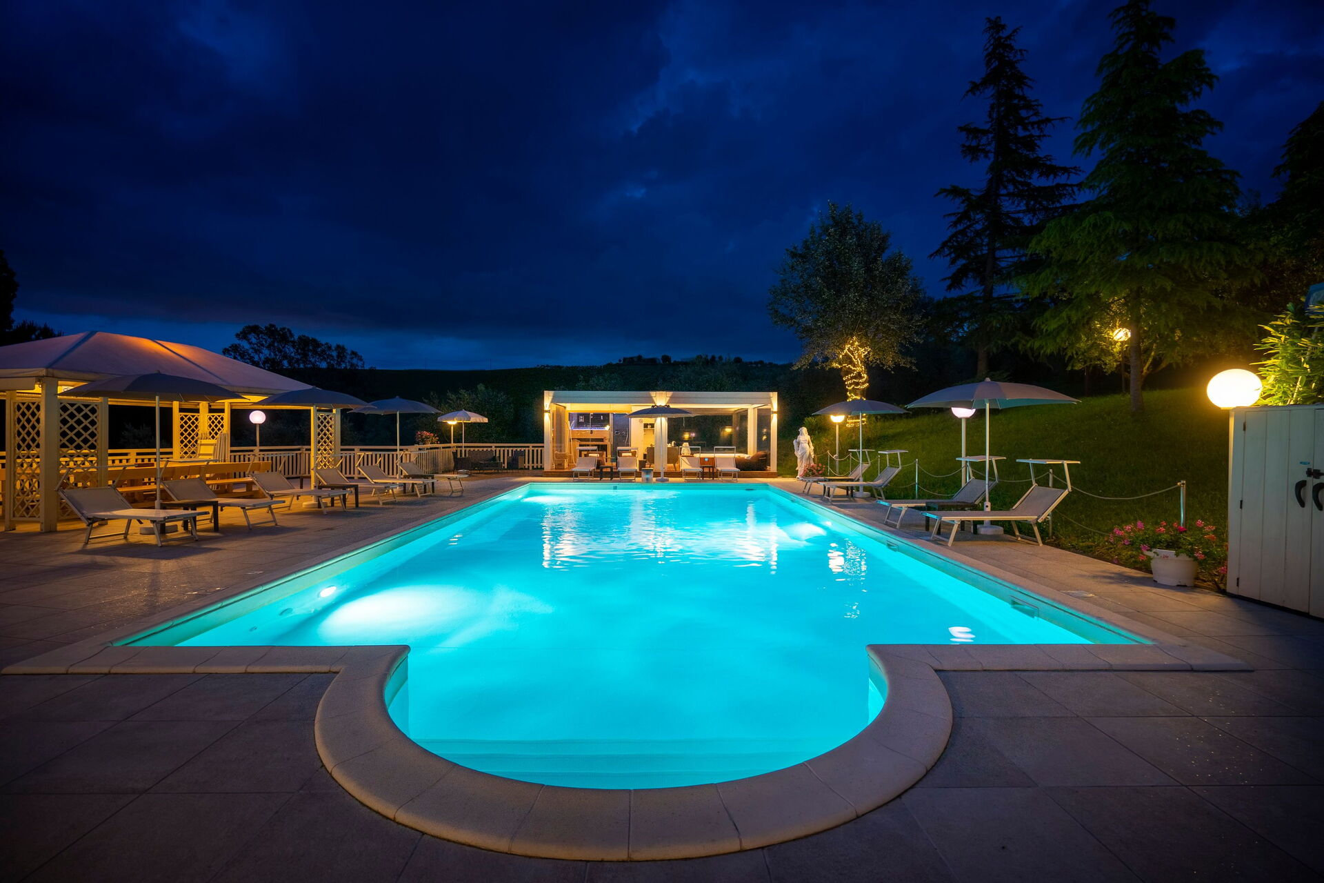 A disposizione degli ospiti: 4 camere, e 4 bagni; 8/12 persone, aria condizionata, 3 camere vasca idromassaggio con cromoterapia, piscina privata, zona solarium, Spa esterna con: sauna e bagno turco disponibili dalle 14:00 alle 24:00, vasca idromassaggio Jacuzzi disponibile h/24, ampio giardino con zone relax e forno per le pizze, gazebo, parco di 1600 ulivi e piante da frutta, lago privato per pesca amatoriale, campo di calcetto, collegamento ad internet wi-fi (free wi-fi) , parcheggio
