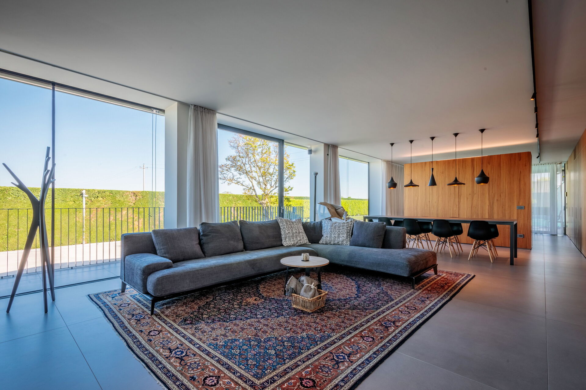 Cucina - soggiorno: tavolo da pranzo (persone: 8), lavastoviglie, frigo, freezer, microonde, piano cottura, forno, macchina da caffè (italiana), macchina da caffè americano, divano, internet WIFI, tv satellitare, uscita sul giardino.