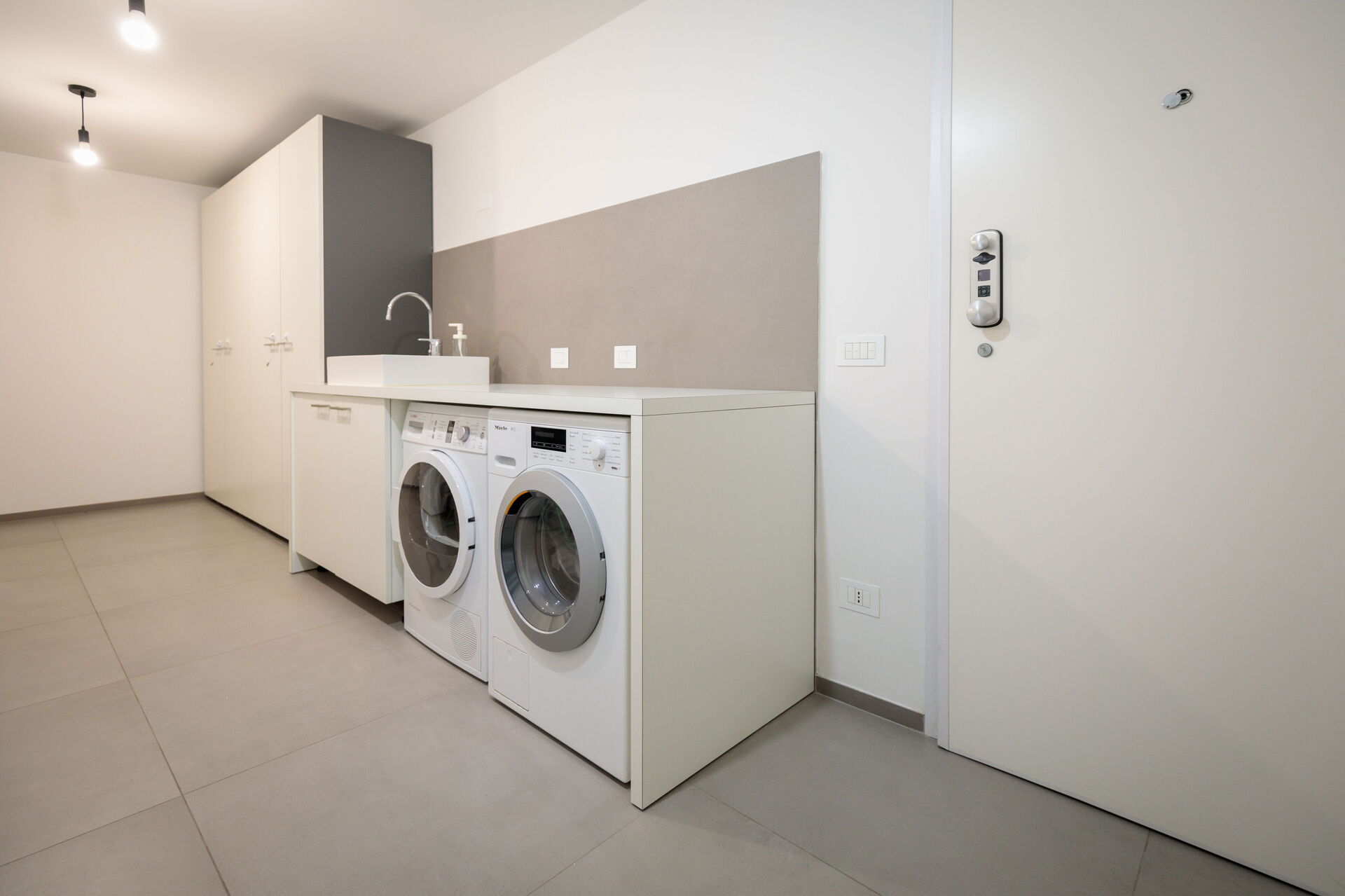 Stanza di servizio: ferro da stiro, lavatrice, asciugatrice.