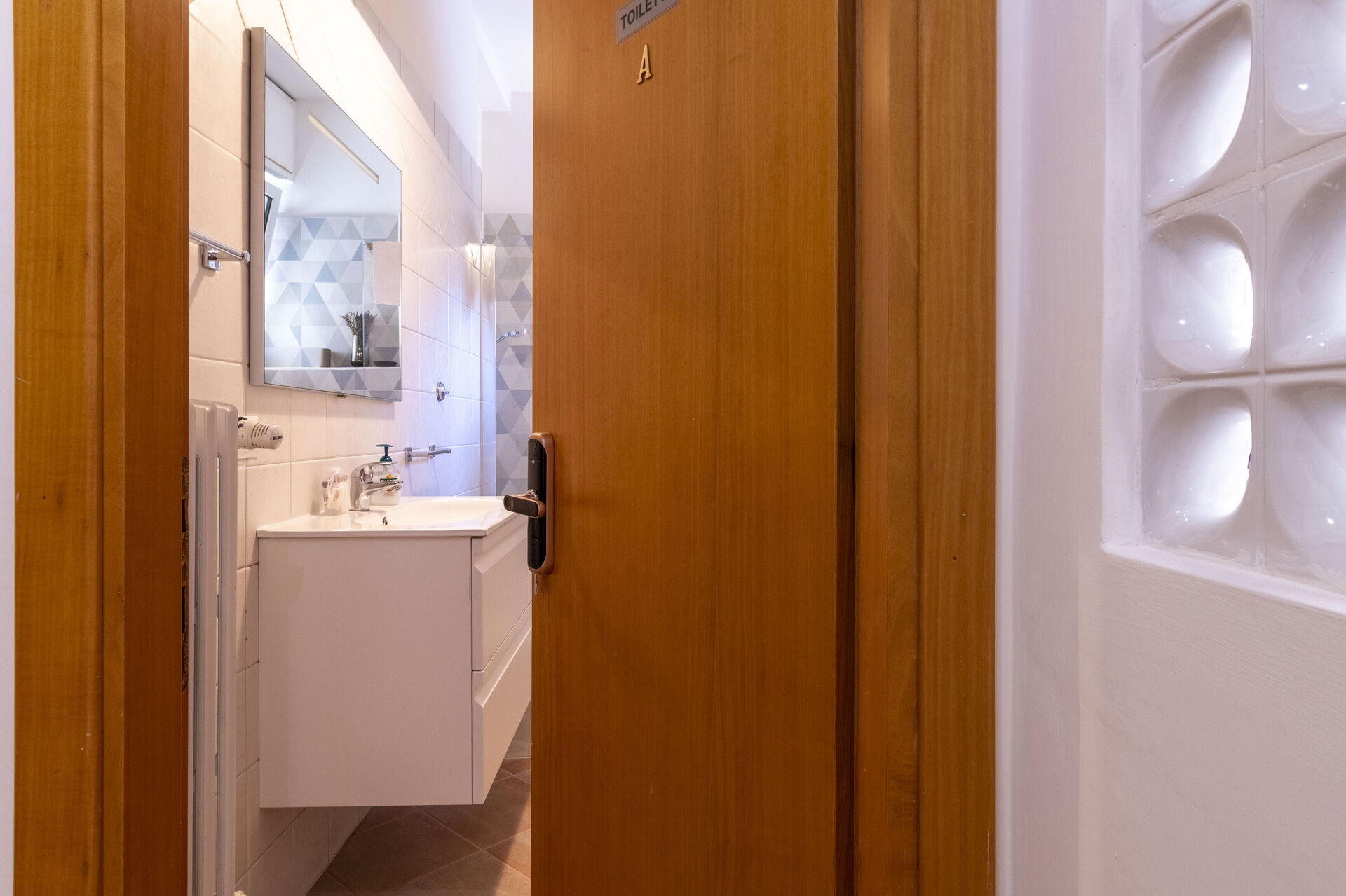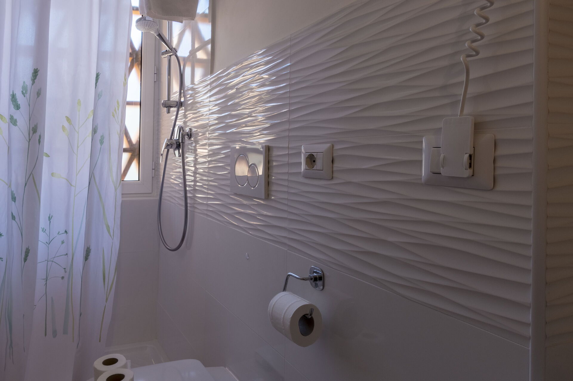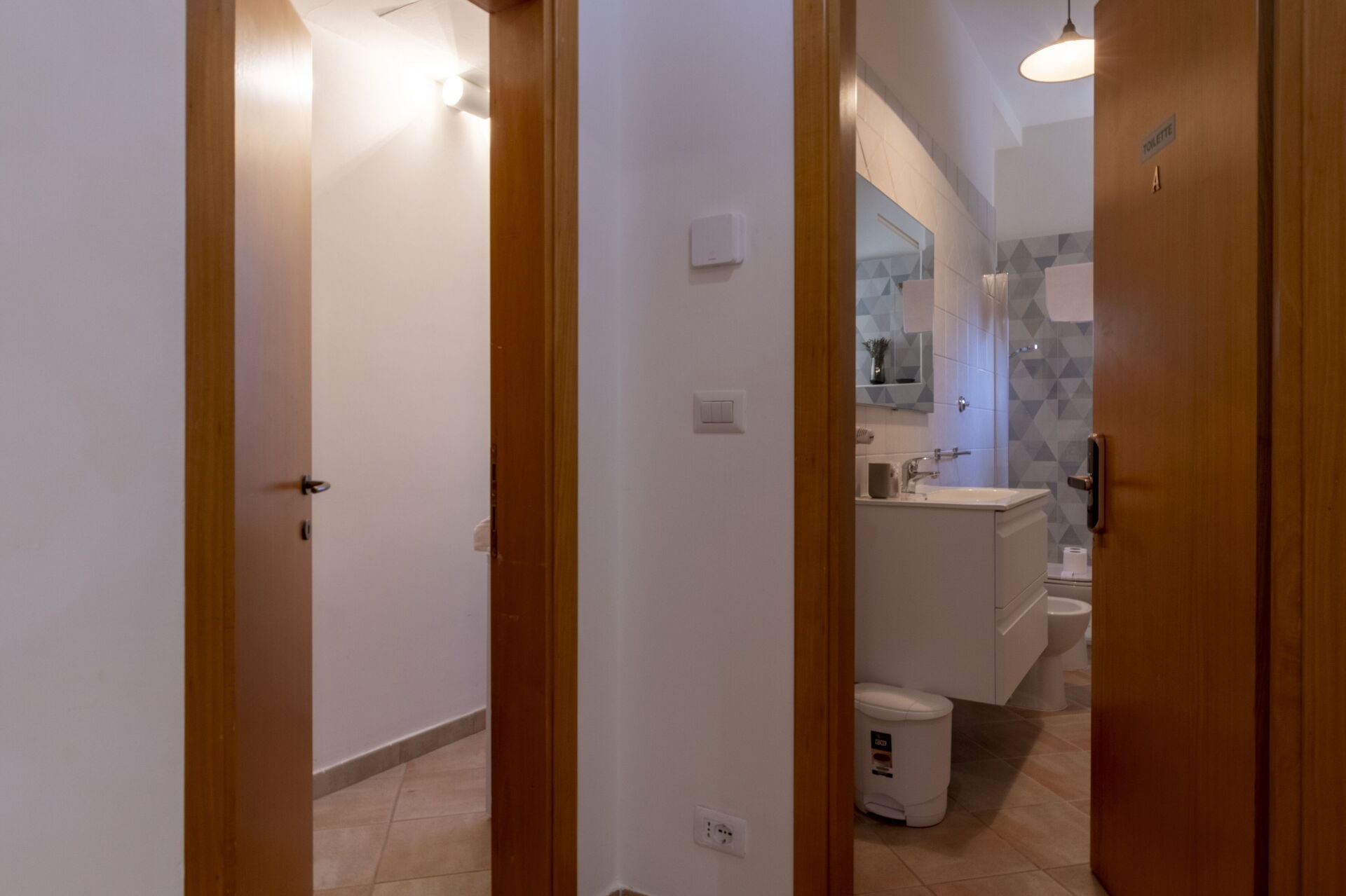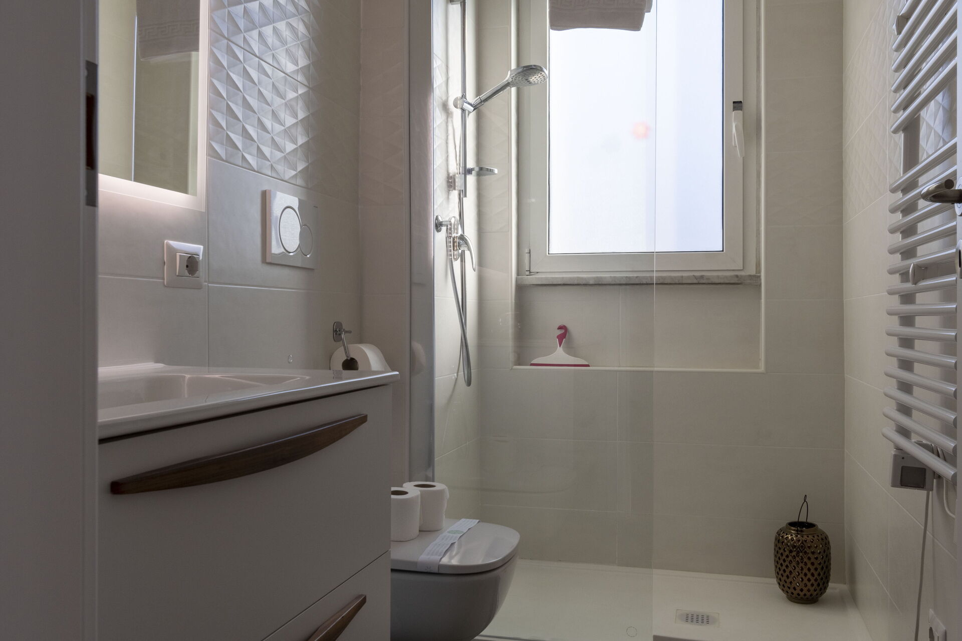 Bagno 1: lavandino, wc, doccia, asciugacapelli.