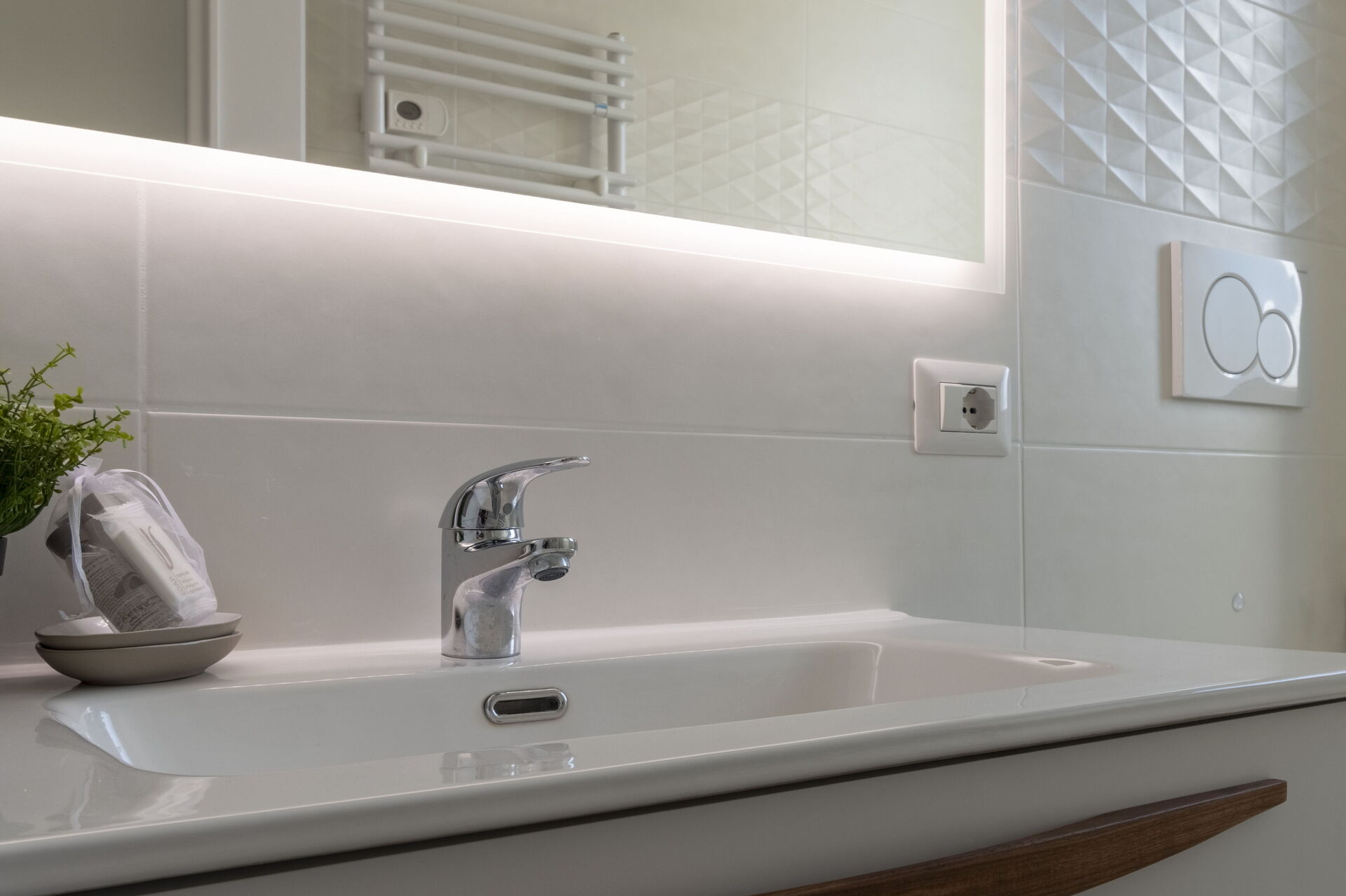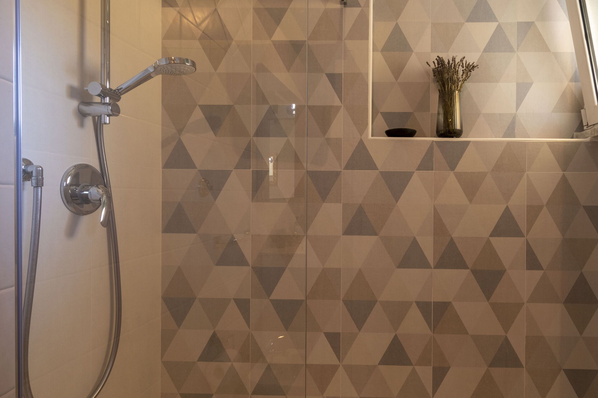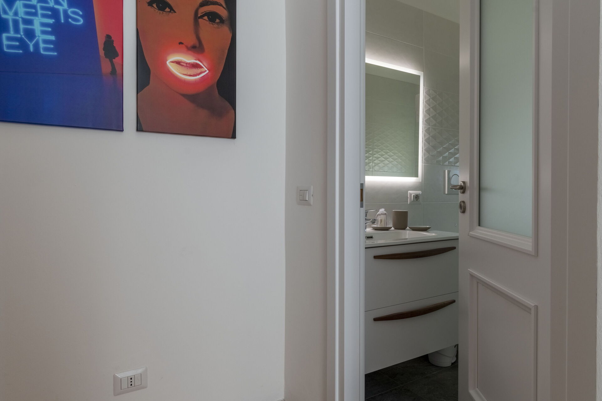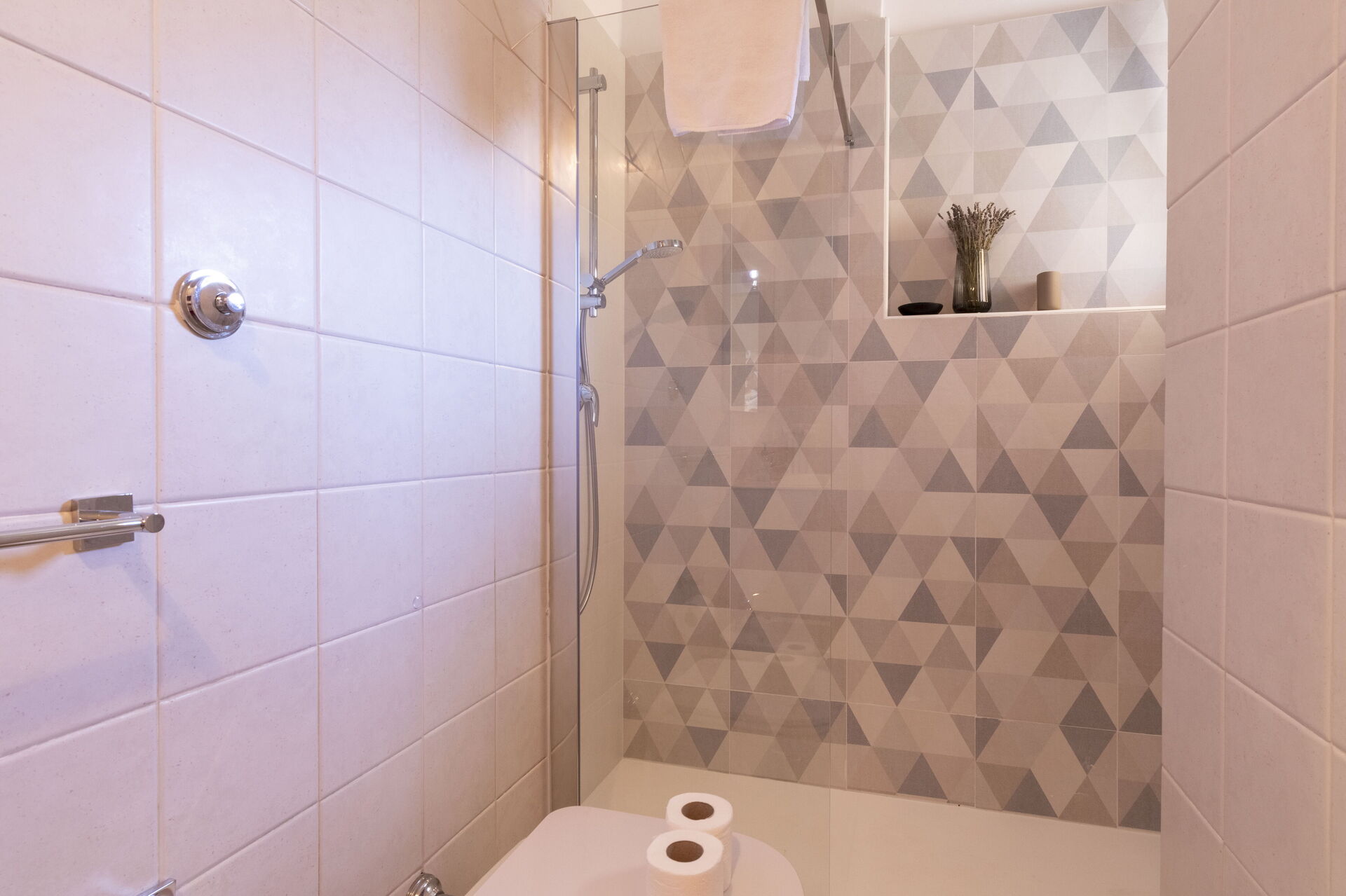 Bagno 1: lavandino, wc, doccia, asciugacapelli.