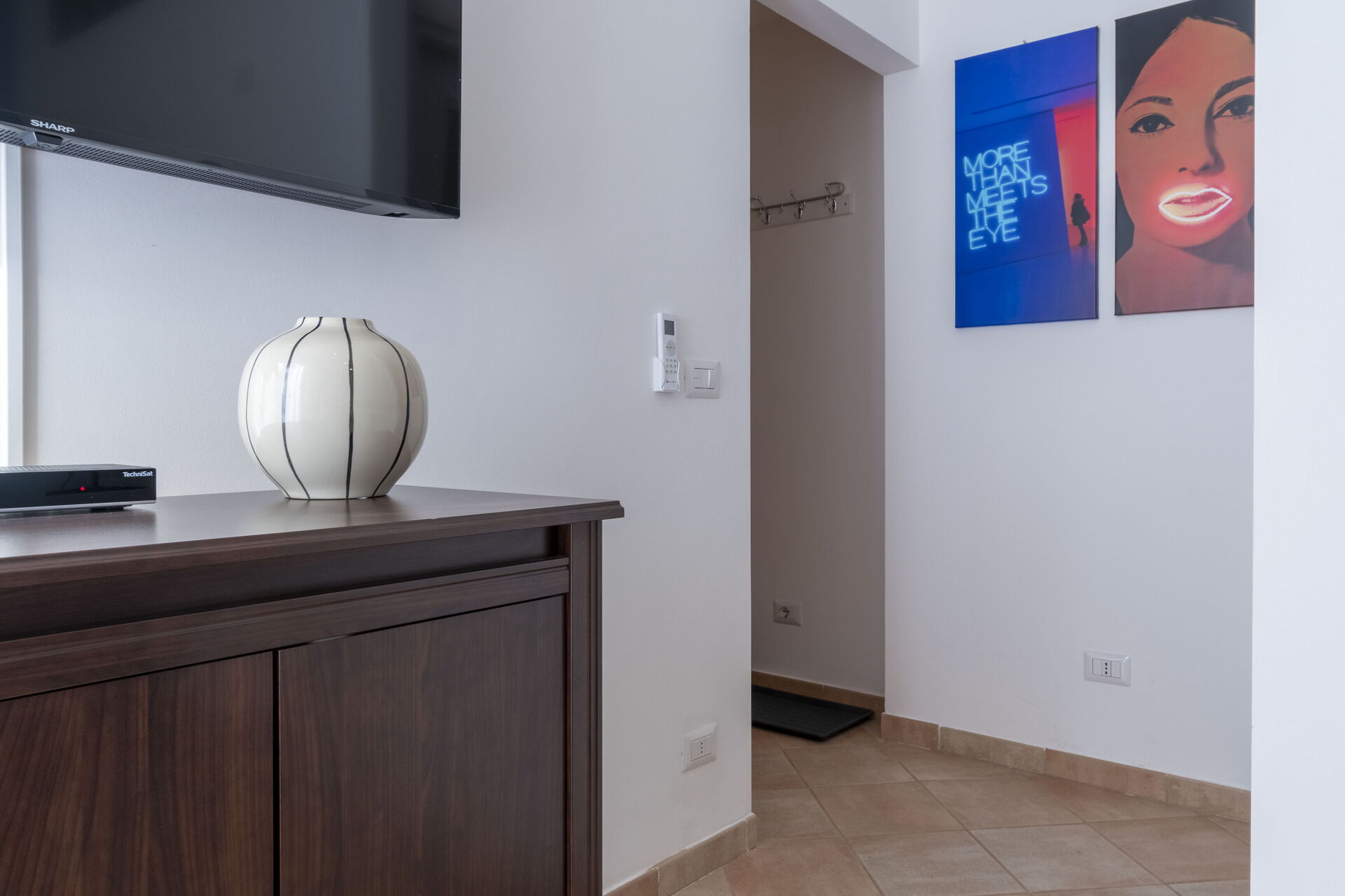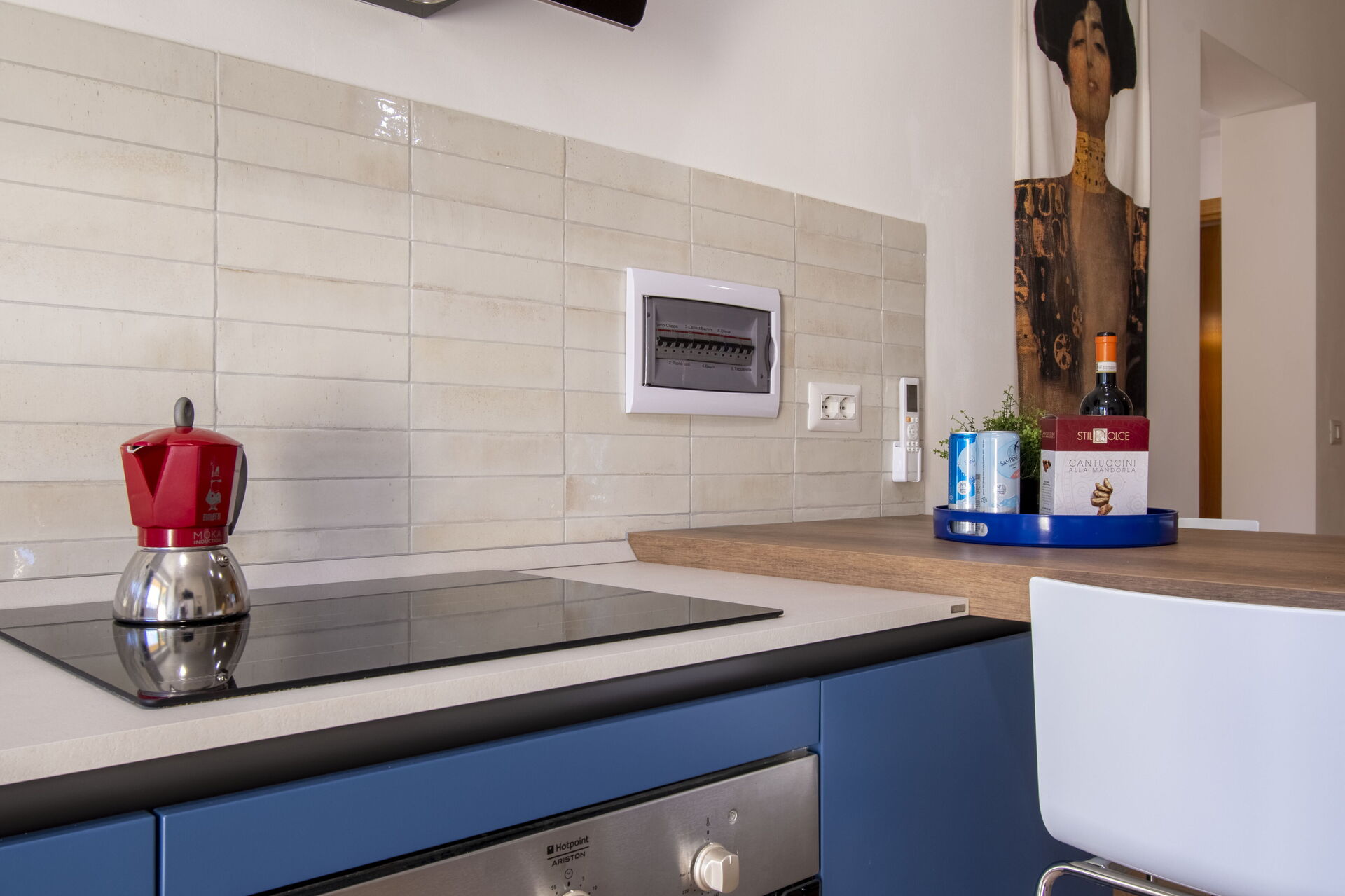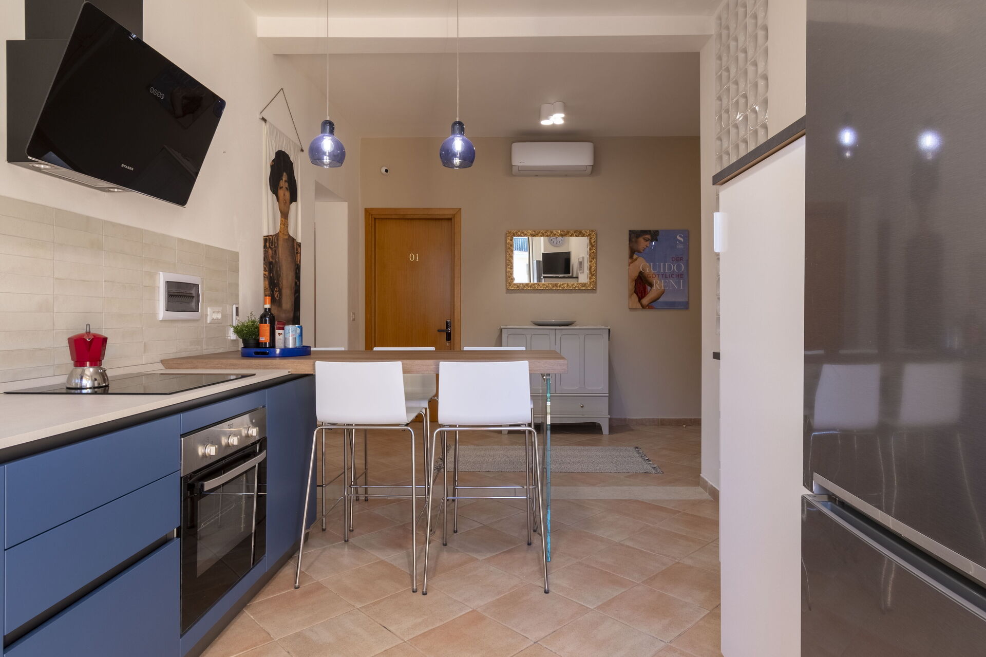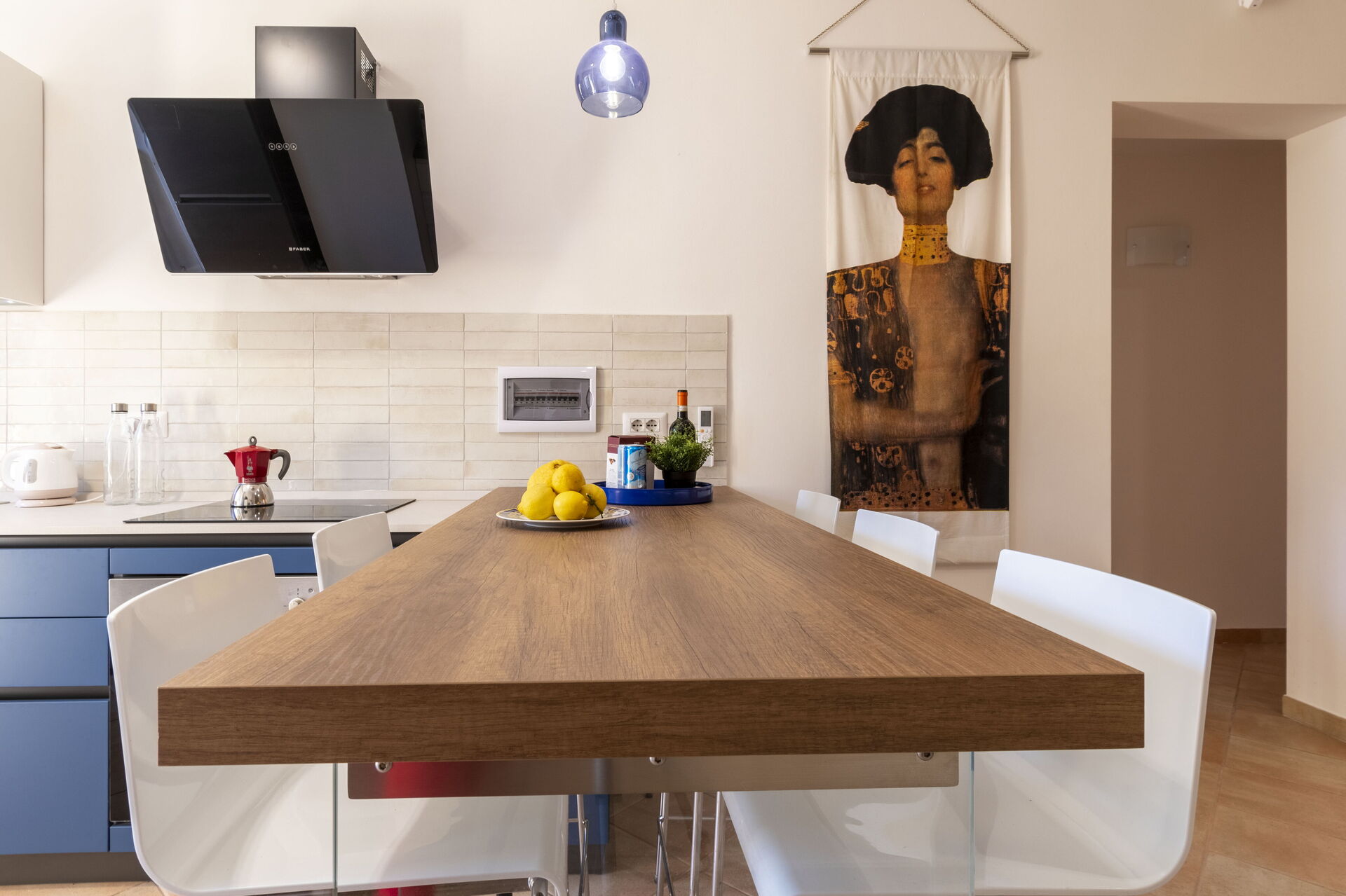 Cucina: cucina ben attrezzata, tavolo da pranzo, lavastoviglie, frigo, freezer, piano cottura, forno, tostapane, macchina da caffè (italiana), internet WIFI, aria condizionata, televisione, uscita sul balcone.