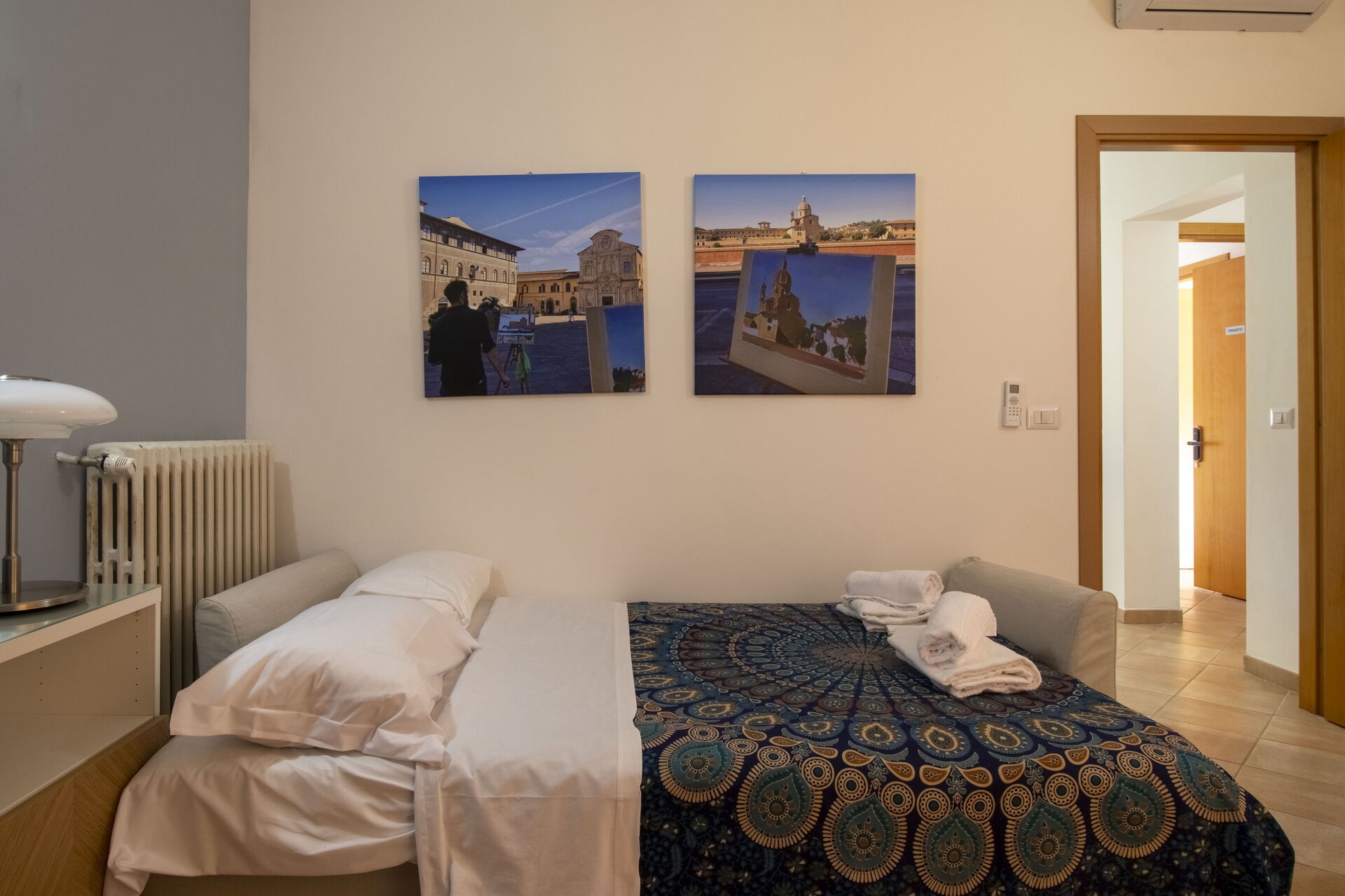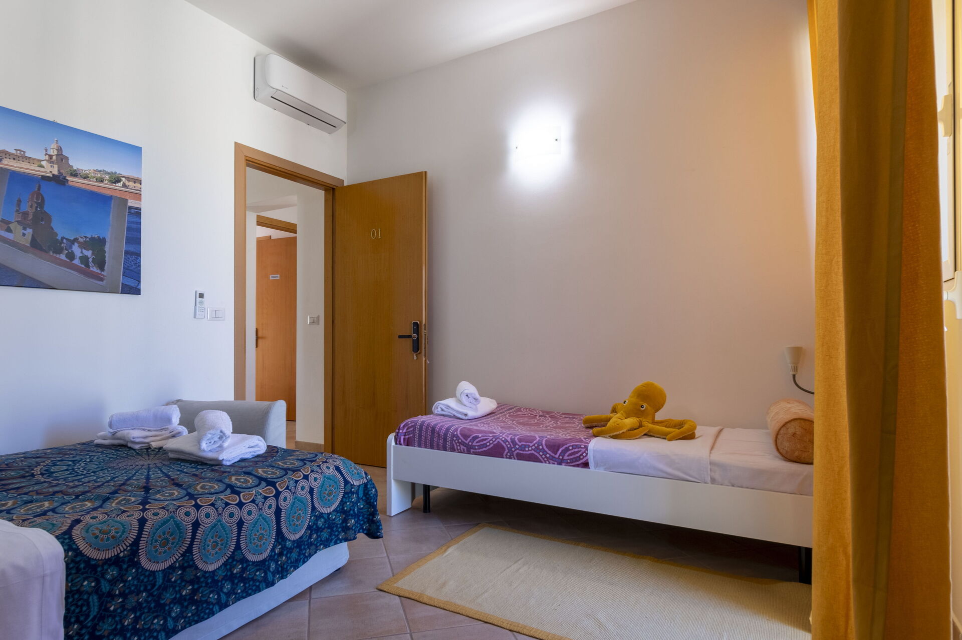 Camera da letto 3: letto singolo, divano letto matrimoniale, internet WIFI, aria condizionata, tv satellitare, scrivania.