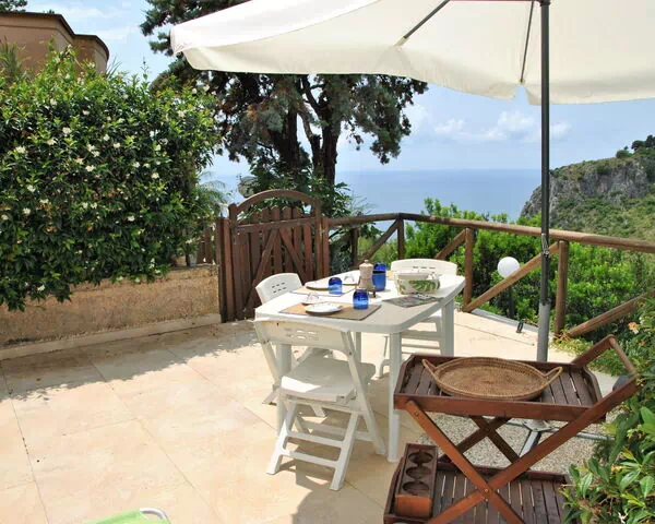 La proprietà dispone di un giardino terrazzato privato di 30 metri quadrati, uno spazio esterno tranquillo dove rilassarsi e godere del paesaggio naturale circostante. Il giardino offre un'atmosfera affascinante circondata dalla caratteristica vegetazione mediterranea dell'area di Punta Cetarola.
