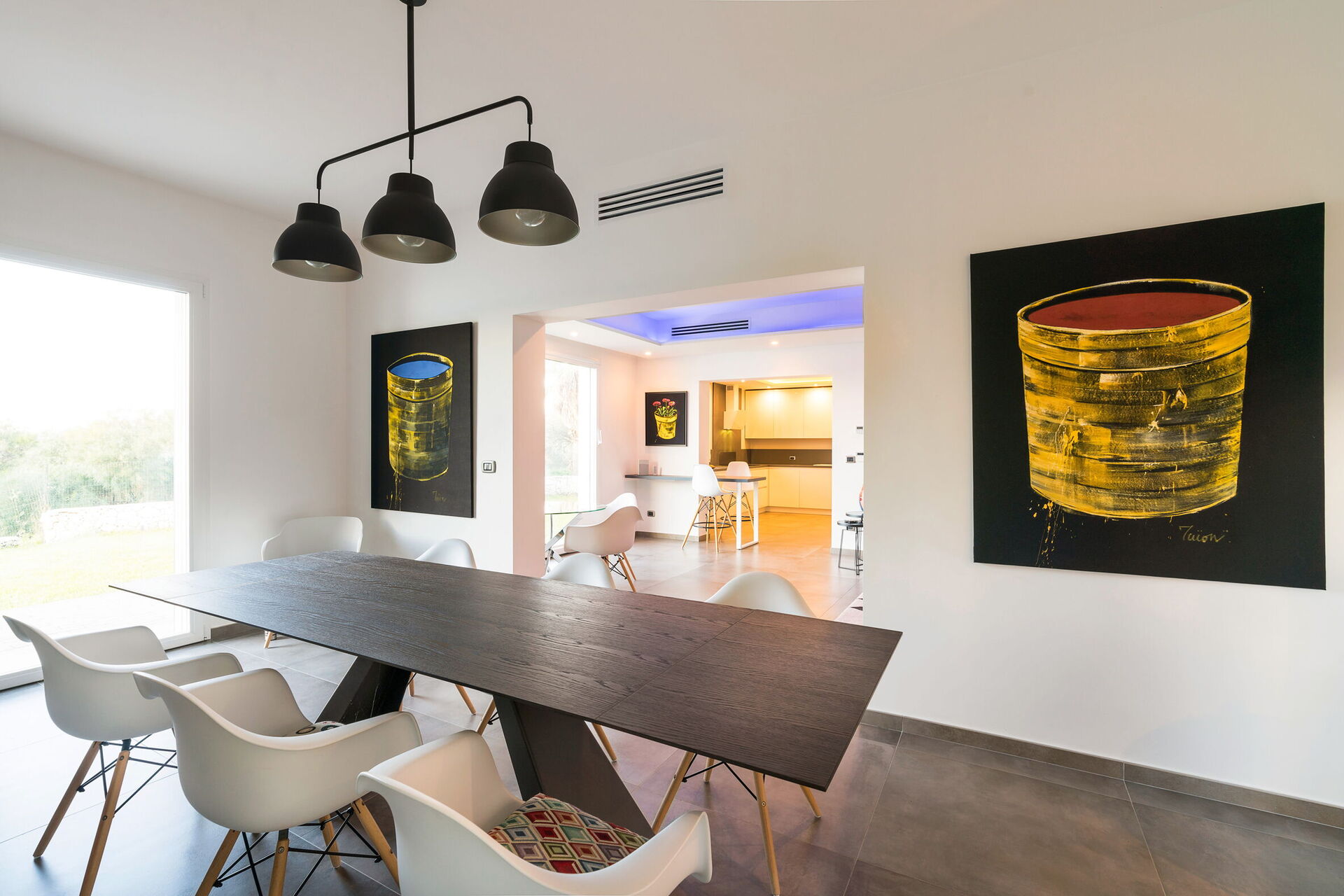 La dimora è di recente costruzione e si presenta come una residenza contemporanea. Dispone di spazi ampi e raffinati, con un design che include autentici pezzi di design.