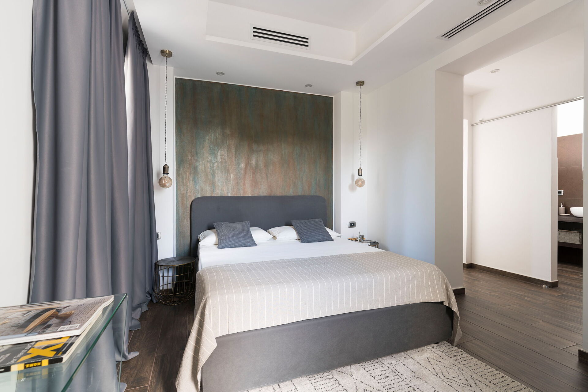 Camera da letto con bagno 3: letto matrimoniale, internet WIFI, aria condizionata, lavandino doppio, wc, bidet, doccia.