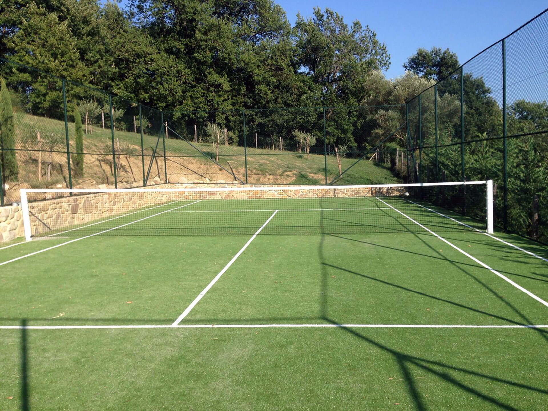 Giardino: piscina (privato/a, larghezza: 5m, lunghezza: 15m, profondità: 1.5m, esterno/a), barbeque, tavolo da pranzo, arredamento da giardino, campo da tennis.