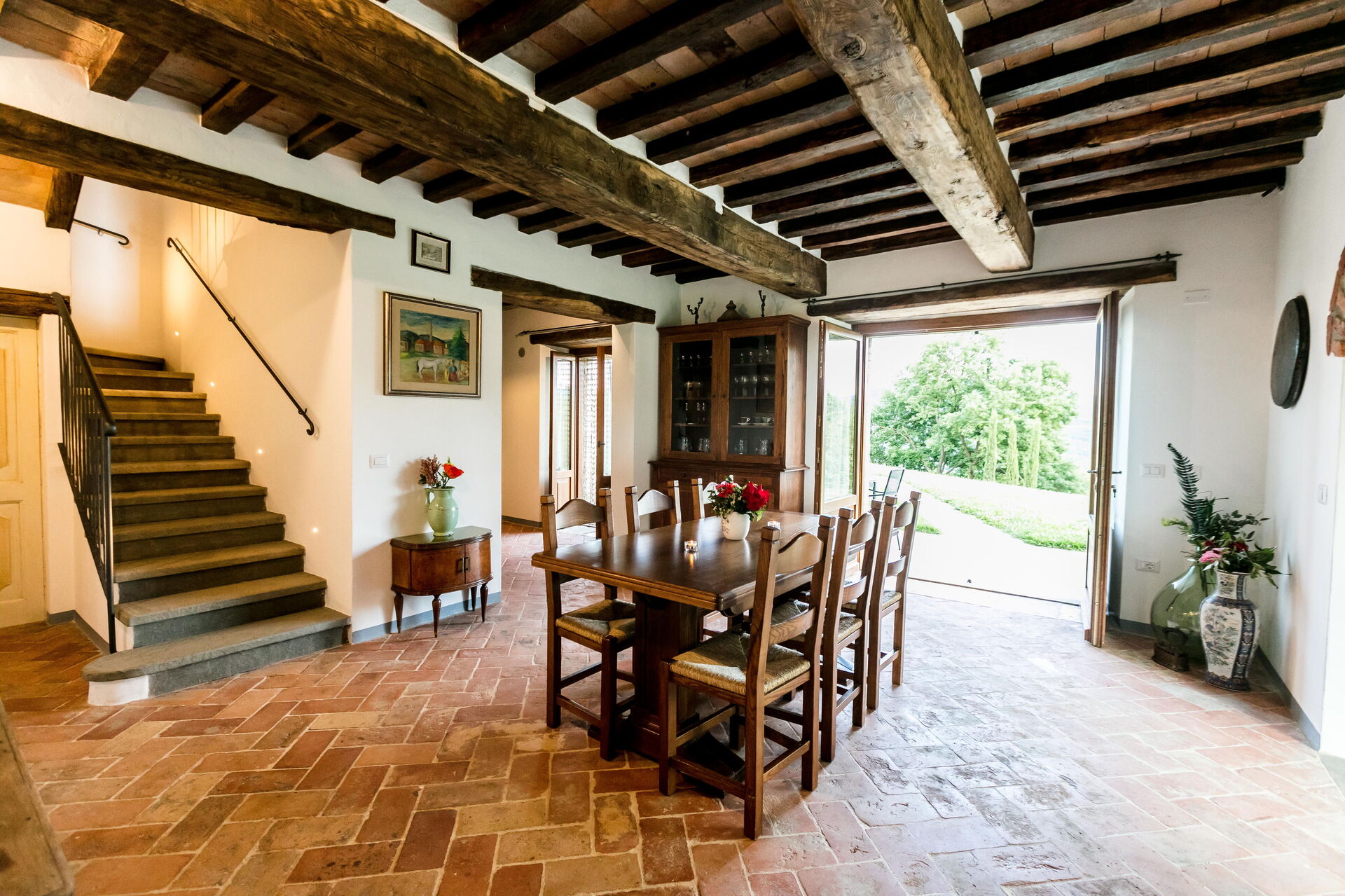 All'arrivo troverai una splendida casa vacanze pulita e in ottime condizioni con vista sulle colline, ideale per una tranquilla vacanza in Umbria. A prescindere da come trascorrerai le tue giornate - imbarcandoti in gite fuori porta, facendo shopping, visitando i più famosi musei della zona o semplicemente guidando nell'entroterra, quando arriverai a casa la sera avrai la possibilità di riposarti con famiglia e amici a bordo piscina concludendo in bellezza un altro fantastico giorno di vacanza in Umbria. Avrai a tua disposizione all'aperto anche un barbecue e un campo da tennis. Mangiare in compagnia di famiglia e amici è un grande aspetto della cultura italiana. Approfitta della cucina ben accessoriata per preparare pasti utilizzando prodotti locali freschi e genuini mentre ti trovi in vacanza. La cucina è provvista di macchinetta del caffè, microonde e tostapane, così come un numero sufficiente di stoviglie e posate per un massimo di 16 persone. Pranza o cena all'aperto, il giardino completamente accessoriato è la cornice perfetta per godersi del buon cibo, la compagnia della propria famiglia o gruppo di amici e l'incantevole clima italiano.