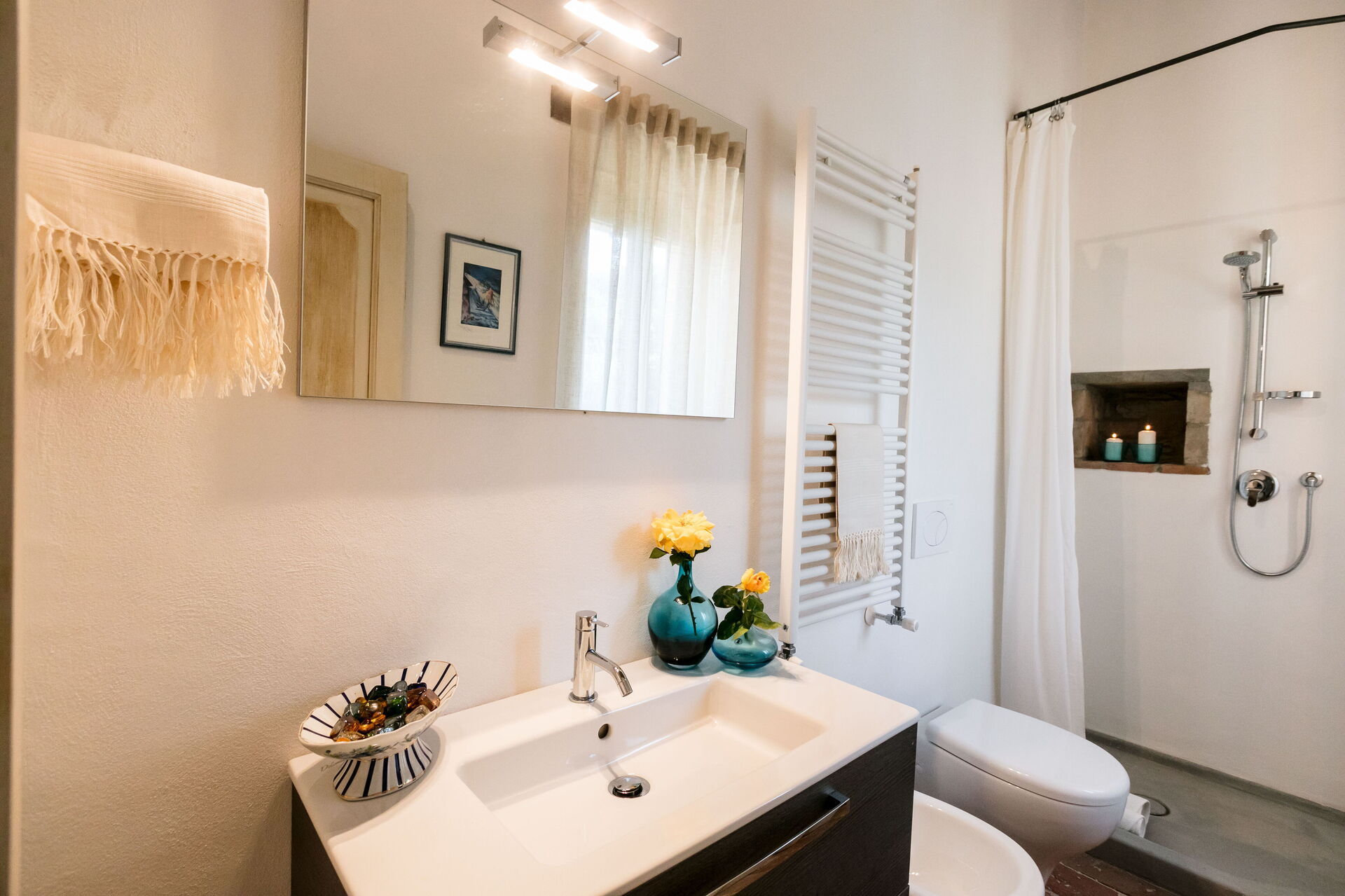 Bagno 3: lavandino, wc, bidet, doccia.
