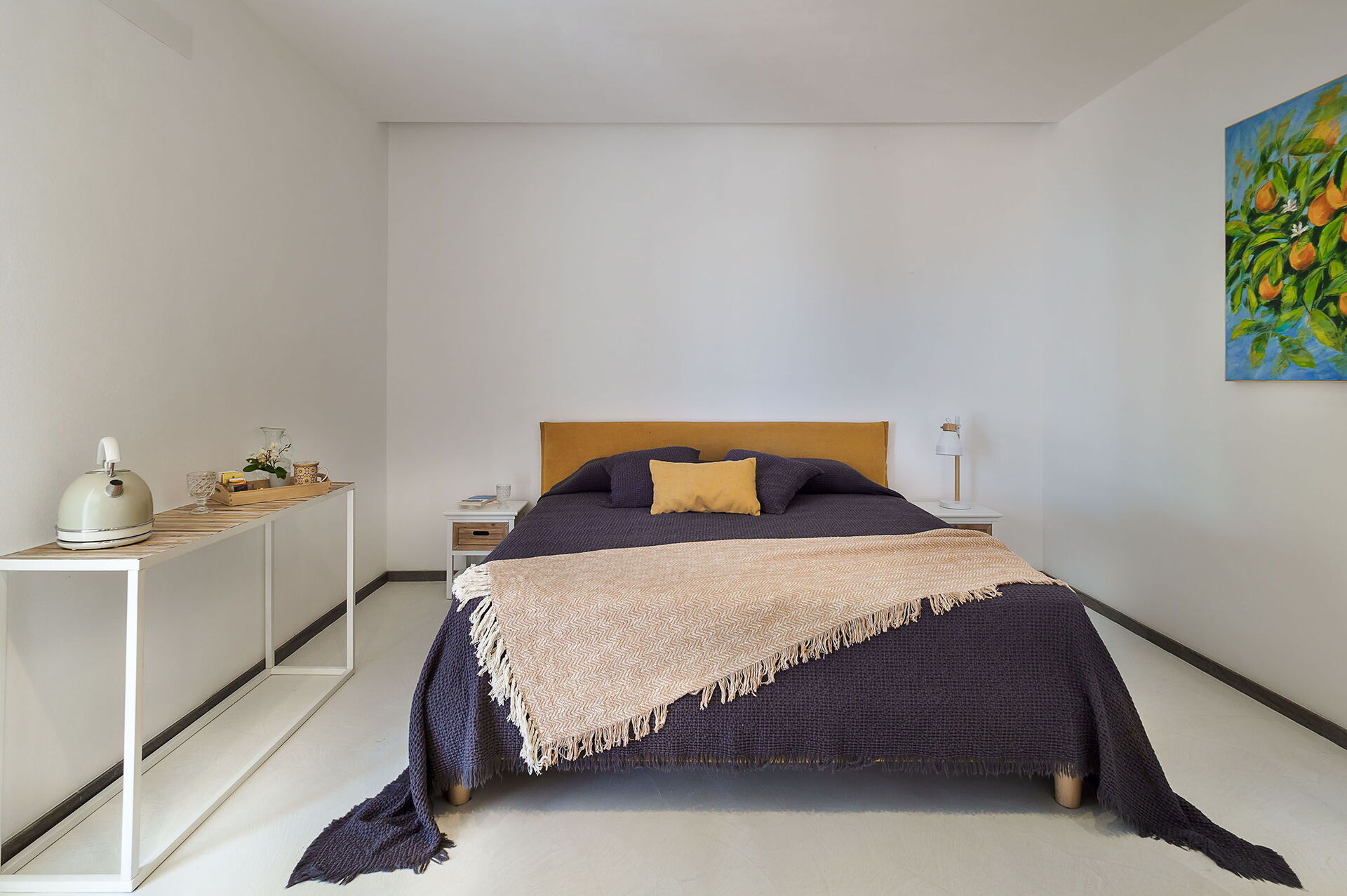 Camera da letto con bagno 1: letto king size, internet WIFI, internet, aria condizionata, poltrona, lavandino, wc, bidet, doccia, asciugacapelli, uscita sulla terrazza.