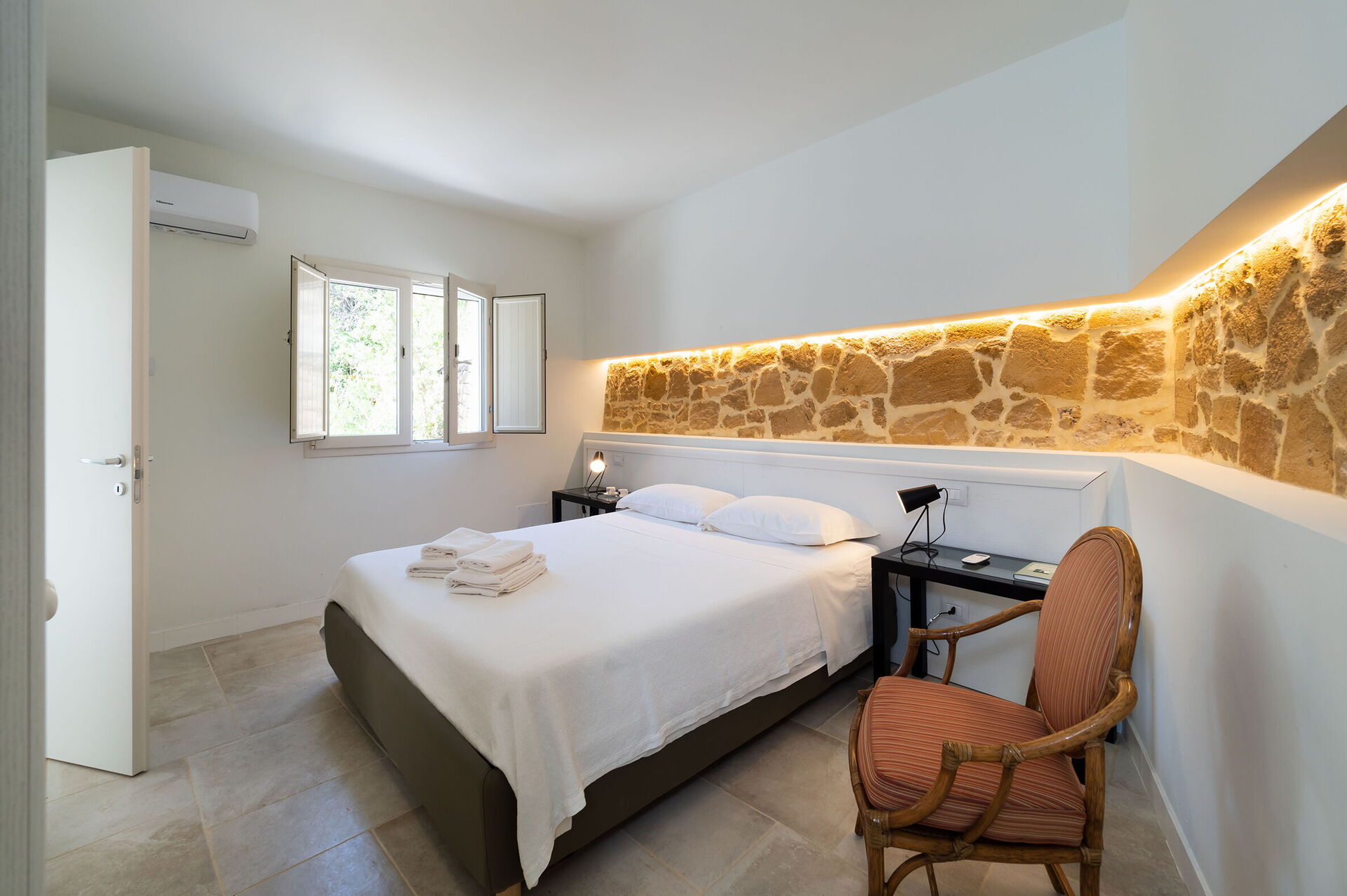 Camera da letto: letto matrimoniale, culla, internet WIFI, internet, aria condizionata, zanzariere, poltrona.