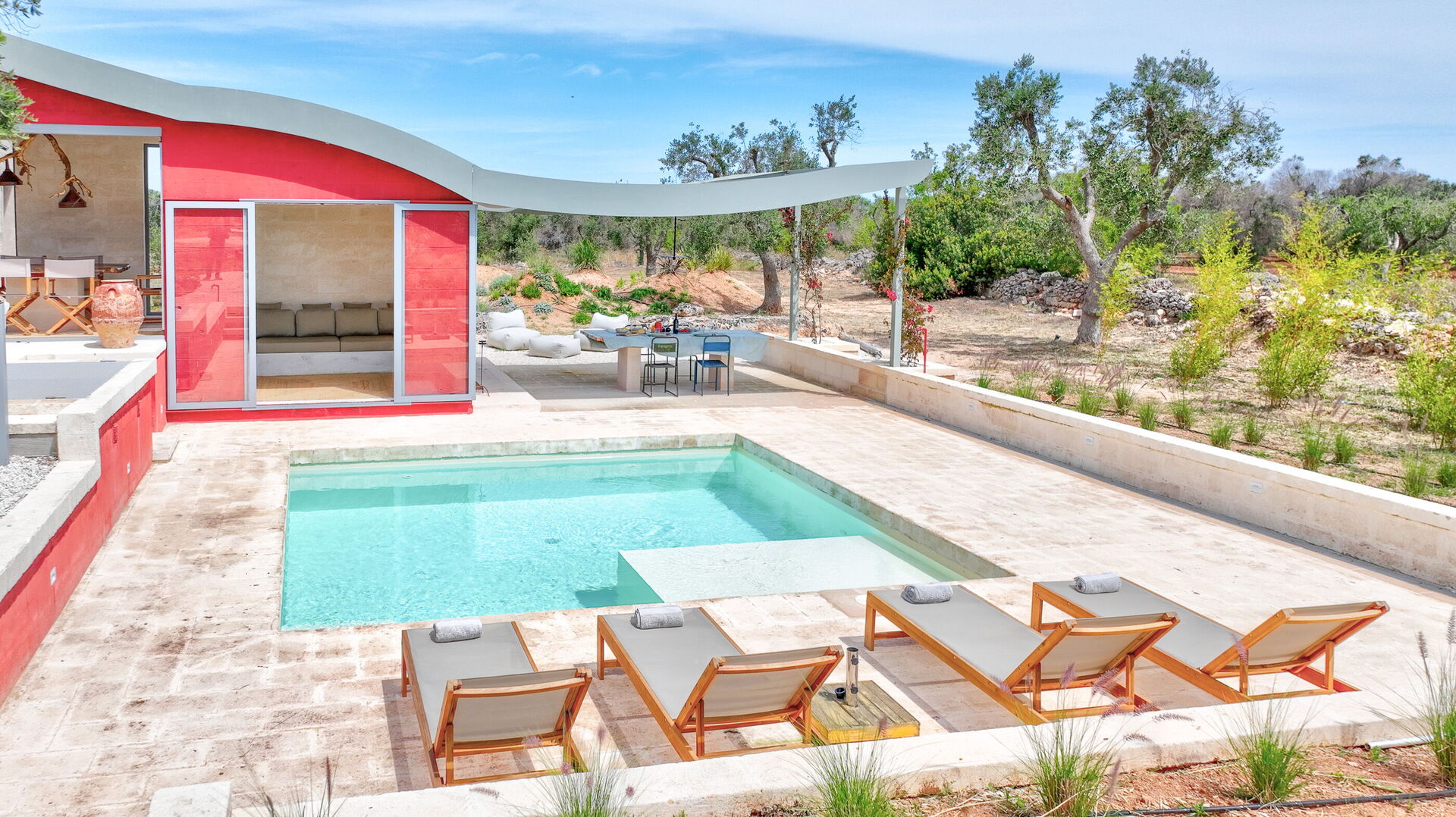 Giardino: arredamento da giardino, internet WIFI, piscina, possibilità di mangiare all'aperto, proprietà recintata, tavolo da pranzo.