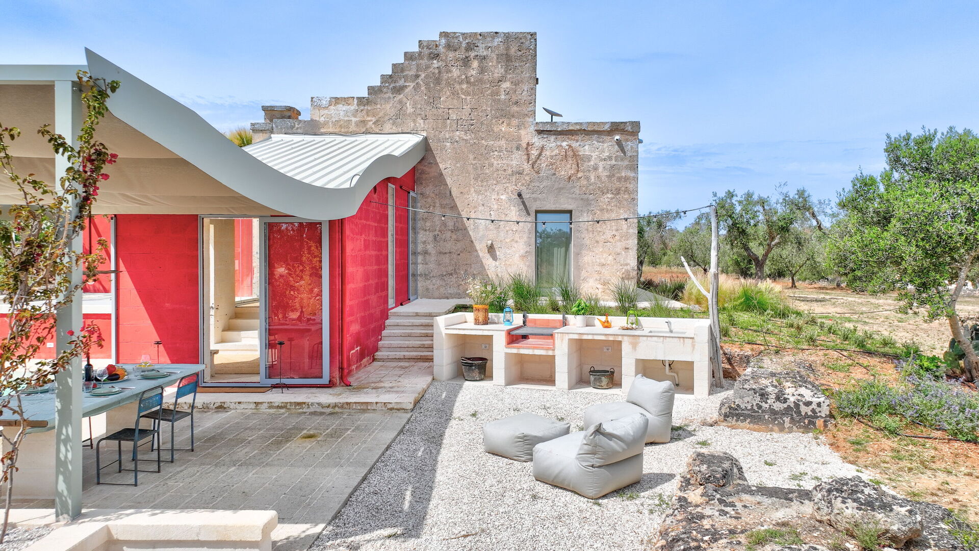 Con la capacità di ospitare fino a 4 persone, Lamia del Grano dispone di due camere matrimoniali, entrambe dotate di bagni completi. Gli interni della villa sono caratterizzati da un'eleganza raffinata che si fonde armoniosamente con l'atmosfera rustica della Puglia.