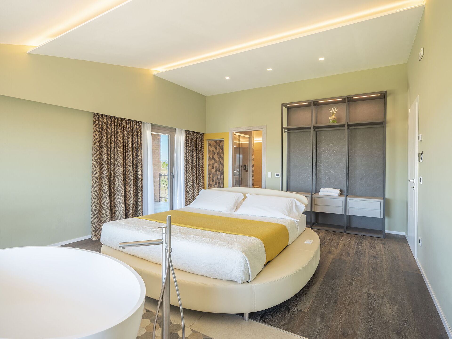 1 camera matrimoniale con vasca in stanza e bagno privato con doccia, accesso a terrazza privata