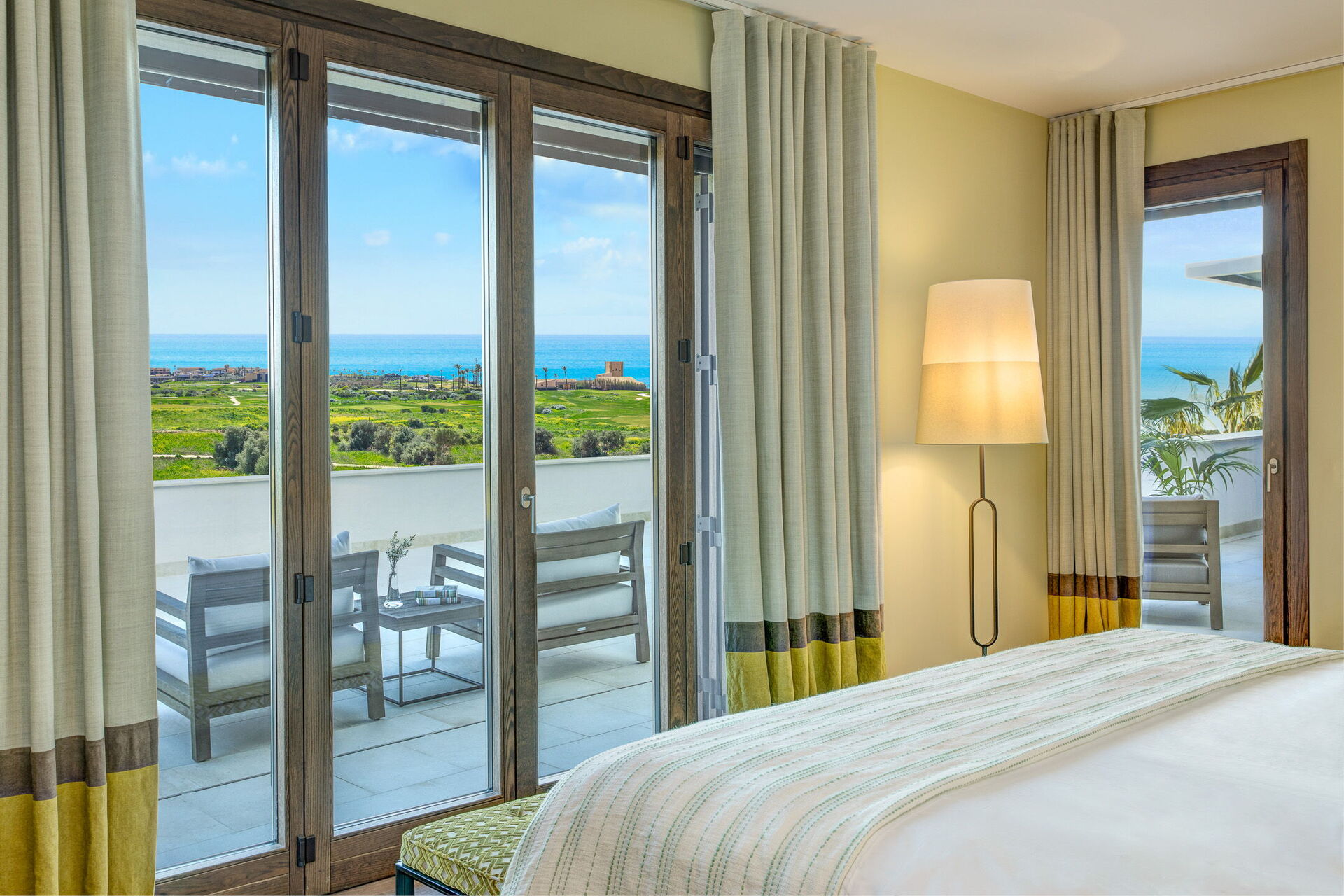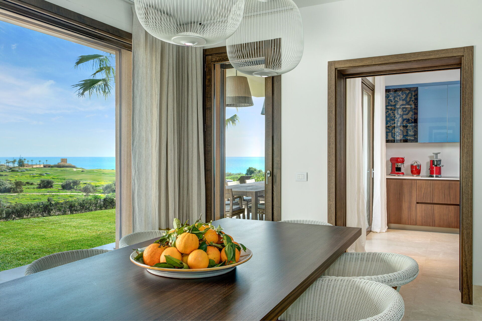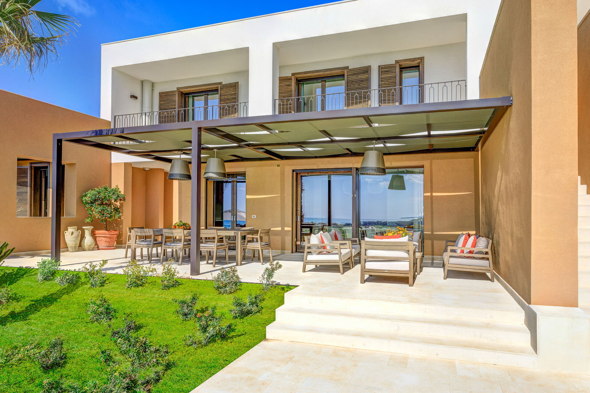 Con tre camere da letto con bagno privato al primo piano e la quarta camera da letto situata in una dependance esterna, ogni camera è dotata di un letto king-size e di una terrazza privata che offre splendide viste sui verdeggianti campi da golf e sul Mar Mediterraneo. Svegliati con la dolce carezza del sole siciliano e goditi il tuo caffè mattutino mentre ammiri uno scenario mozzafiato.