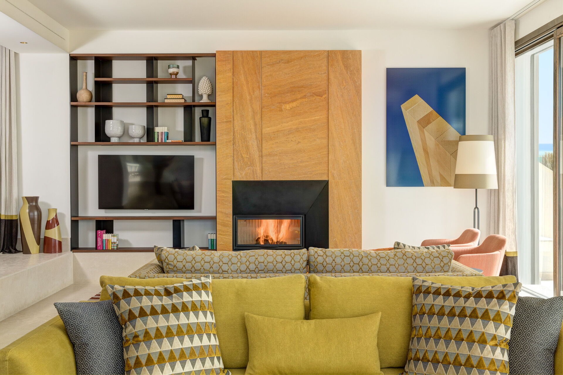 Soggiorno: aria condizionata, caminetto, divano (persone: 2), internet WIFI, 3 poltrone, televisione, uscita sul giardino, uscita sul patio, uscita sulla terrazza.