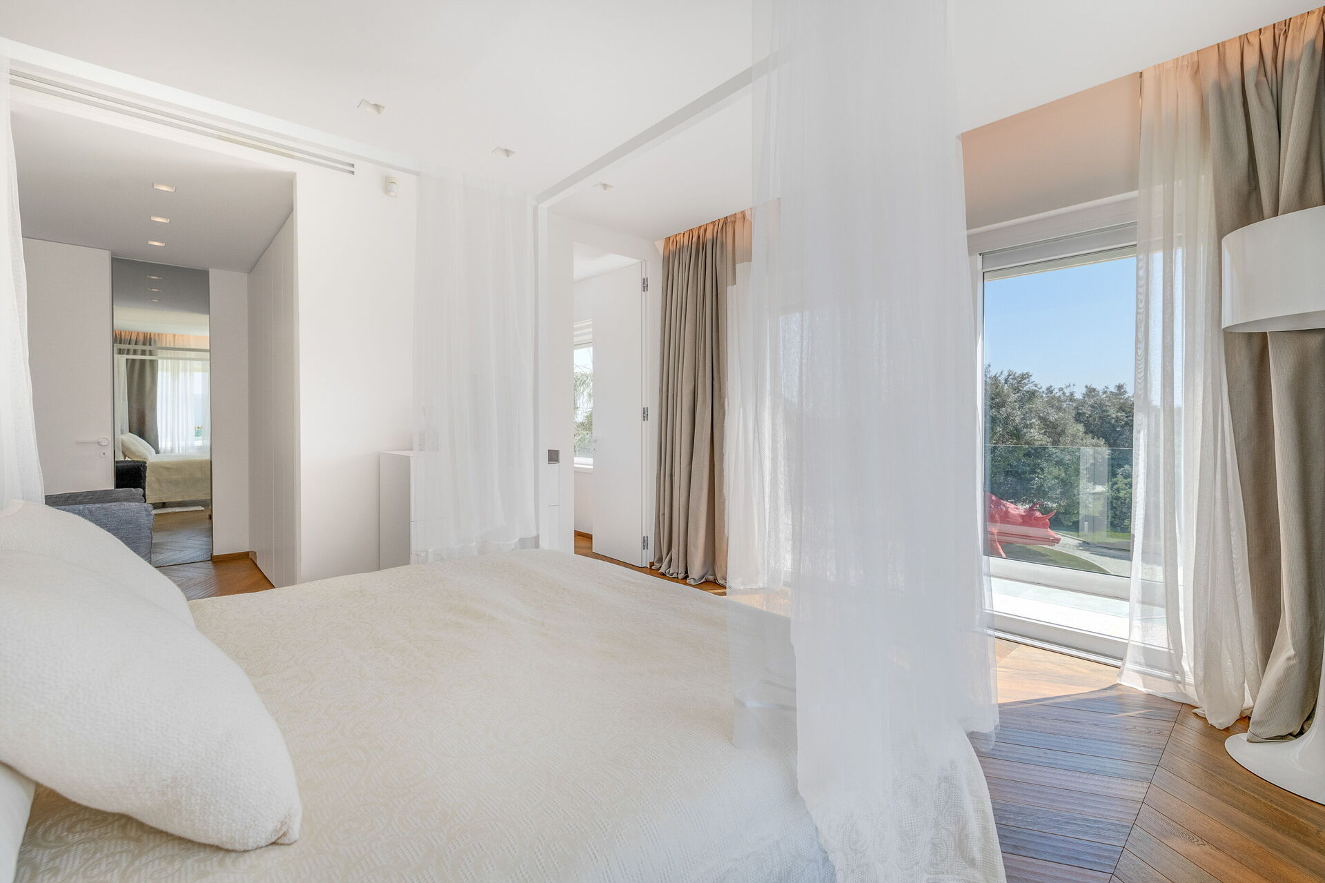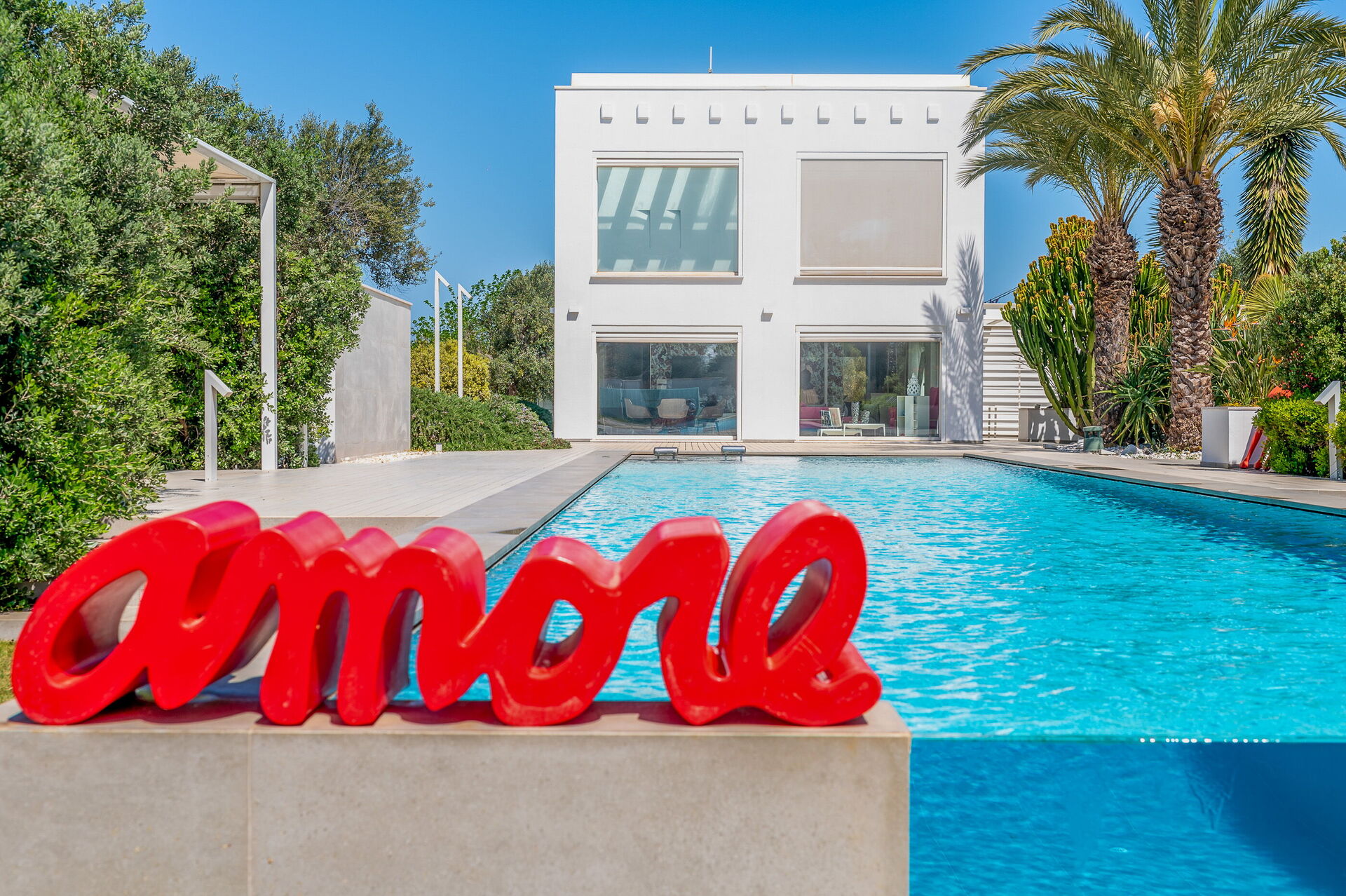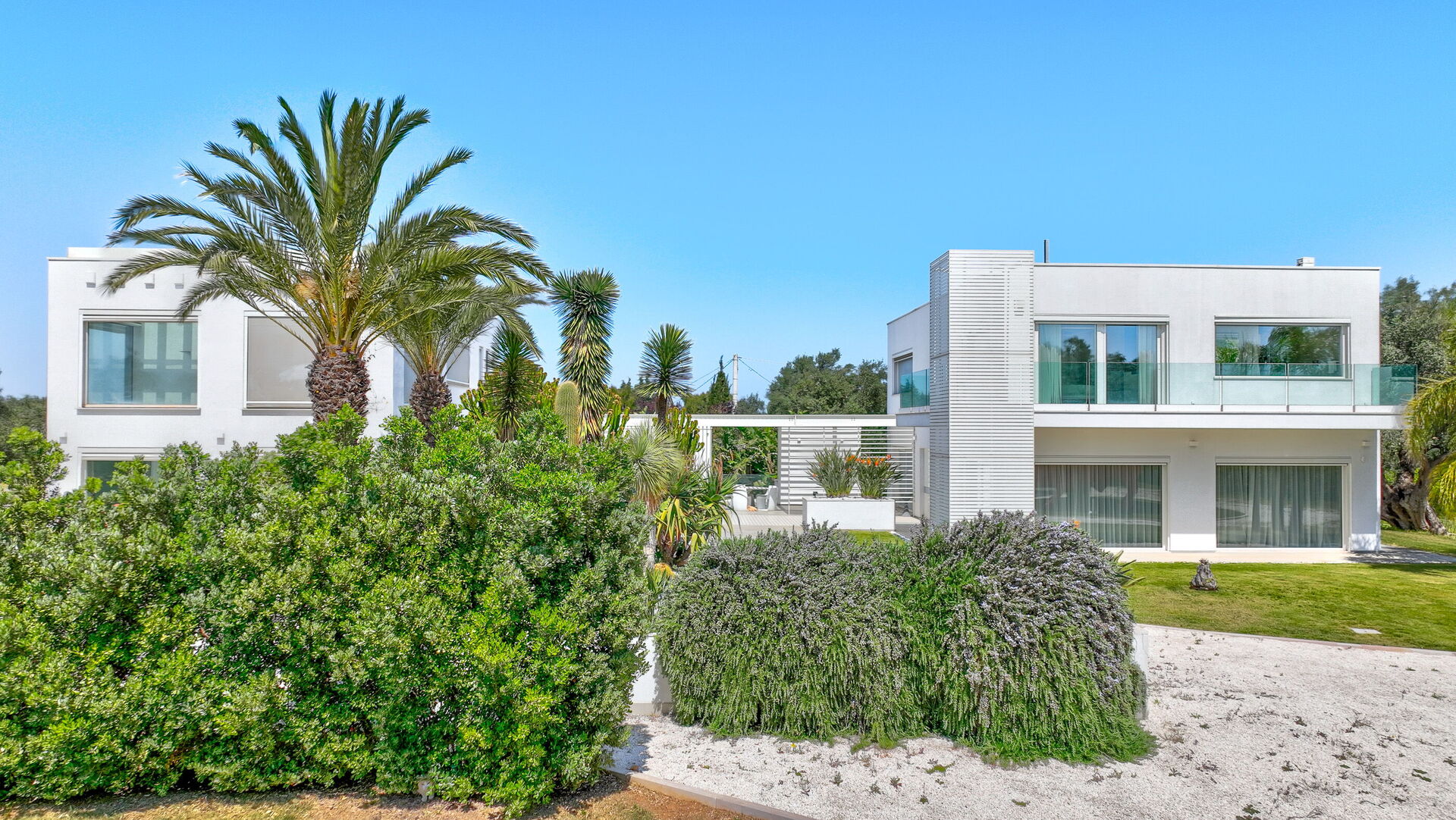 La villa principale, distribuita su due piani, presenta una zona giorno al piano terra e due sontuose suite al piano superiore, mentre la seconda struttura dispone di una suite avvolgente su due livelli.
