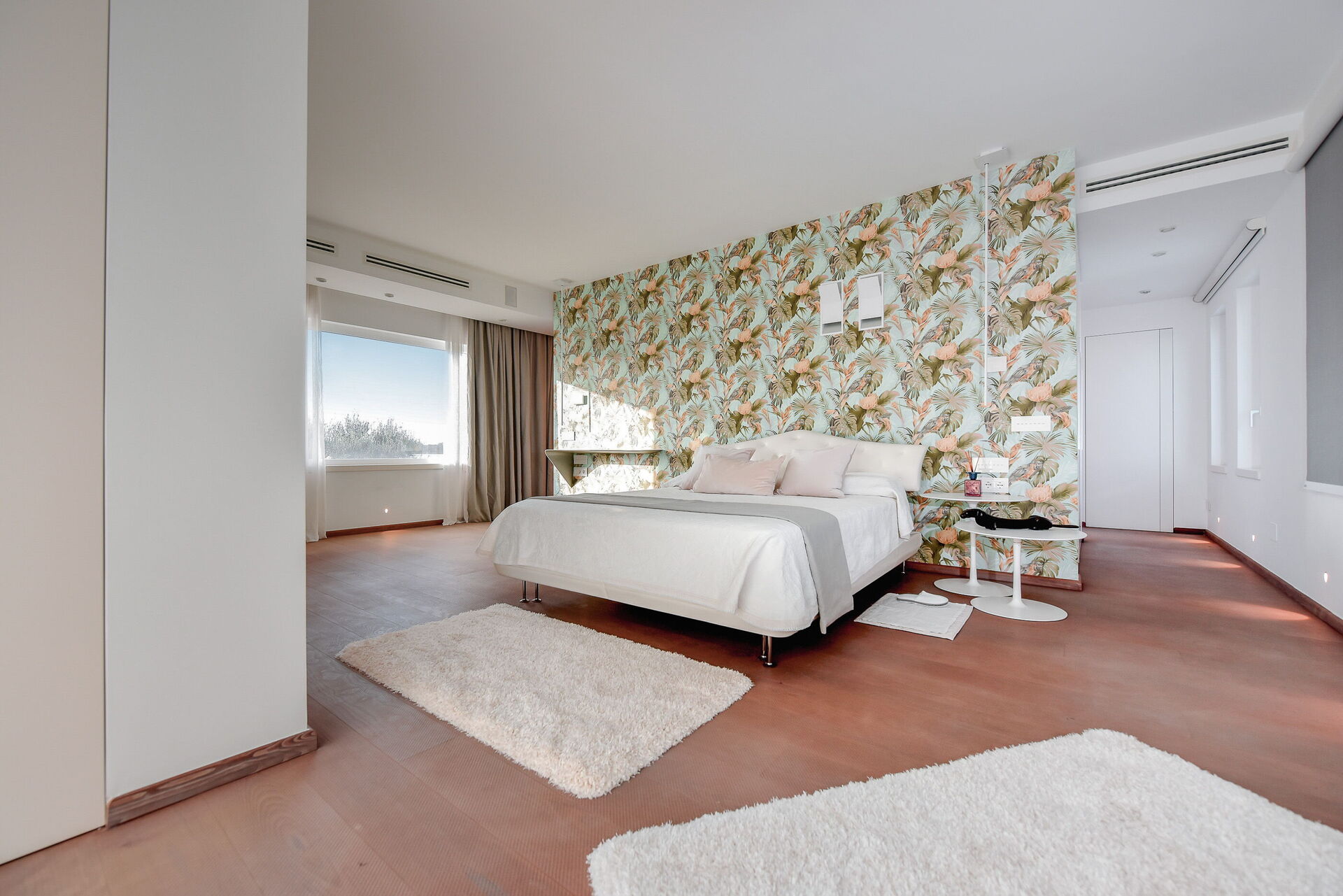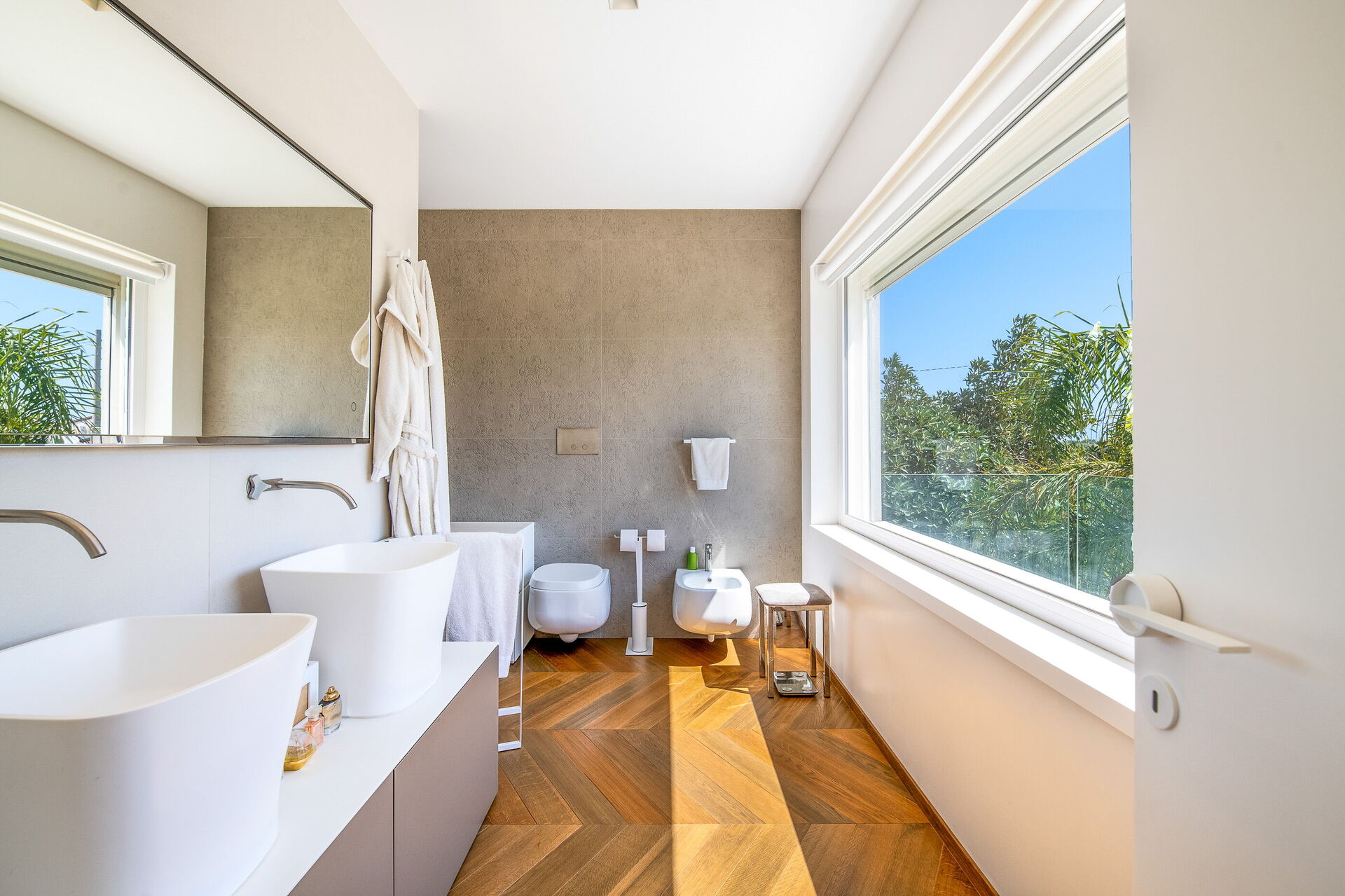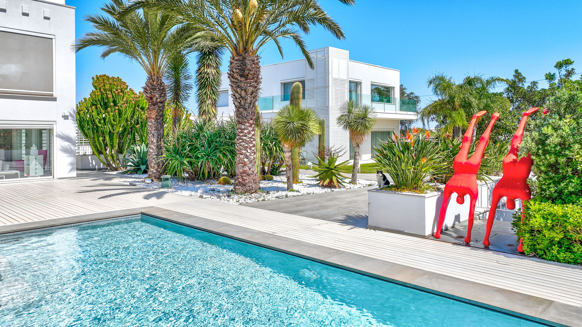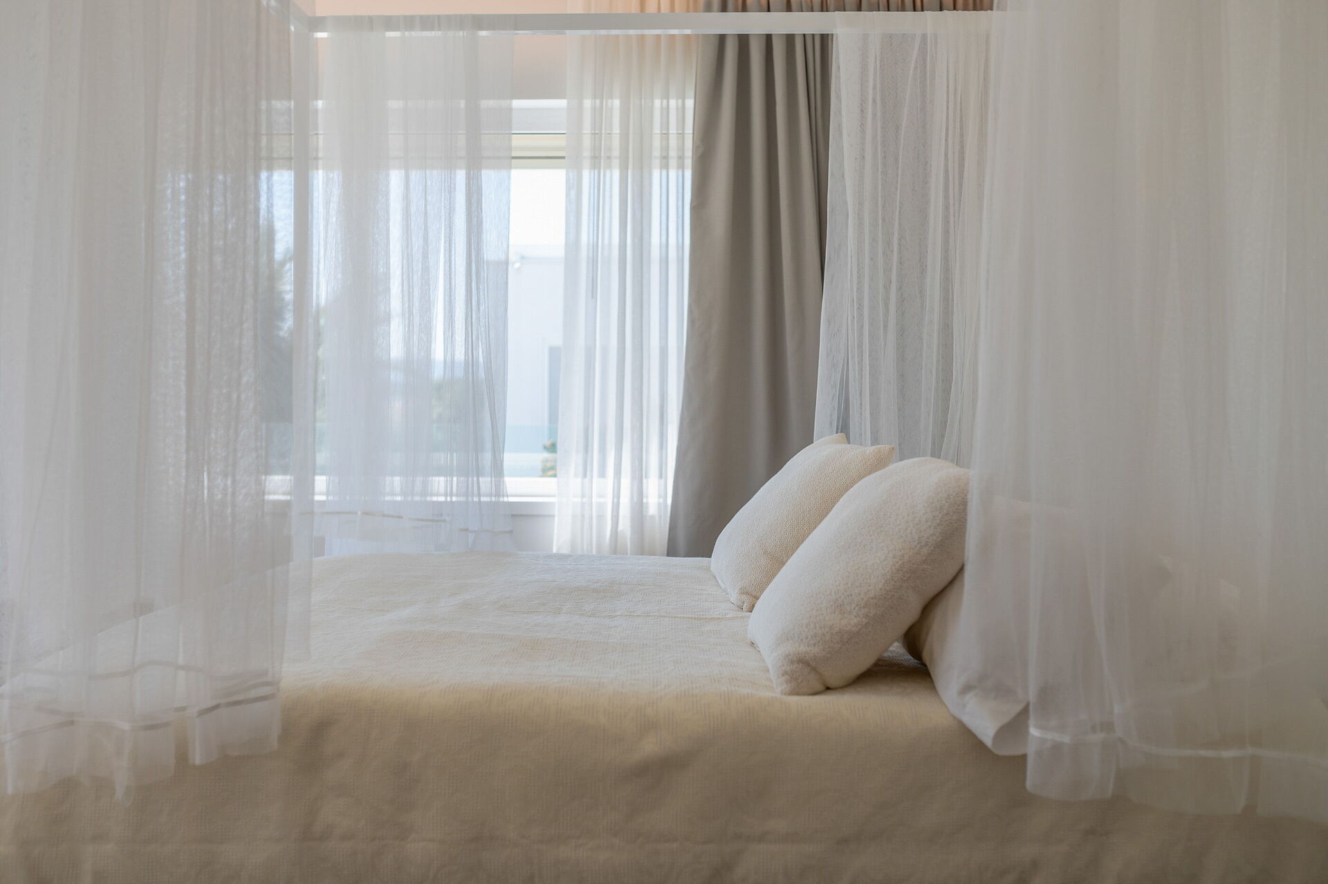 La villa principale, distribuita su due piani, presenta una zona giorno al piano terra e due sontuose suite al piano superiore, mentre la seconda struttura dispone di una suite avvolgente su due livelli.