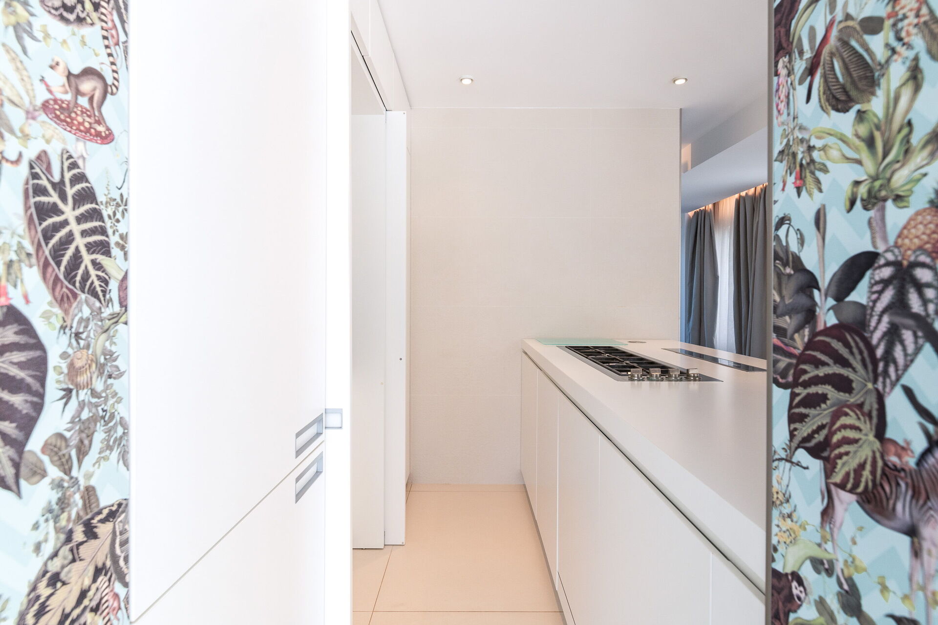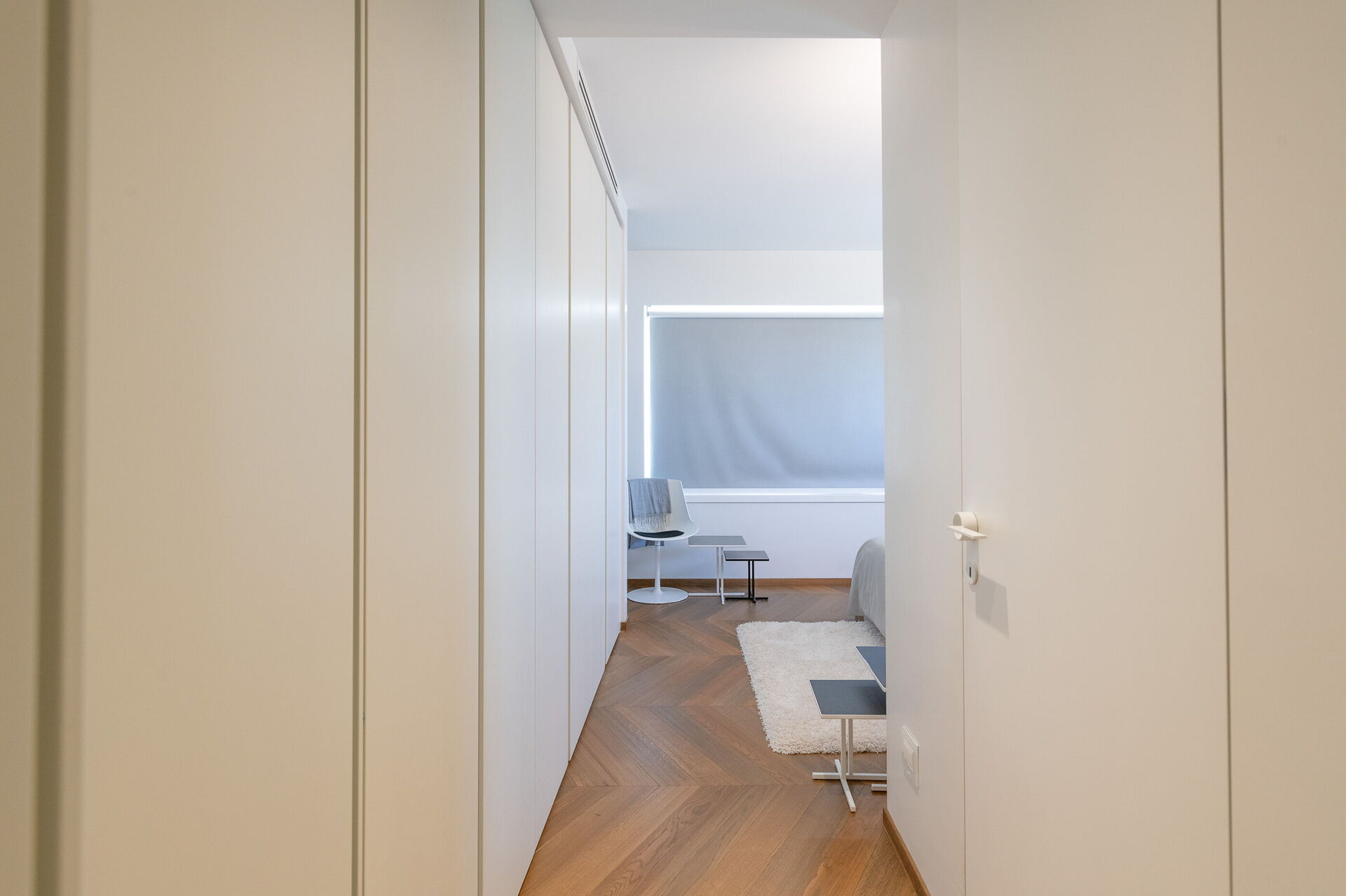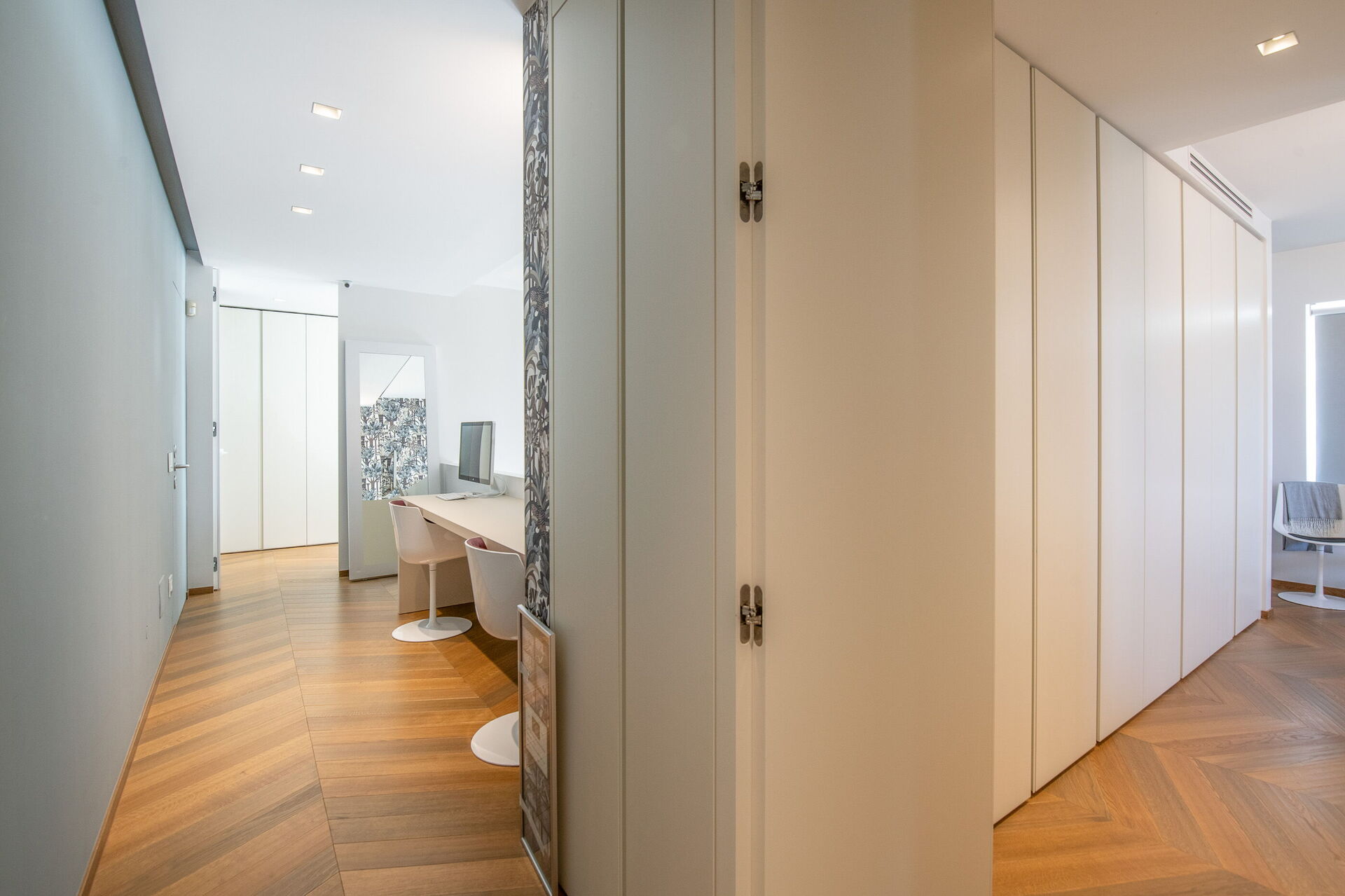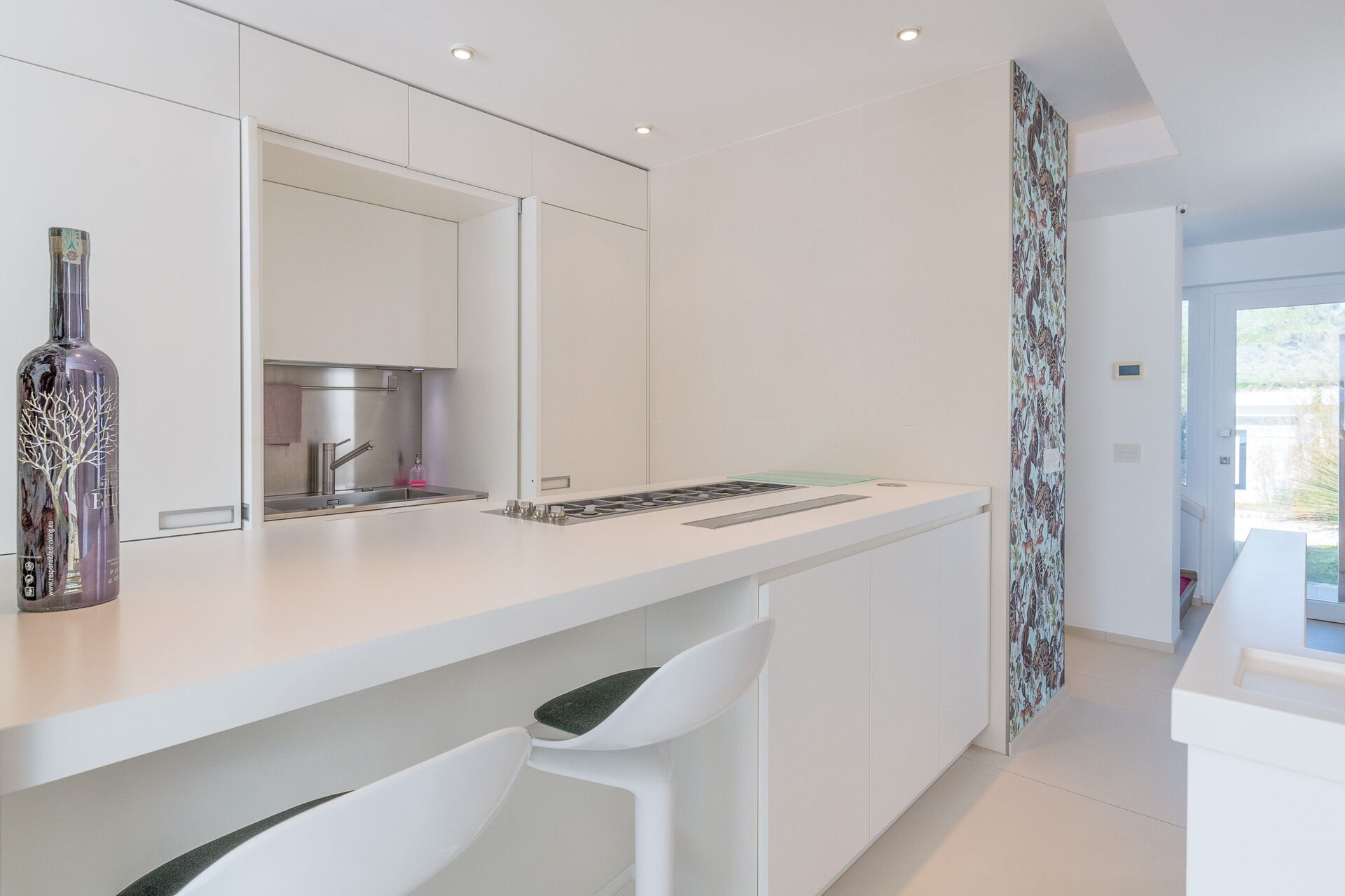Con una superficie totale di 500 mq, la residenza è composta da due corpi distinti, con ampie vetrate che integrano armoniosamente gli spazi interni ed esterni.