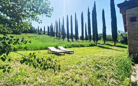 Podere Vetricella offre un'area patio coperta, un giardino, mobili da terrazza, sdraio, un balcone coperto e un ripostiglio per la tua comodità. Ammira gli splendidi panorami della campagna da questa villa. Altre strutture fornite sono un'asciugatrice, un ferro da stiro, zanzariere, seggiolone per bambini, culla per bambini fino a 2 anni, asciugacapelli e legna da ardere (con supplemento). Sono inclusi l'accesso gratuito a Internet Wi-Fi e un parcheggio riservato presso la casa. Si prega di notare che questa è una proprietà non fumatori con un ingresso privato. Mentre la descrizione menziona una piscina, è per uso privato di passaggio.