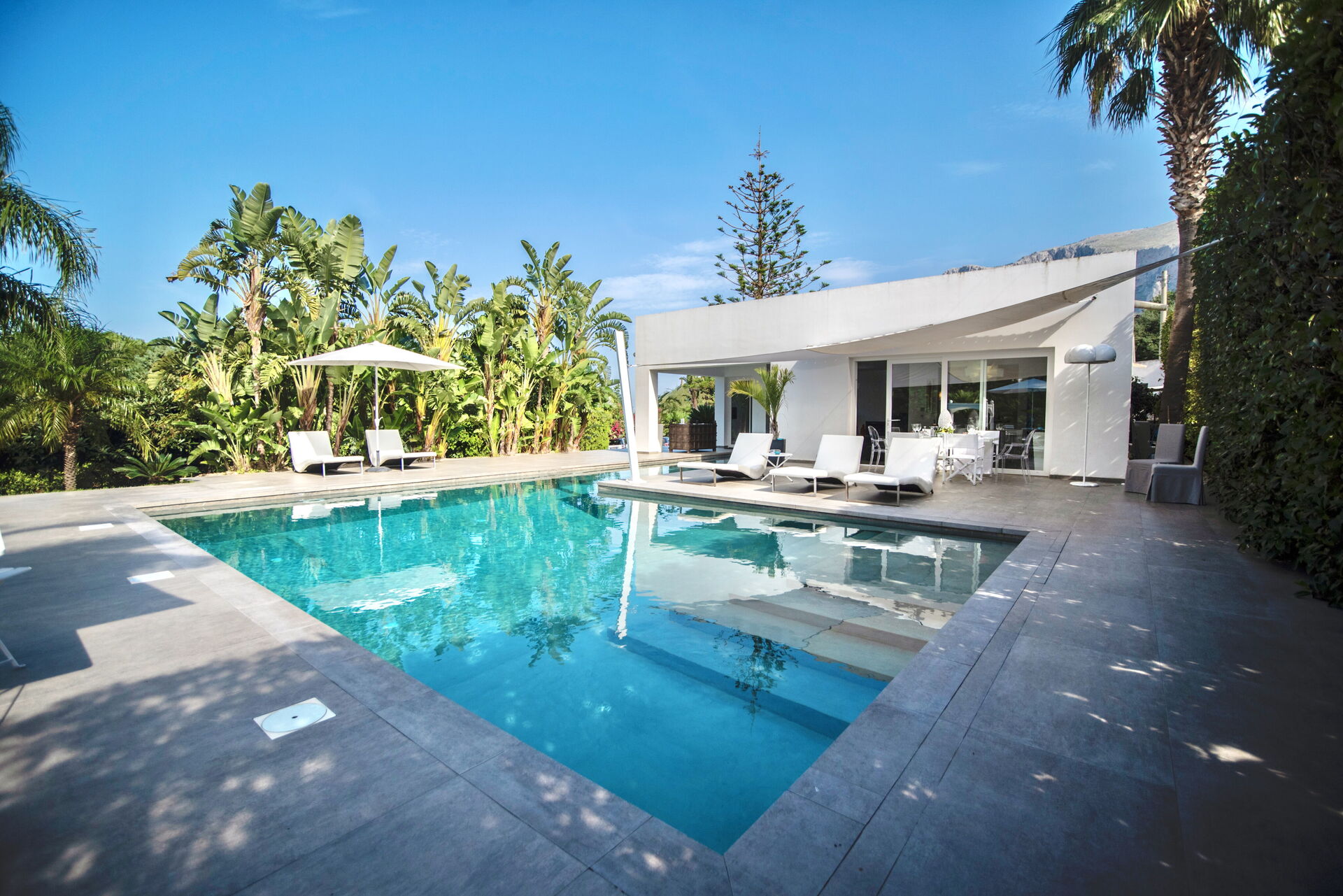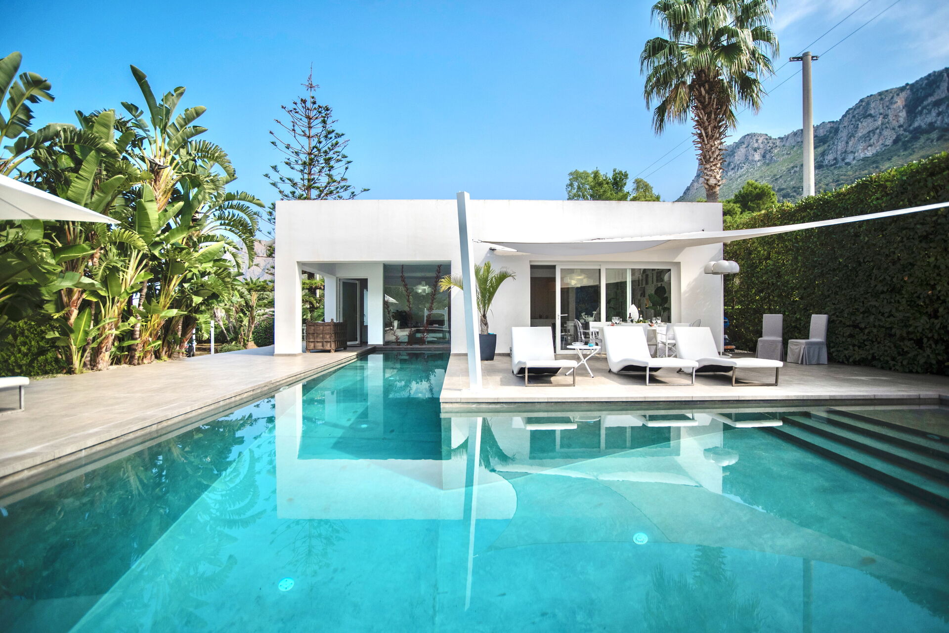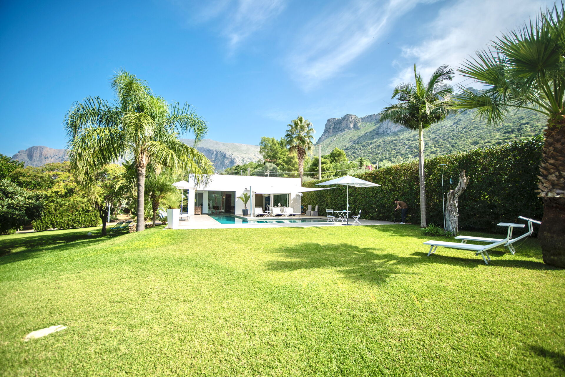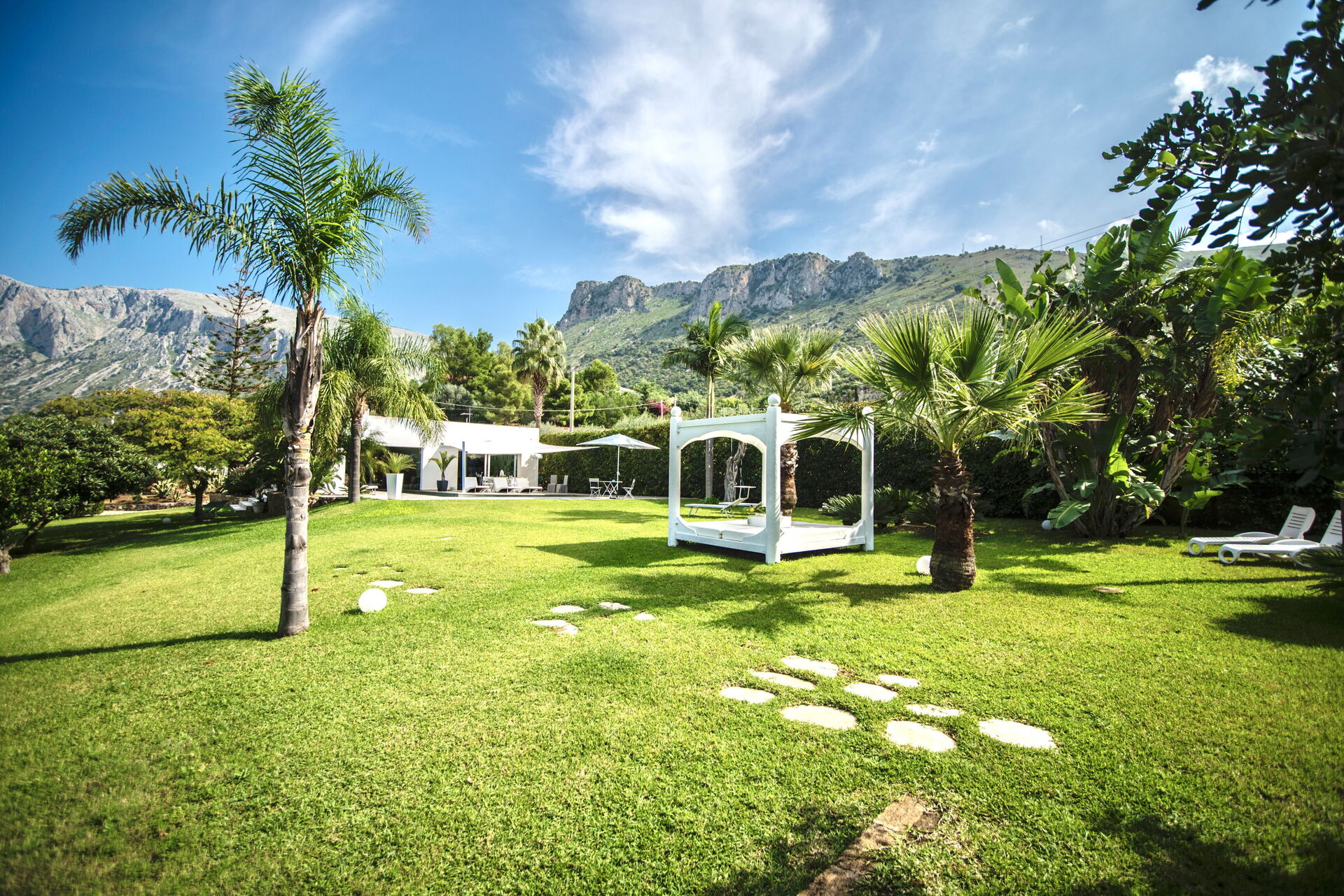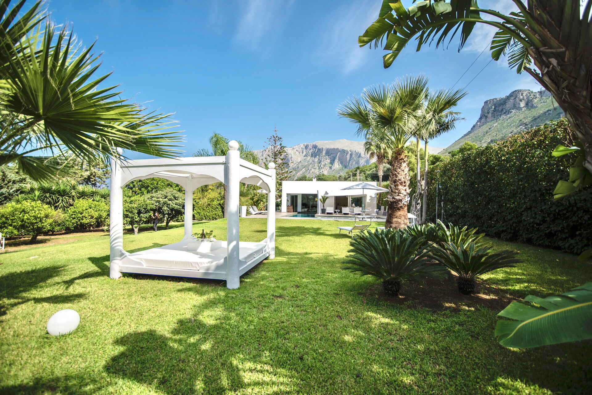 del giardino che la circonda, mentre il bianco candido della struttura colpisce