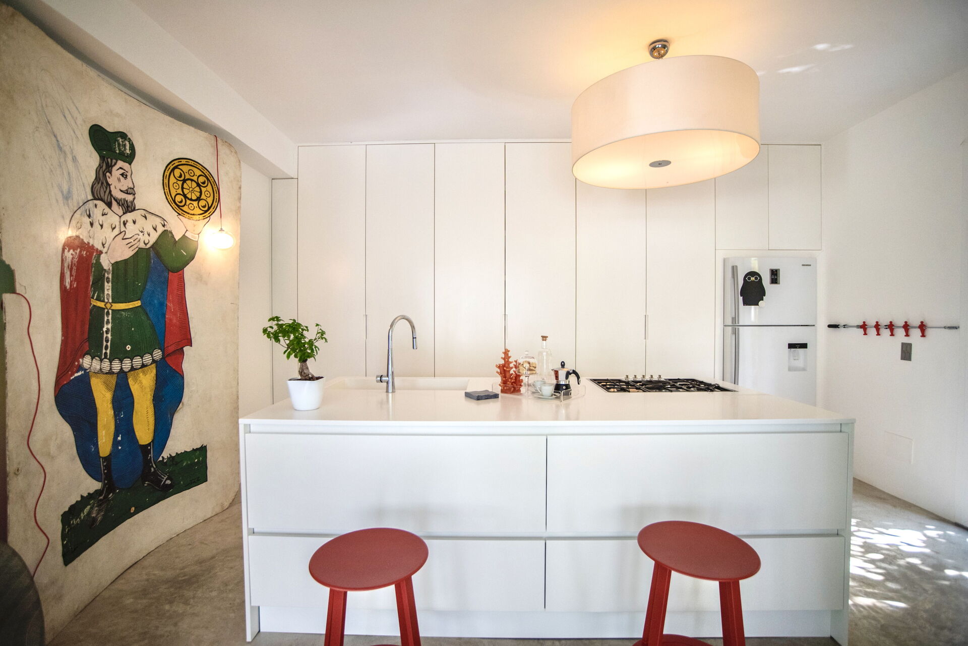 Una casa che è innanzitutto una precisa dichiarazione estetica, giocata sul genius loci e che, sul lato più intimo, rivela la forte coesione e il carattere dei proprietari che l’hanno pensata. Un’esplosione di colori, di luce e bagliori e di intensi profumi divampa non appena la si vive, dando la sensazione di sentirsi a casa.