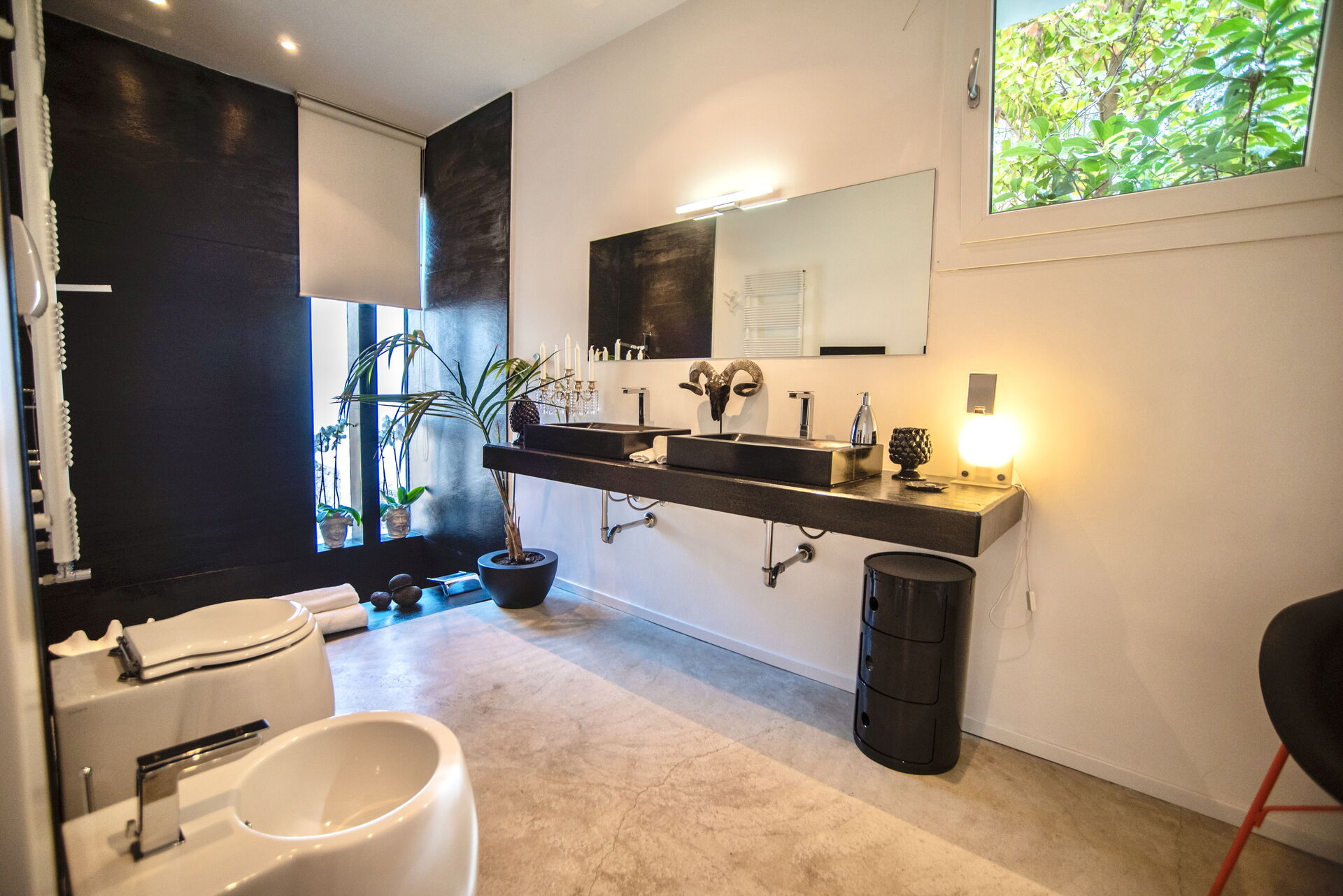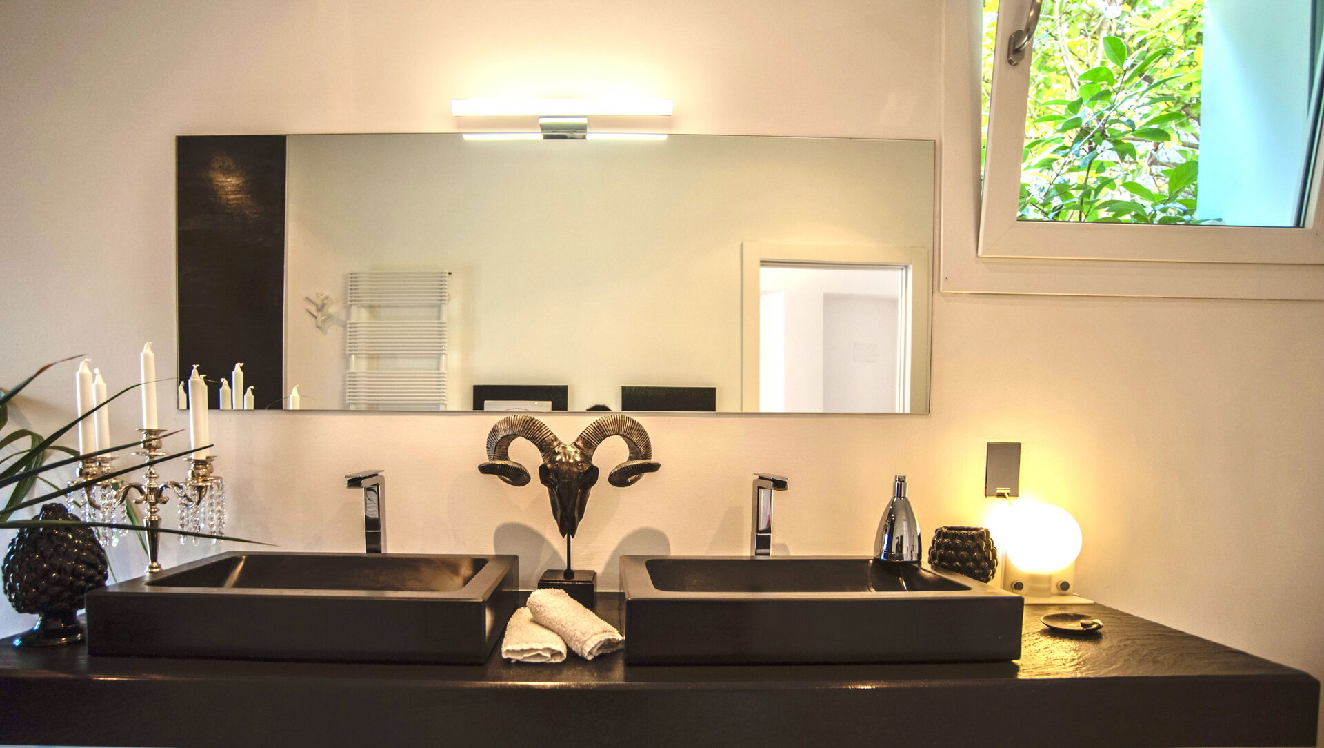 Lo stile elegante si evince anche nei dettagli, nei pezzi d’arte disposti con cura per