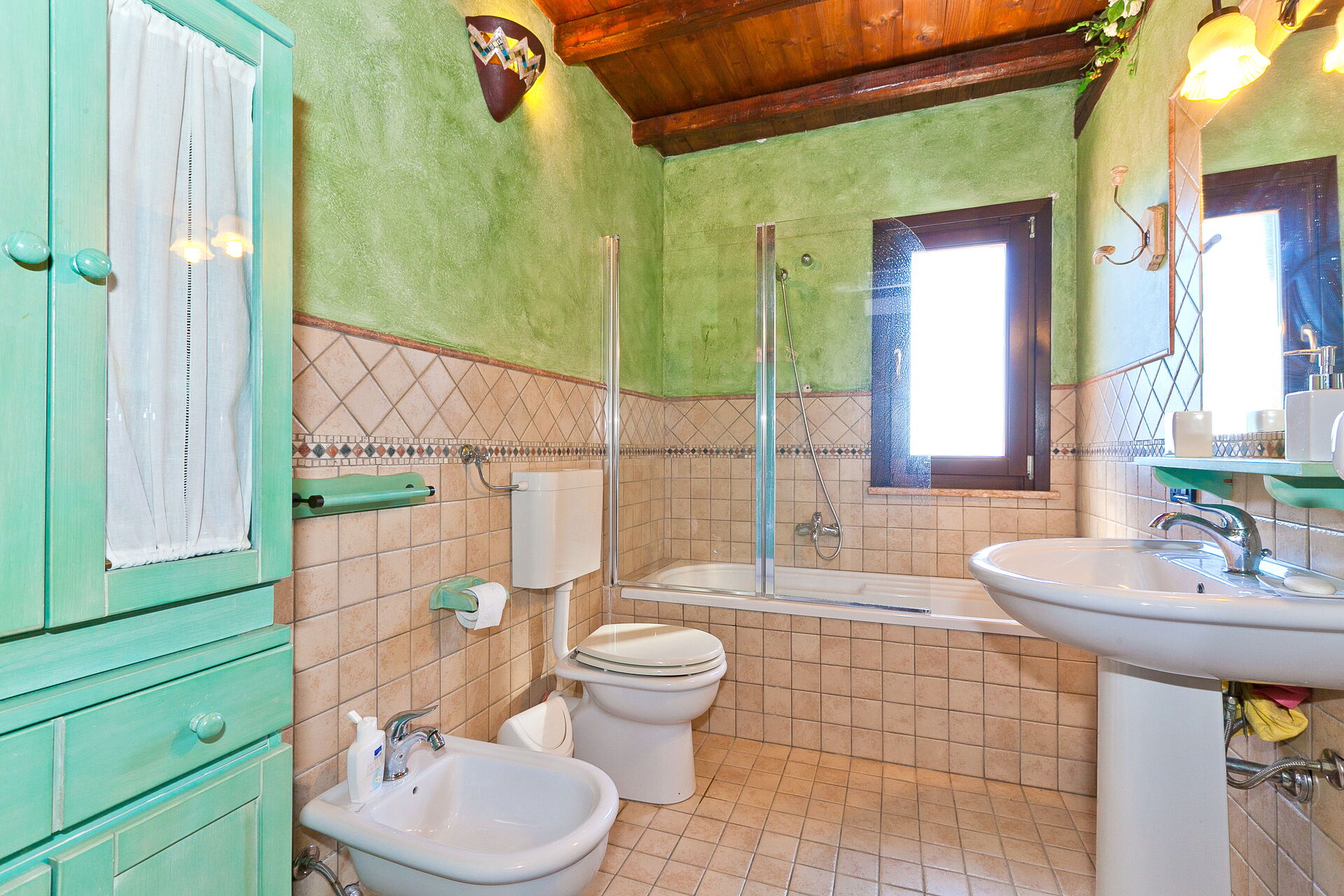 Bagno: lavandino, wc, bidet, vasca da bagno.