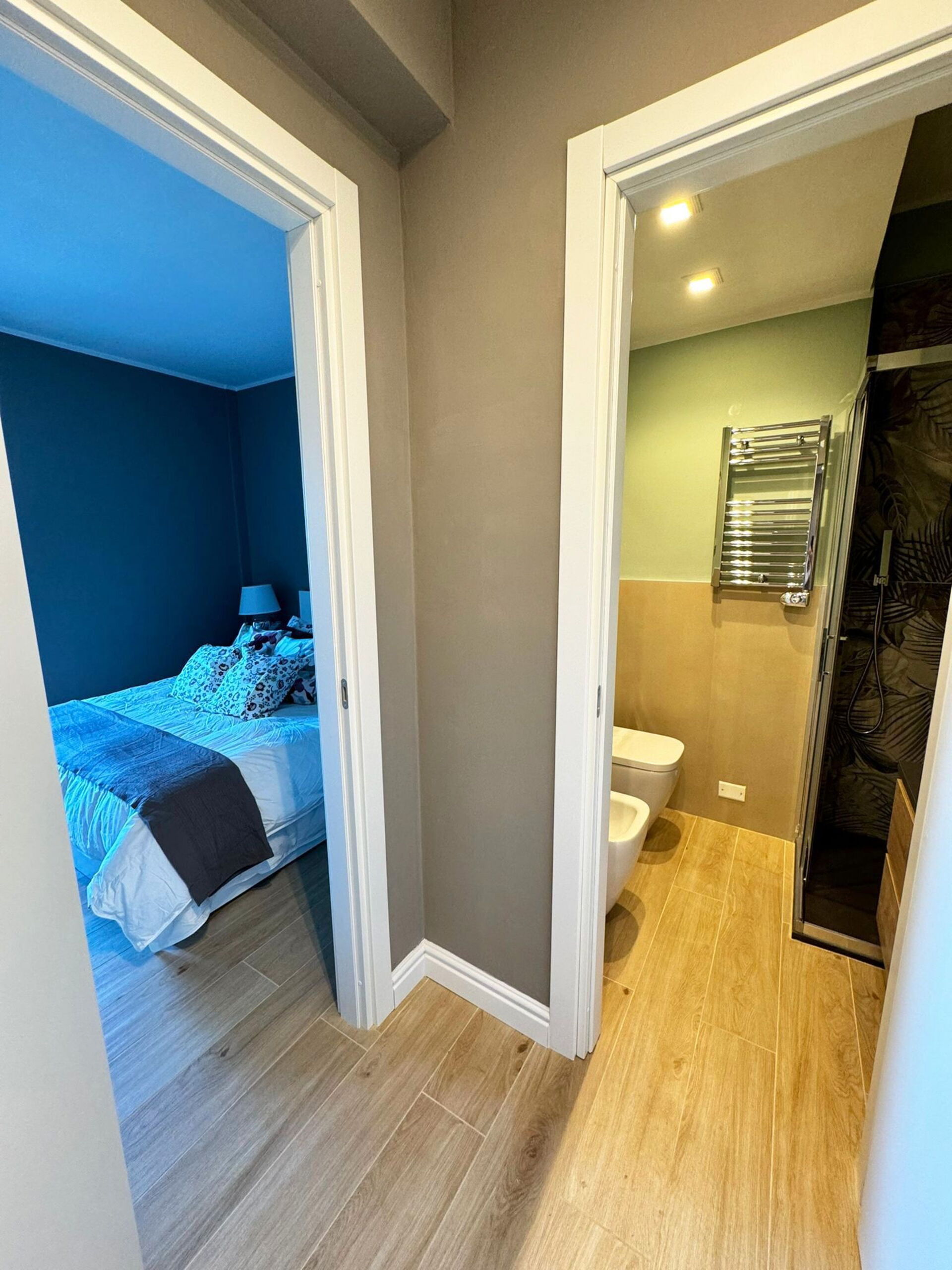 Camera da letto con bagno: letto matrimoniale, internet WIFI, aria condizionata, tv satellitare, lavandino, wc, bidet, asciugacapelli, uscita sul balcone.