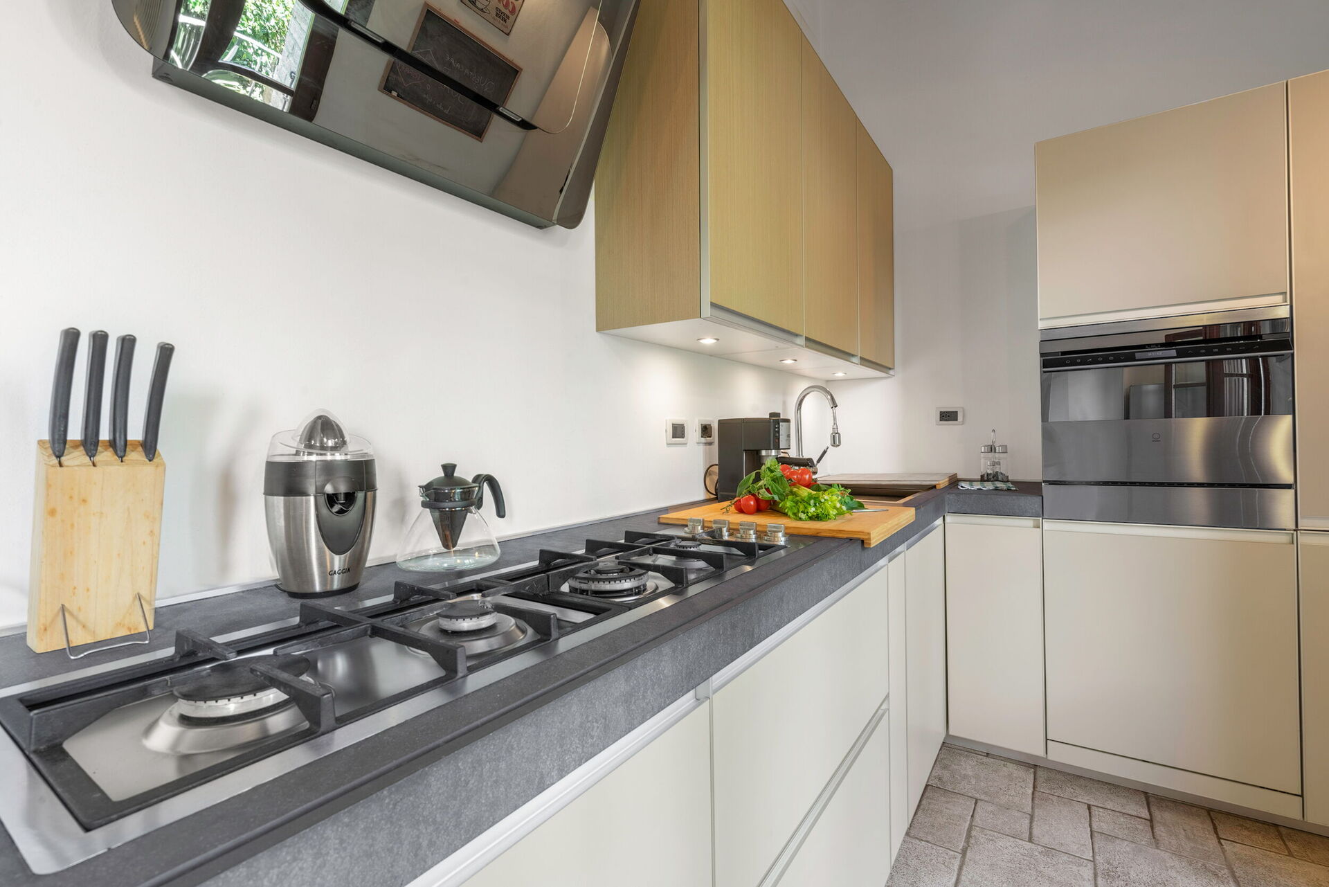 Cucina: cucina ben attrezzata, lavastoviglie, frigo, freezer, piano cottura, forno, ferro da stiro, macchina da caffè (italiana), internet WIFI, seggiolone, rilevatore di fumo, uscita sul giardino.