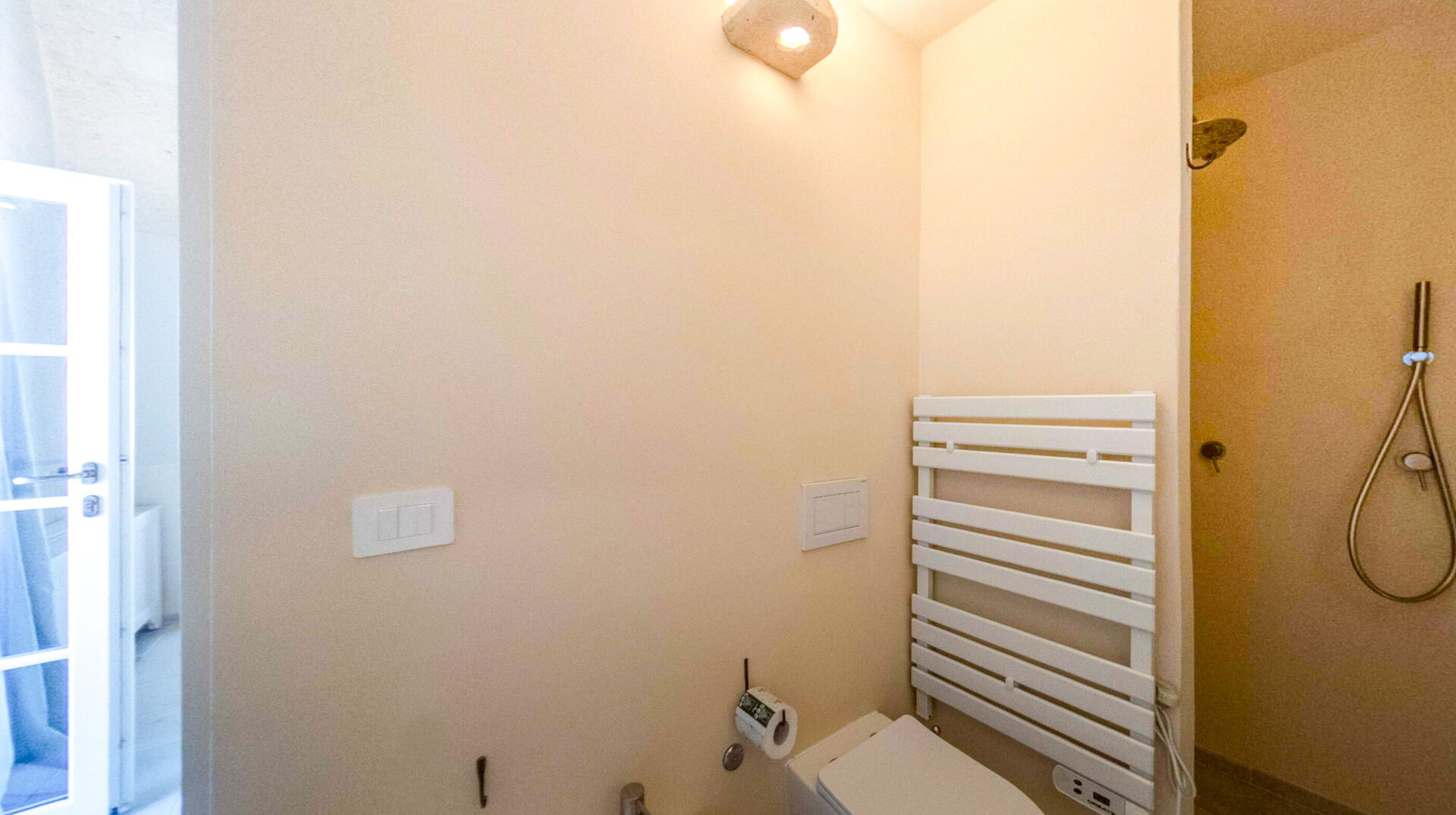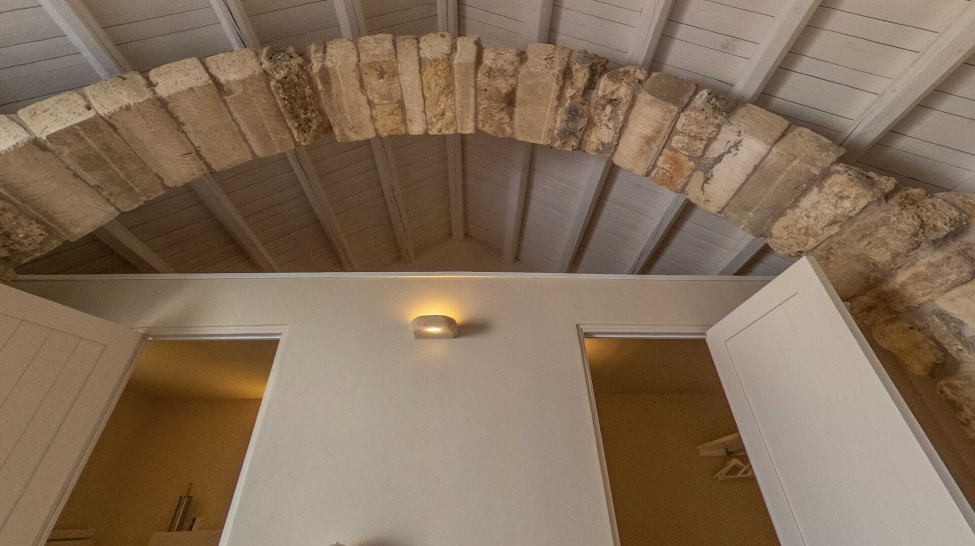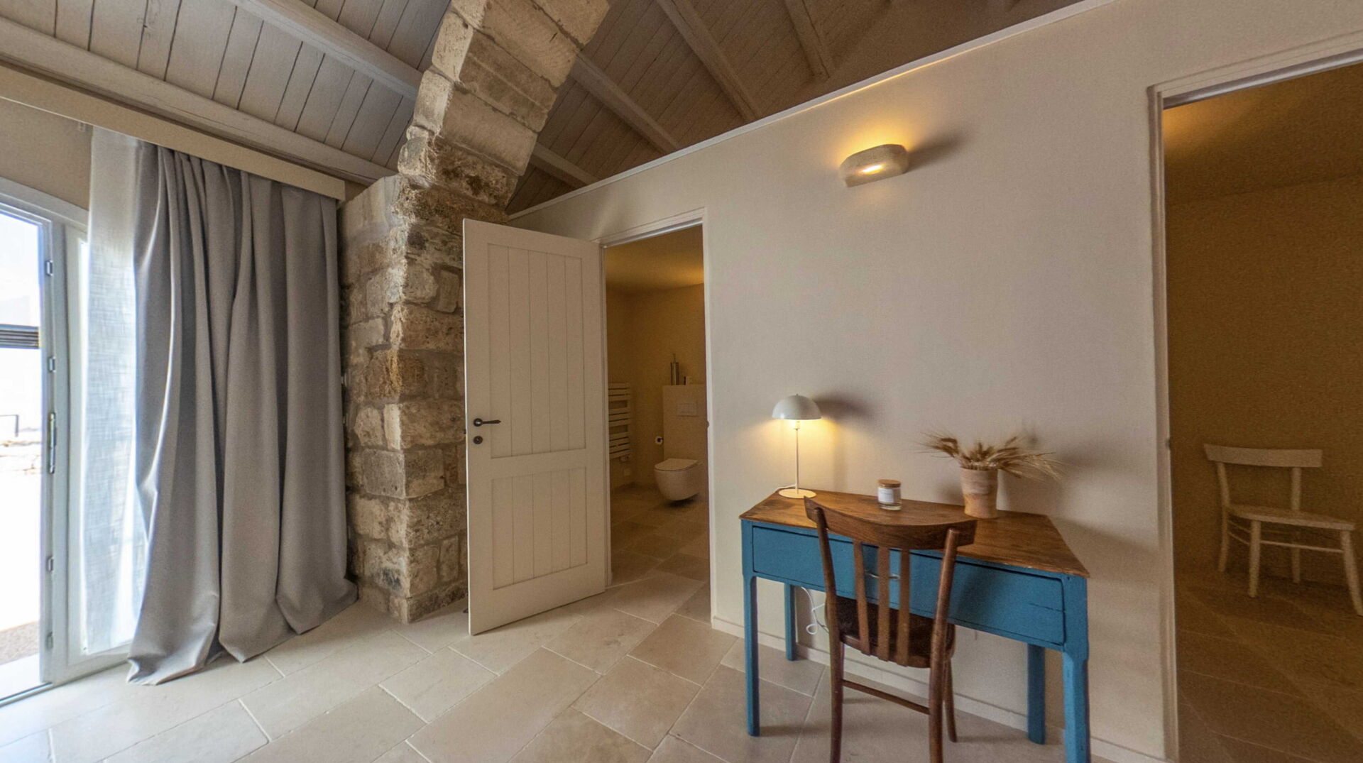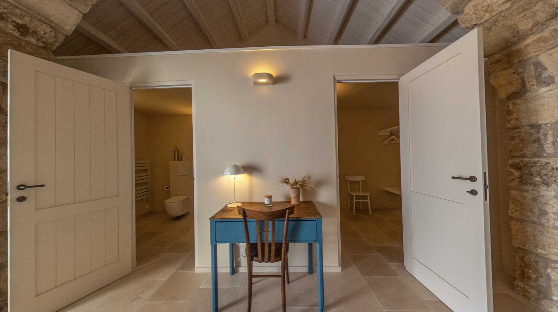 Gli arredi e i complementi sono stati realizzati su misura da artigiani locali, come fabbri e falegnami, per rispettare le forme irregolari delle pareti antiche e per garantire un’armonia estetica e funzionale. L'uso di materiali come l'ottone per i rubinetti, che invecchia naturalmente, aggiunge un fascino ulteriore agli ambienti, rievocando il passato con un tocco di modernità.