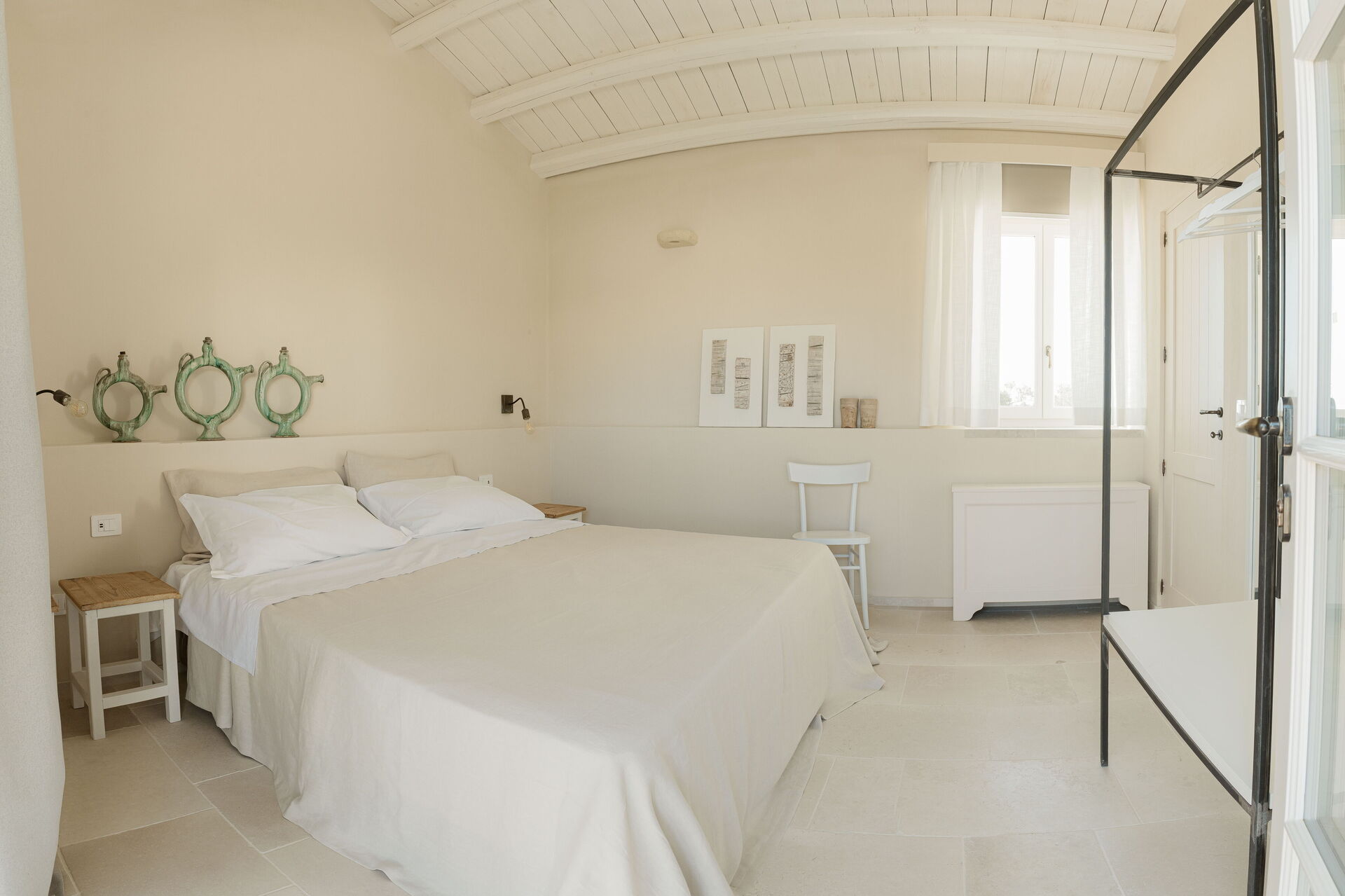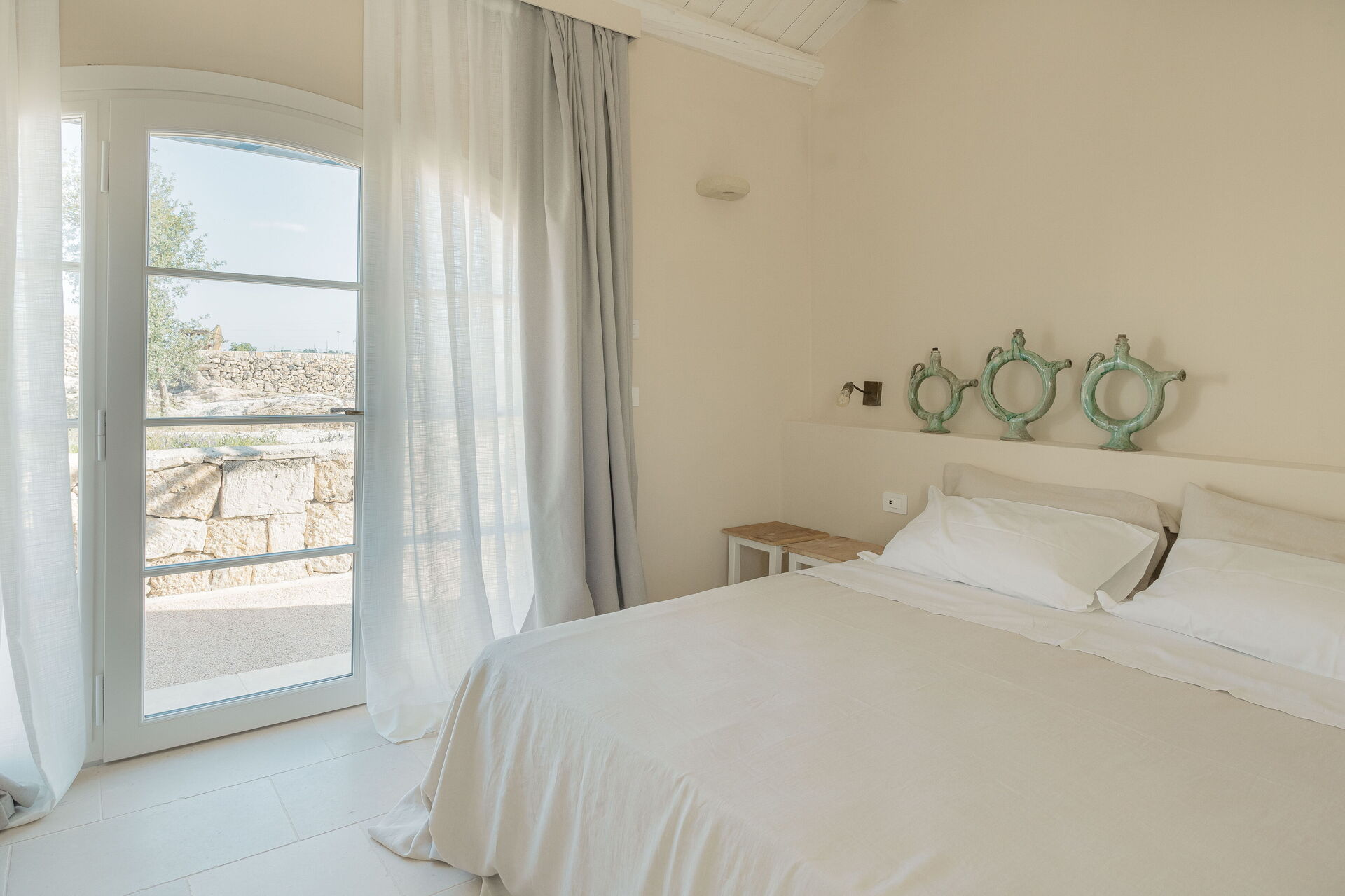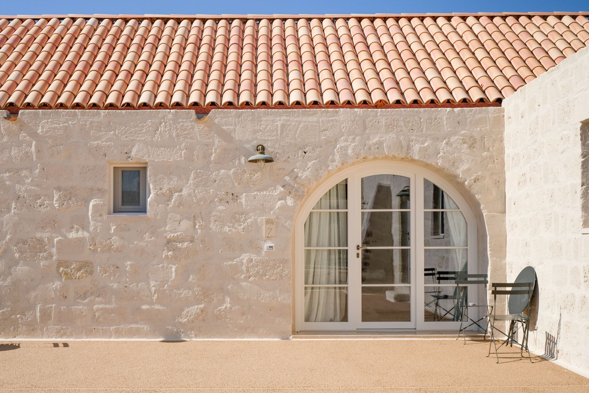 Ogni intervento nella Masseria Vaccaro è stato eseguito con la massima attenzione alla conservazione dell'atmosfera originaria, utilizzando materiali locali come pietra, ferro e legno, scelti per la loro sostenibilità e per la loro capacità di dialogare con l'ambiente circostante. Il restauro ha seguito principi rigorosi, con un’attenzione particolare ai dettagli, come la posizione delle finestre e l'uso di intonaci e pigmenti naturali, rispettando la storia e la bellezza intrinseca dell'edificio.