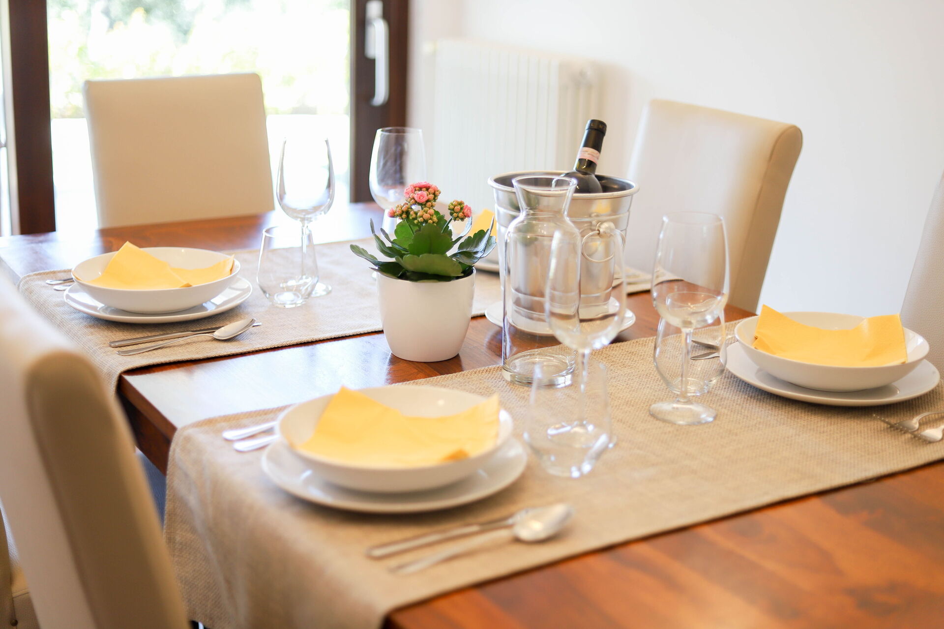 Sala da pranzo: tavolo da pranzo, aria condizionata, internet WIFI, uscita sul giardino.