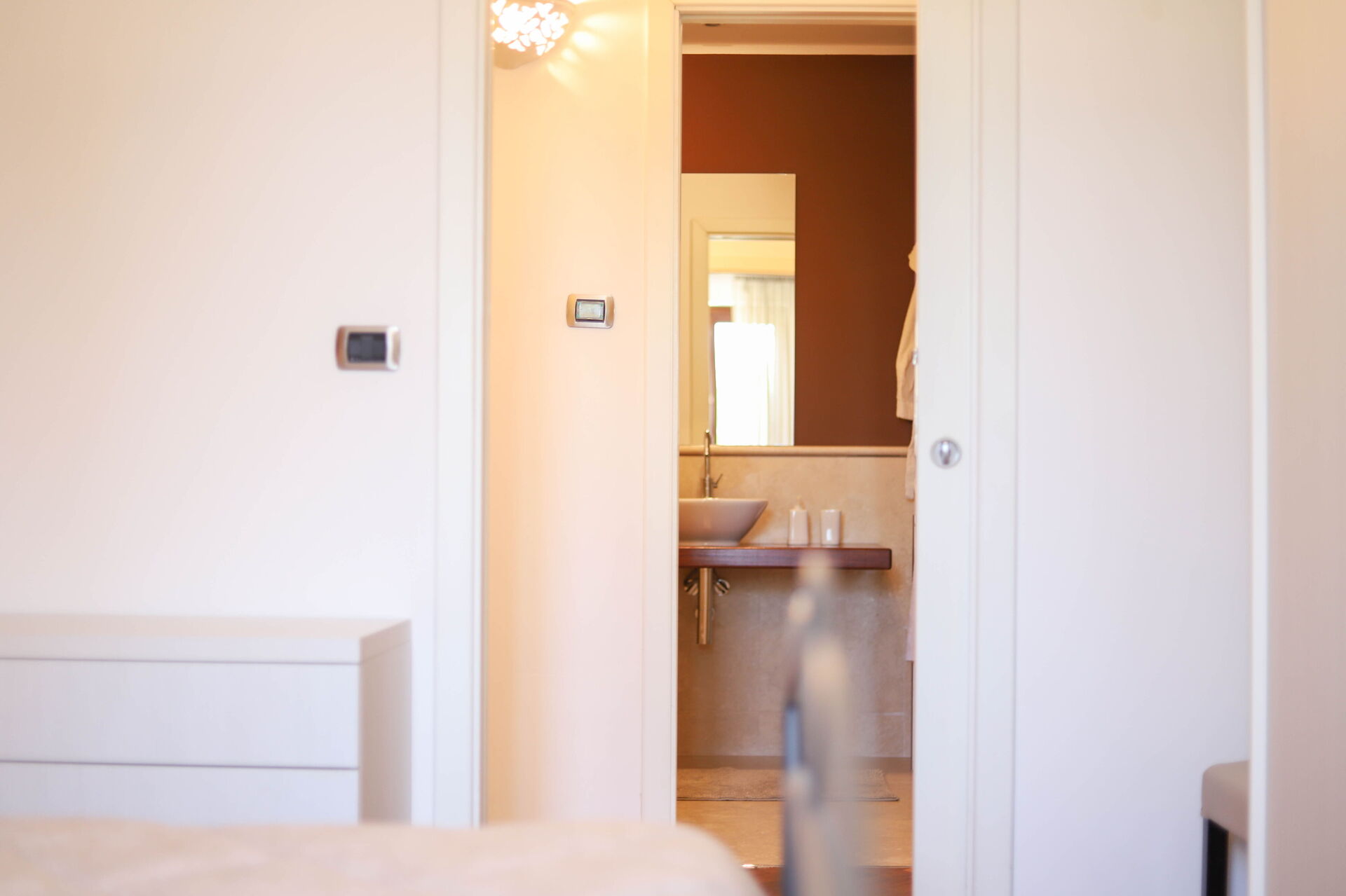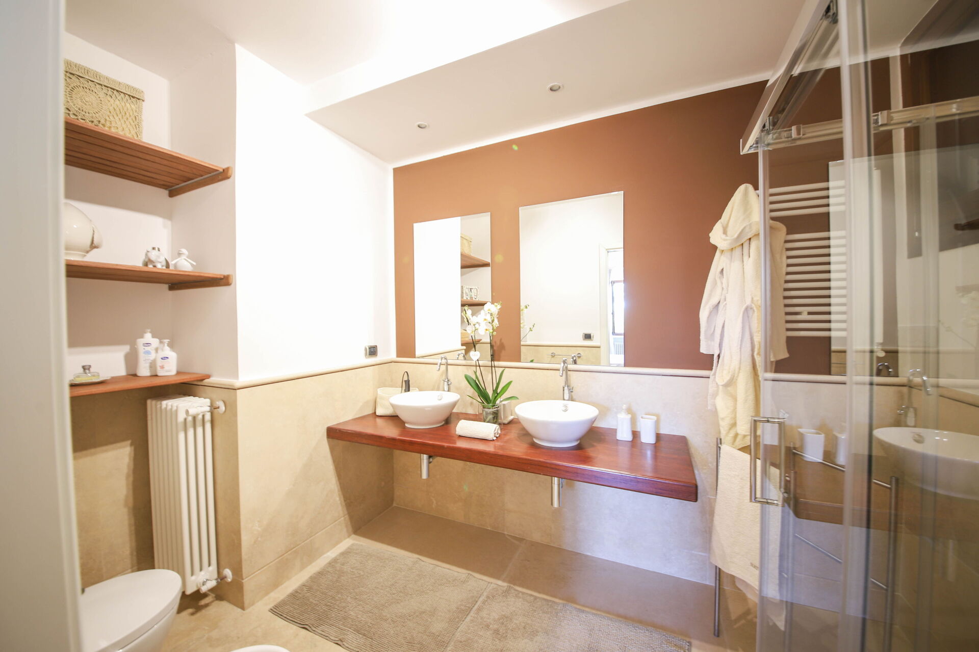 Camera da letto con bagno 2: letto matrimoniale, internet WIFI, lavandino, wc, bidet, doccia, asciugacapelli.