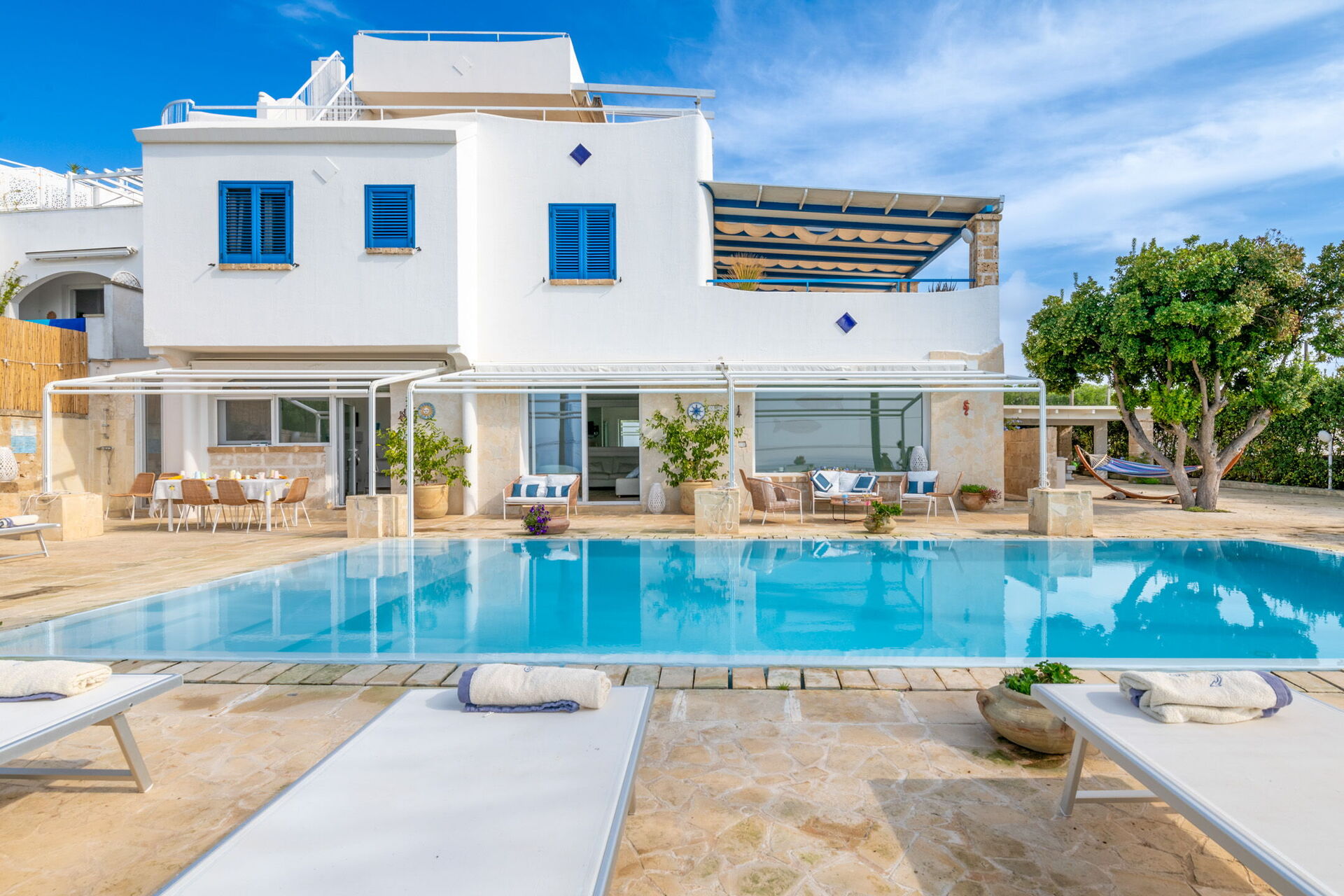 Gli spazi esterni della villa sono progettati per offrirti un’esperienza di relax totale in un ambiente esclusivo e suggestivo: