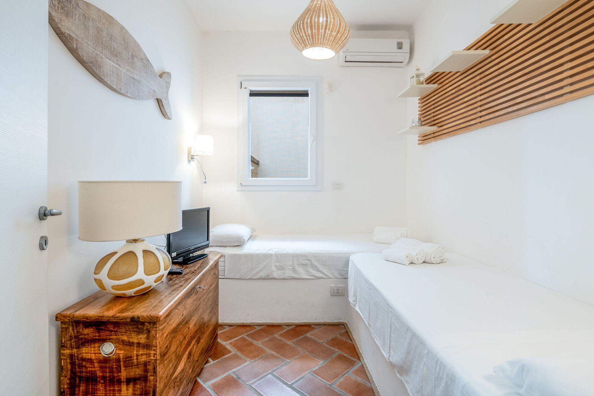 Camera da letto 1: aria condizionata, internet WIFI, 2 letti singoli (larghezza: 0.9m, lunghezza: 1.9m), televisione.