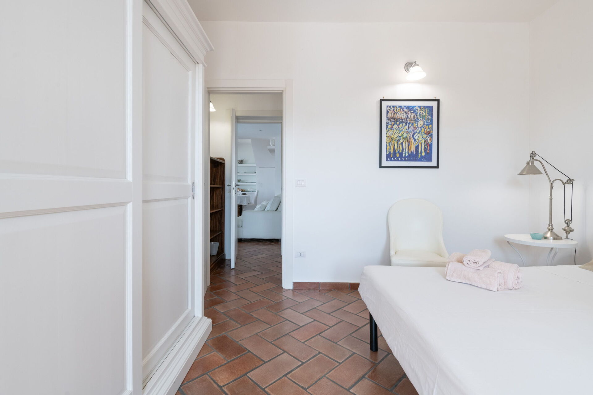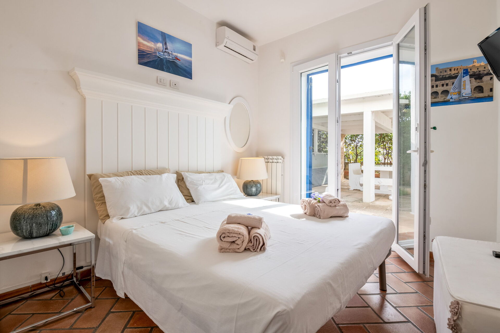 Camera da letto 2: aria condizionata, internet WIFI, letto alla francese (larghezza: 1.4m, lunghezza: 1.9m), uscita sul giardino.