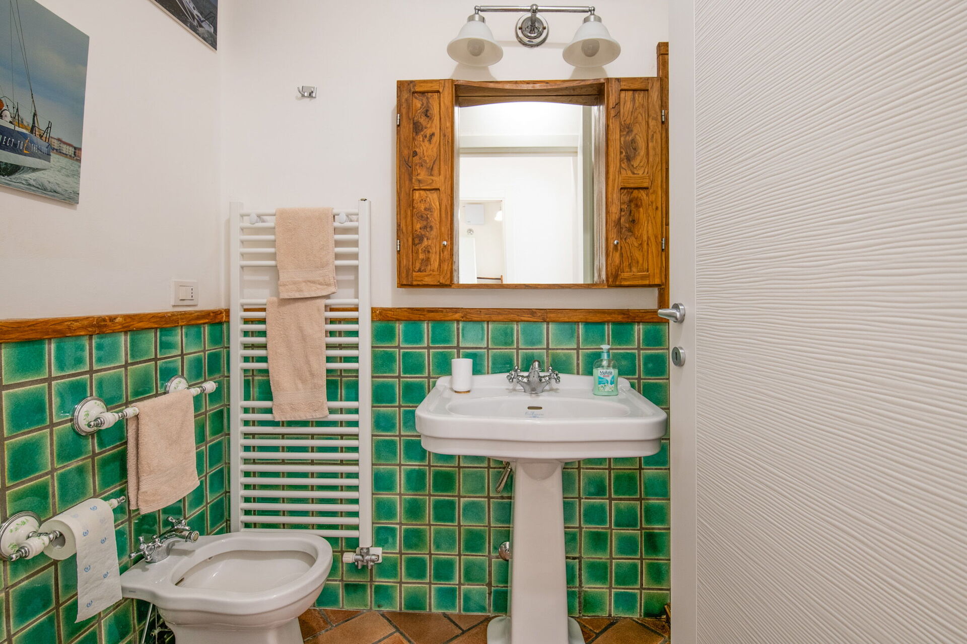 Bagno: lavandino, bidet, wc, doccia, asciugacapelli, internet WIFI.